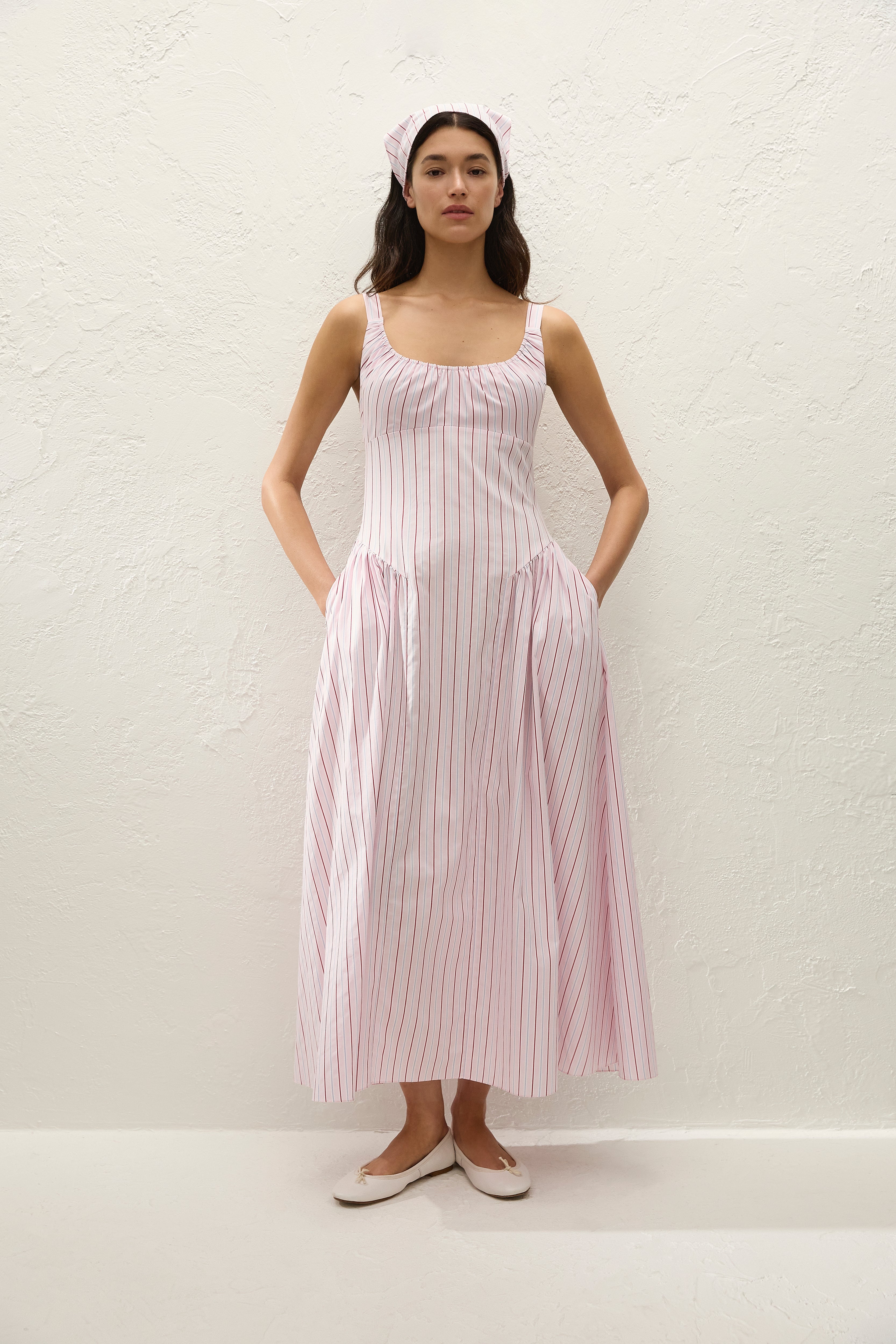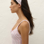 A vintage-inspired head scarf, designed from a signature 100% cotton, yarn-dyed in a nostalgic pink and red pinstripe. Available in one-size to tie comfortably around the head, style with the matching Marcella Midi Dress for a nostalgic touch to your vacation wardrobe.