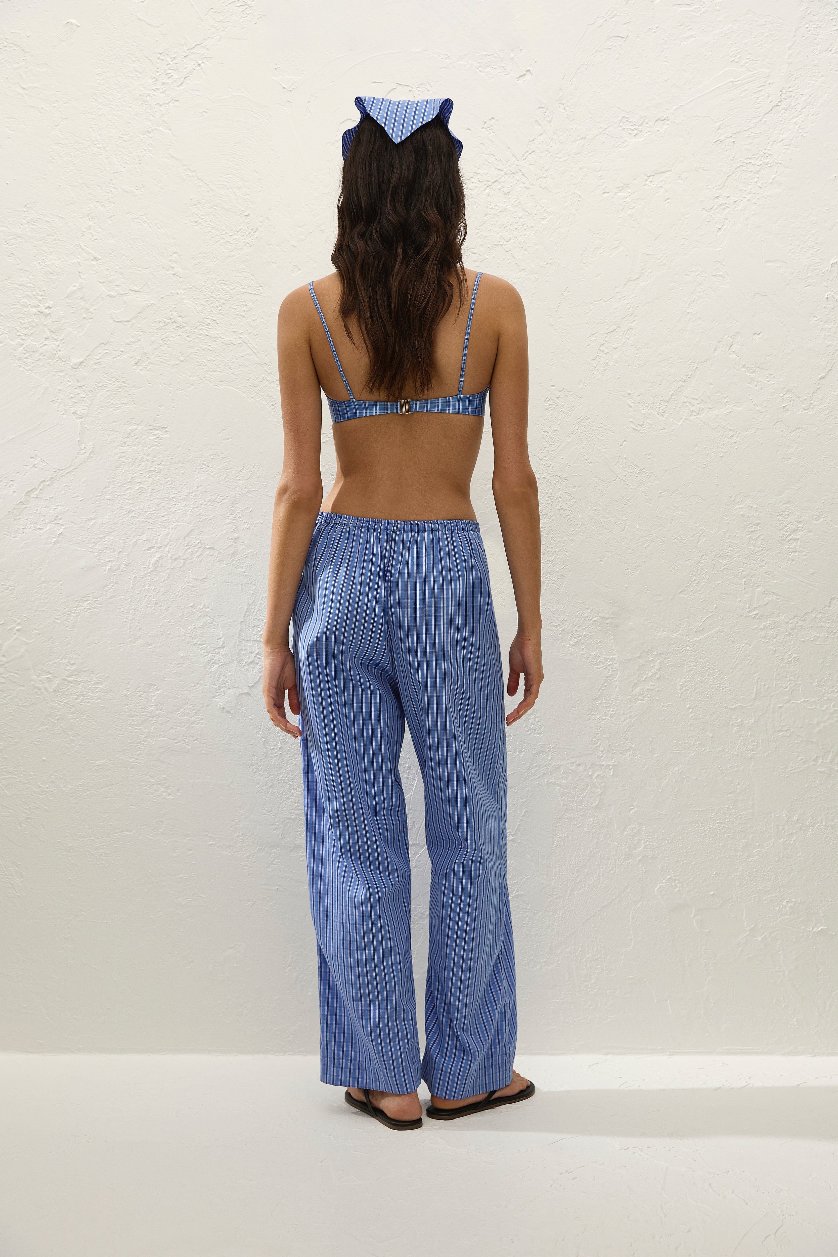 A vintage-inspired head scarf, designed from a signature 100% cotton, yarn-dyed in a nostalgic blue gingham. Available in one-size to tie comfortably around the head, style with the matching Marcella Midi Dress for a nostalgic touch to your vacation wardrobe.