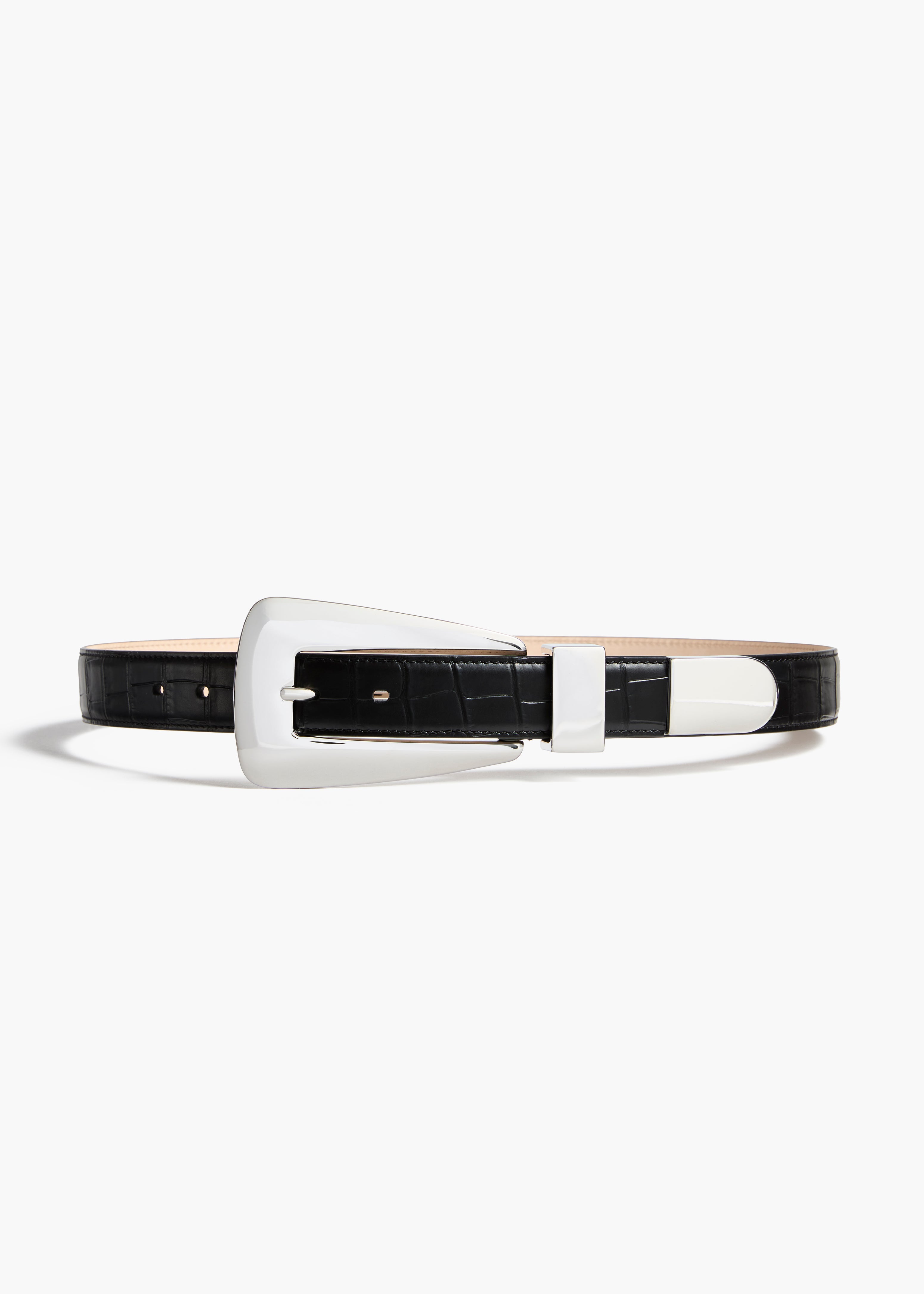 Khaite - Lucca Belt in Black Croc - Embossed Leather with Silver