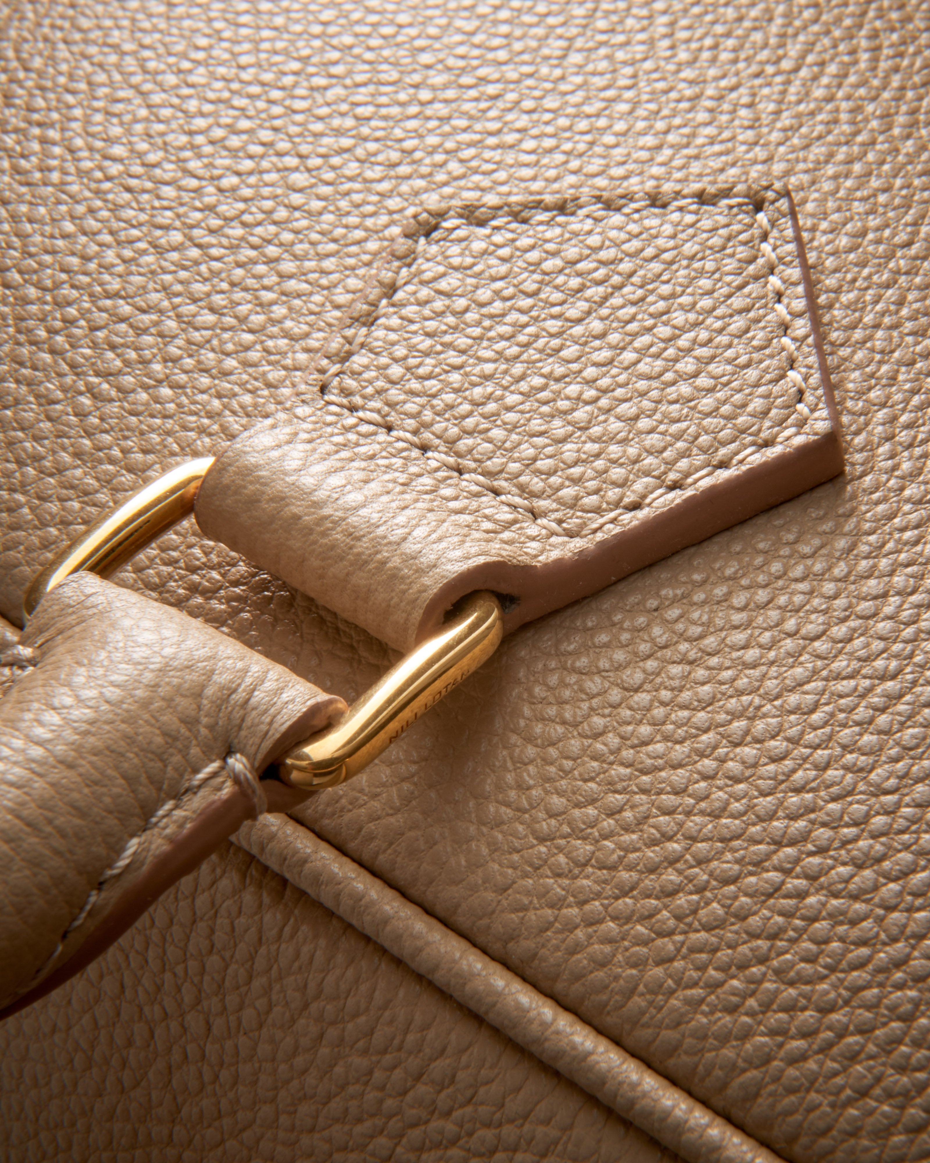 Expertly crafted in Spain by master artisans. Exterior leather and interior suede are sourced from LWG-certified Italian tanneries committed to sustainable practices. All hardware is nickel-free, hand-plated in a custom gold finish developed exclusively for Nili Lotan.