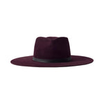 The Reyes is sharp and refined, crafted in plush felt with a sleek leather band that amplifies its edge. Its wide brim and clean lines make it the ultimate statement-maker. Style it with tailored suiting for a polished city look, or pair with denim and boots for a cool contrast. Now updated in bordeaux.