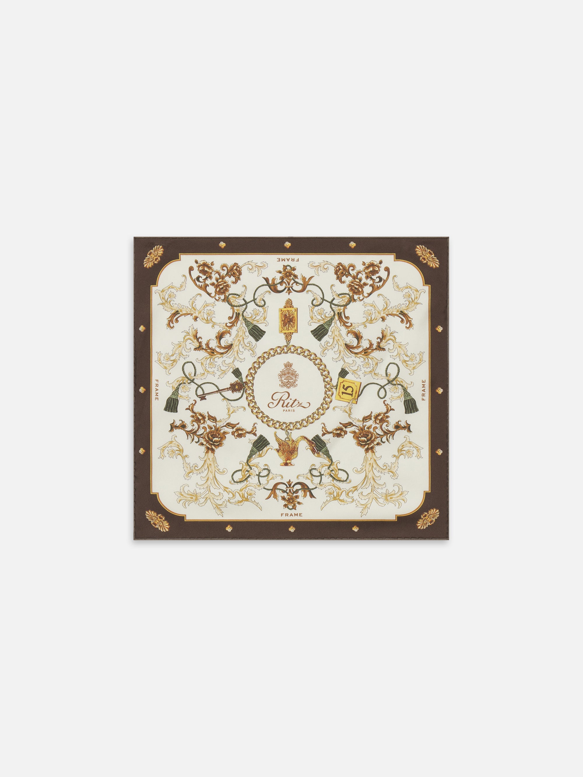 Made from 100% silk, this FRAME x Ritz Paris bracelet scarf showcases the hotel’s defining details, including golden turn keys, tasseled accents, and paisley drawn from its storied interiors. A smaller silhouette designed to bring a touch of Ritz refinement to any look.