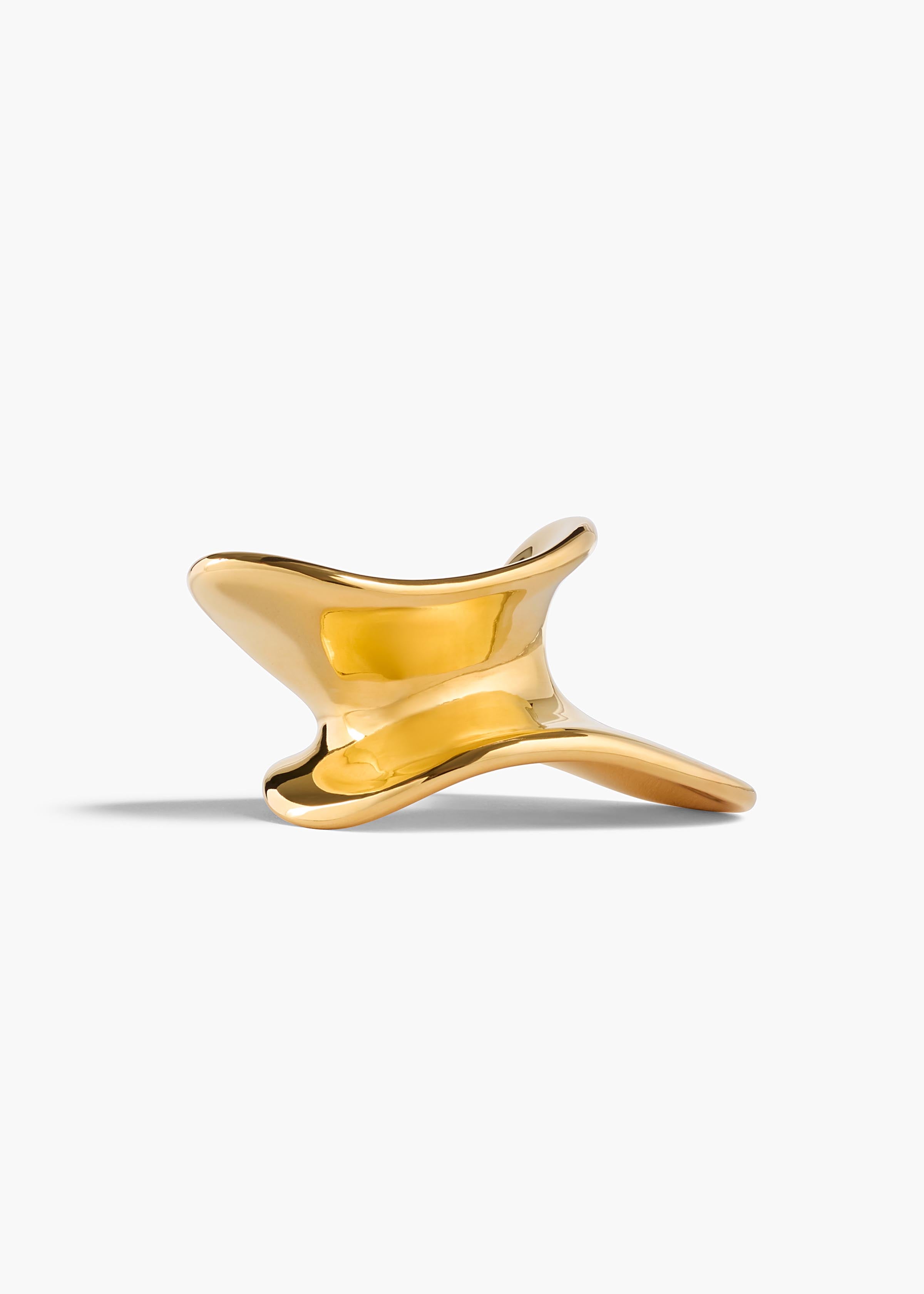 A sculptural hair accessory crafted in Italy of 18-karat-gold-plated brass. Position the dynamic form over a ponytail and secure with the angled pin.