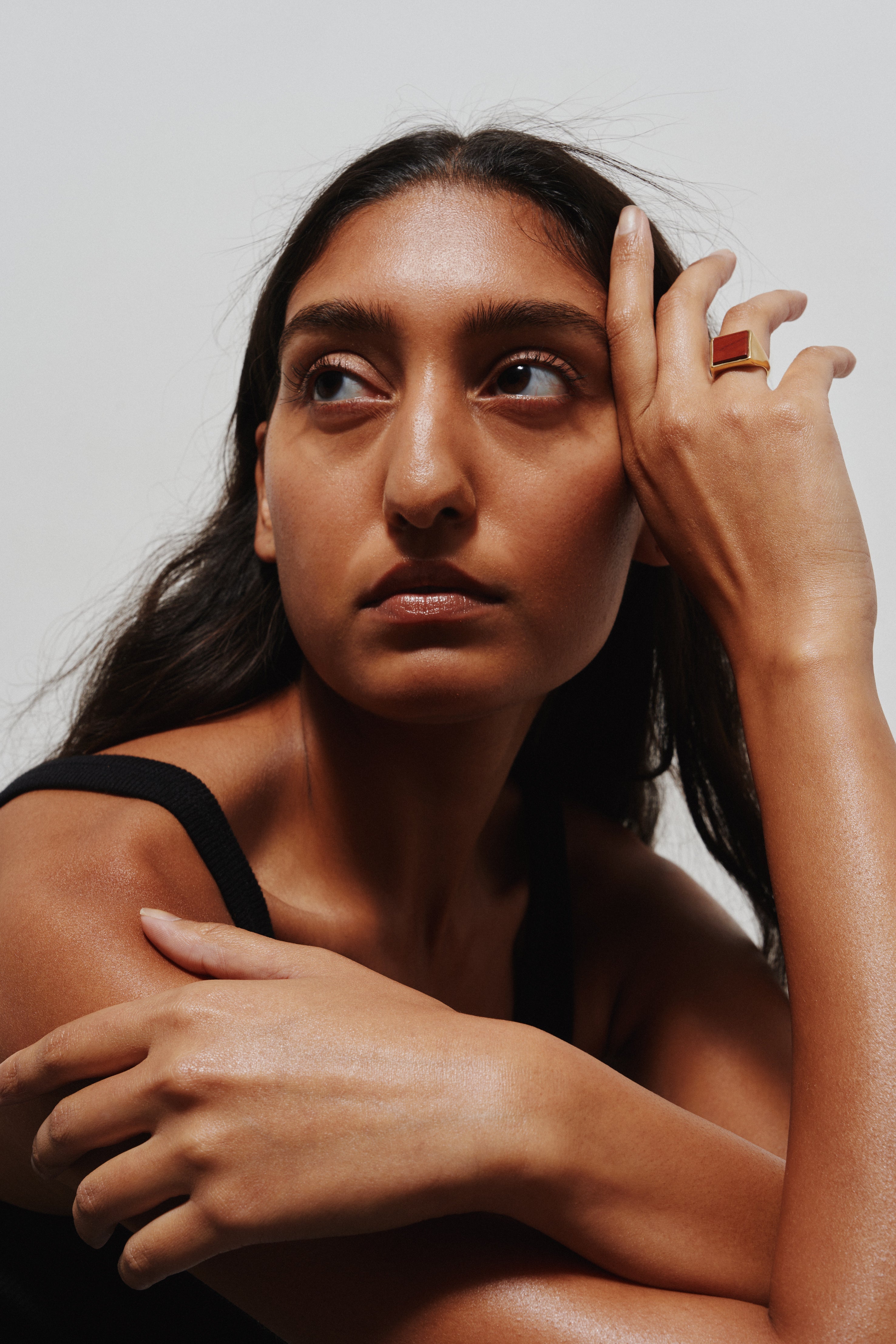 Introducing the the Nina Flat Signet Ring in Red Jasper. Inspired by vintage men's signet rings, the stone is semi-precious. The natural stone is custom hand-cut and secured in a bezel setting. The ring has been designed to feel timeworn, with soft edges, something you have worn forever.