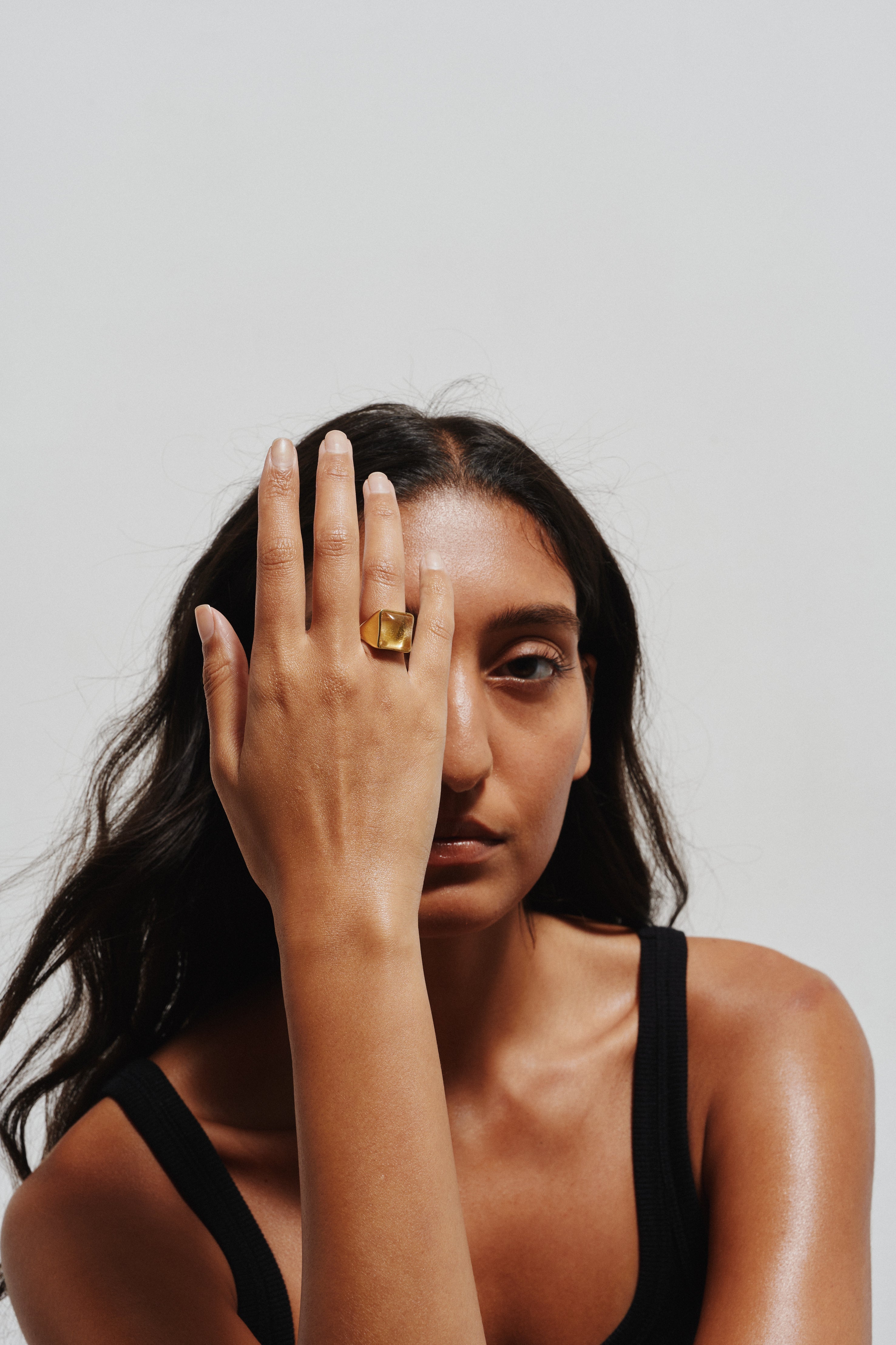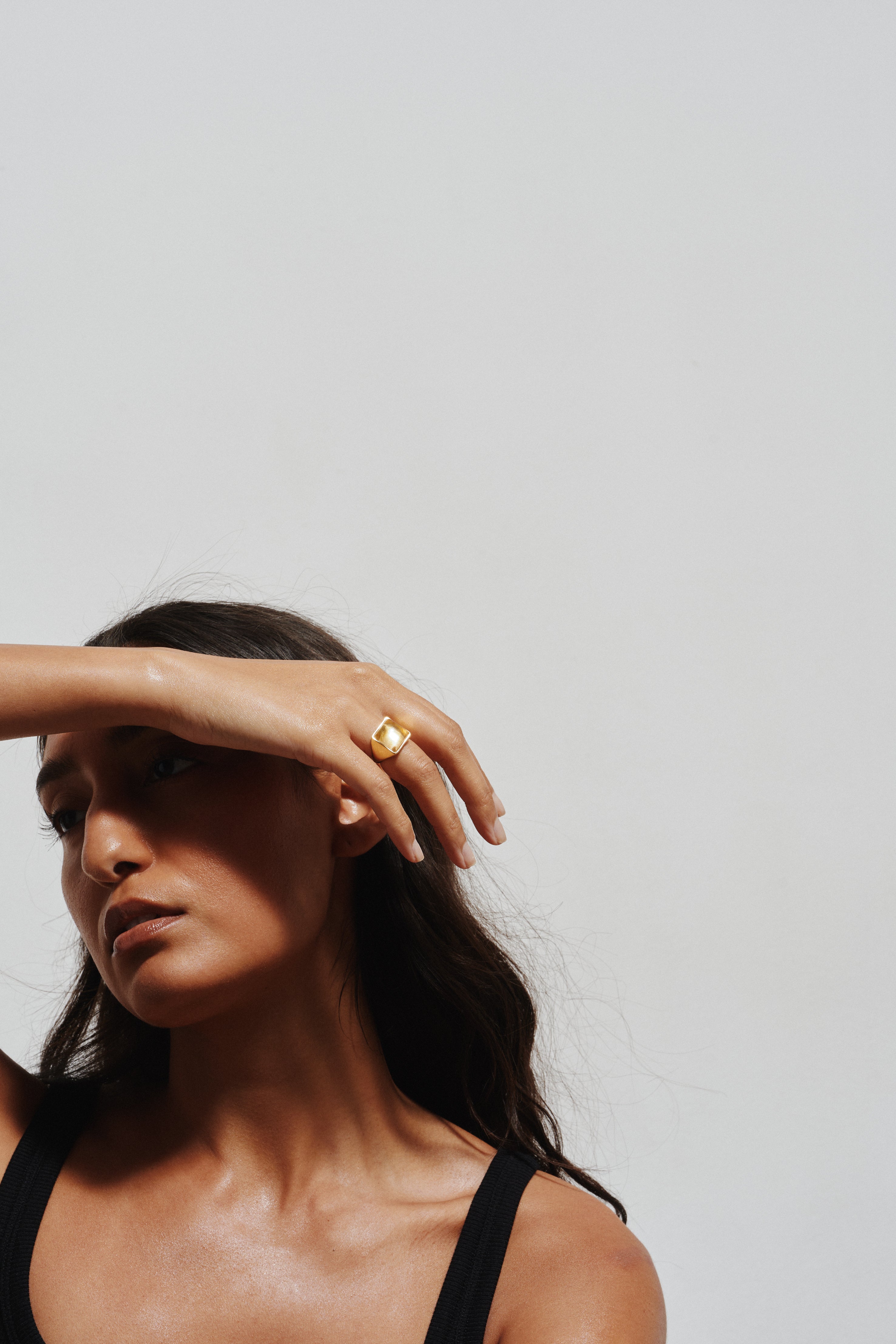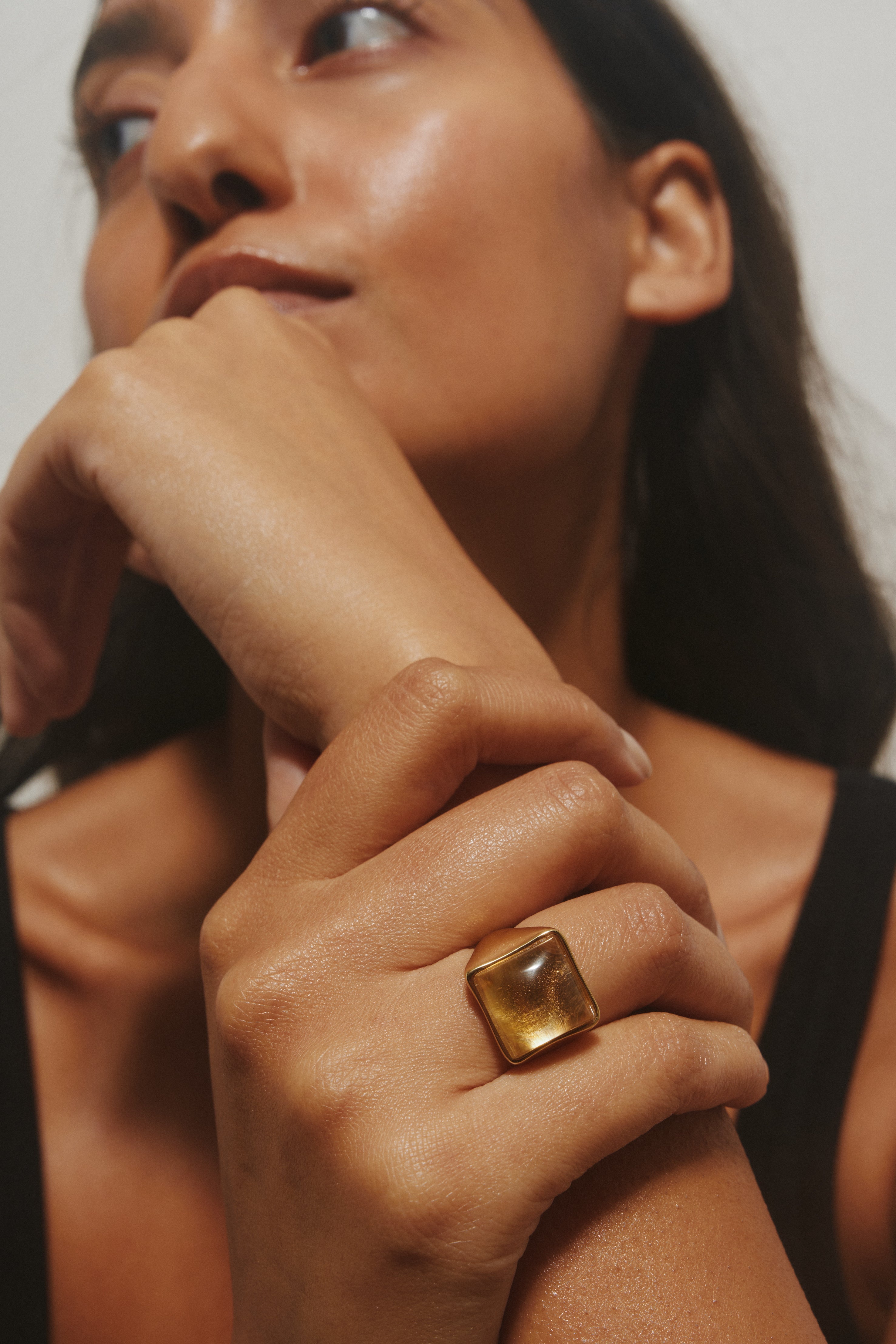 Introducing the Lucques Square Signet Ring in Citrine. Inspired by vintage men's signet rings, the square-cut cabochon stone is semi-precious. The natural stone is custom hand-cut and secured in a bezel setting. The ring has been designed to feel timeworn, with soft edges, something you have worn forever.