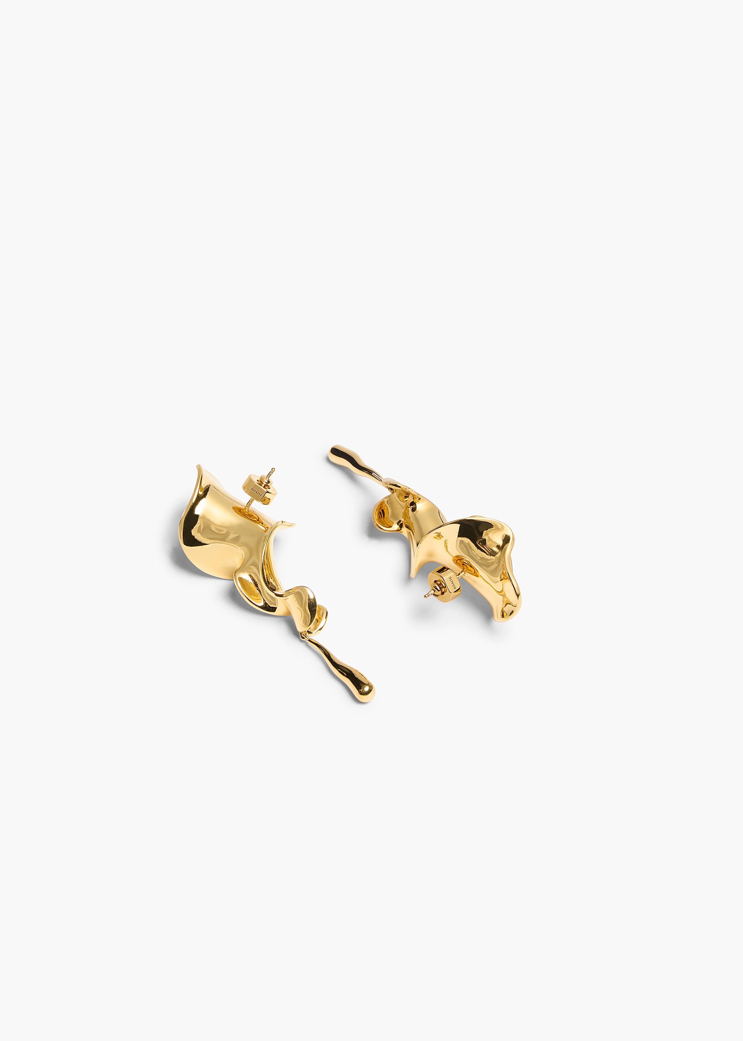 Sculpted earrings that taper to shimmering droplets. In brass plated in 18-karat gold. Designed for pierced ears. Post backing. Sold as a pair.