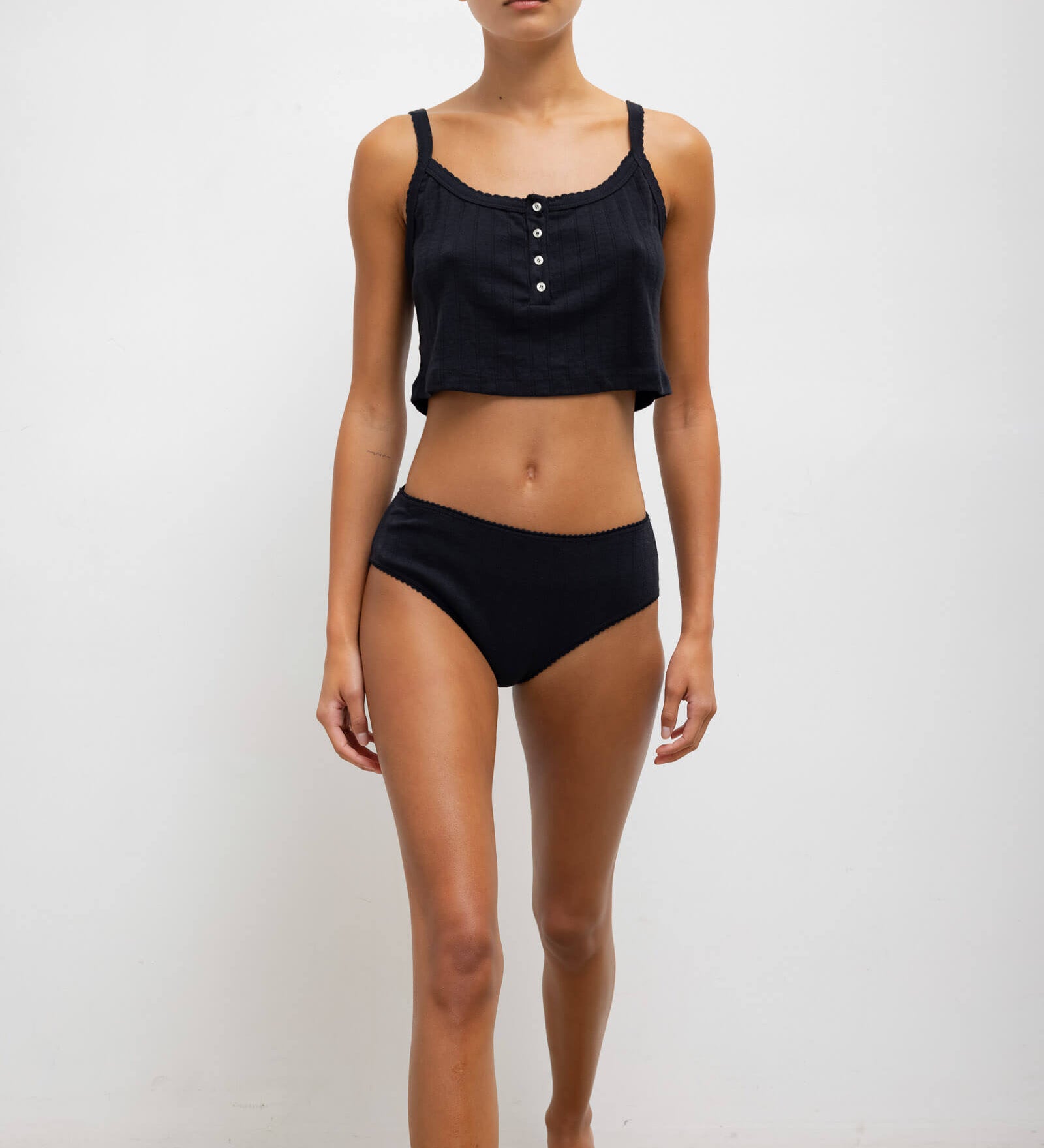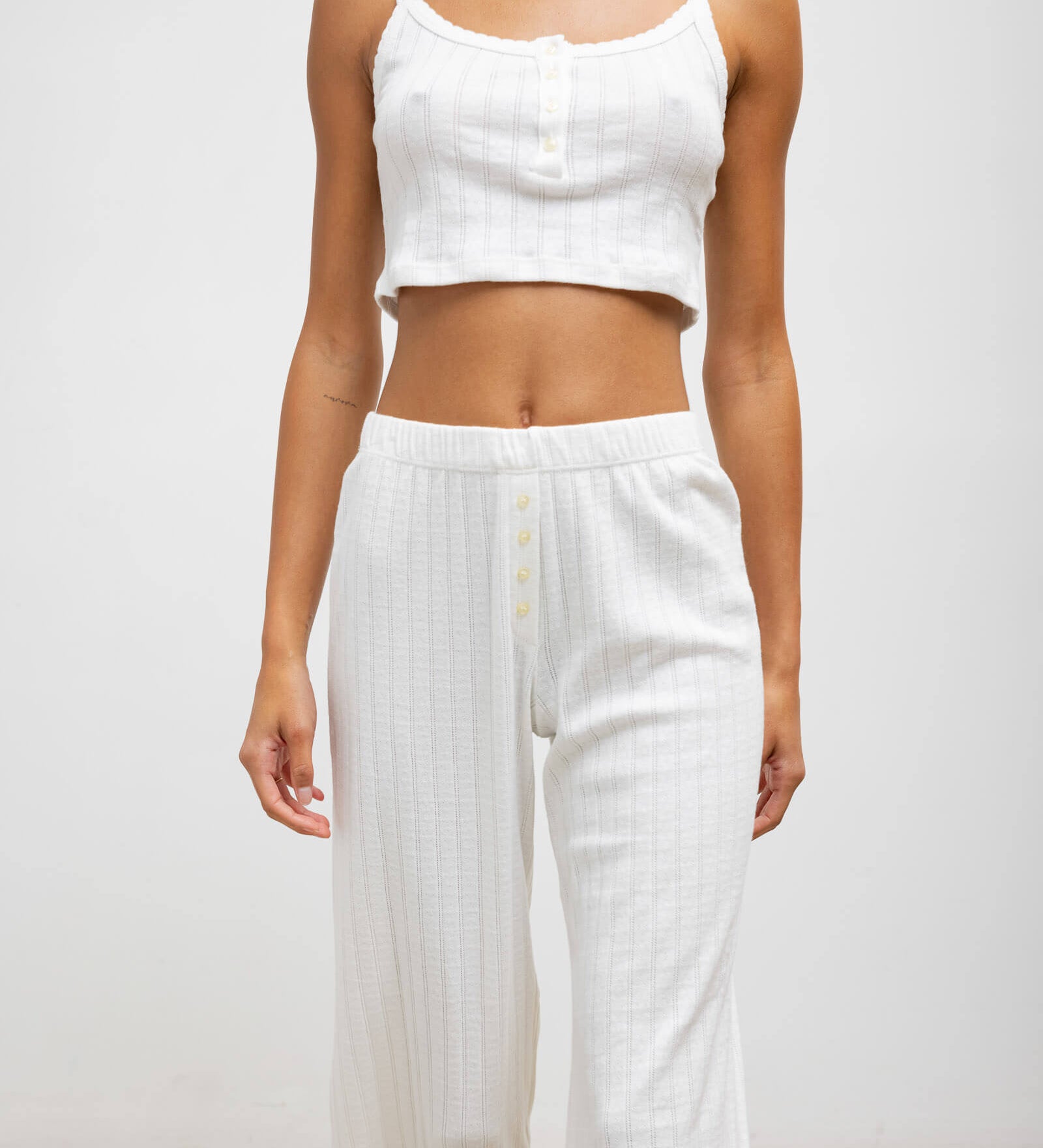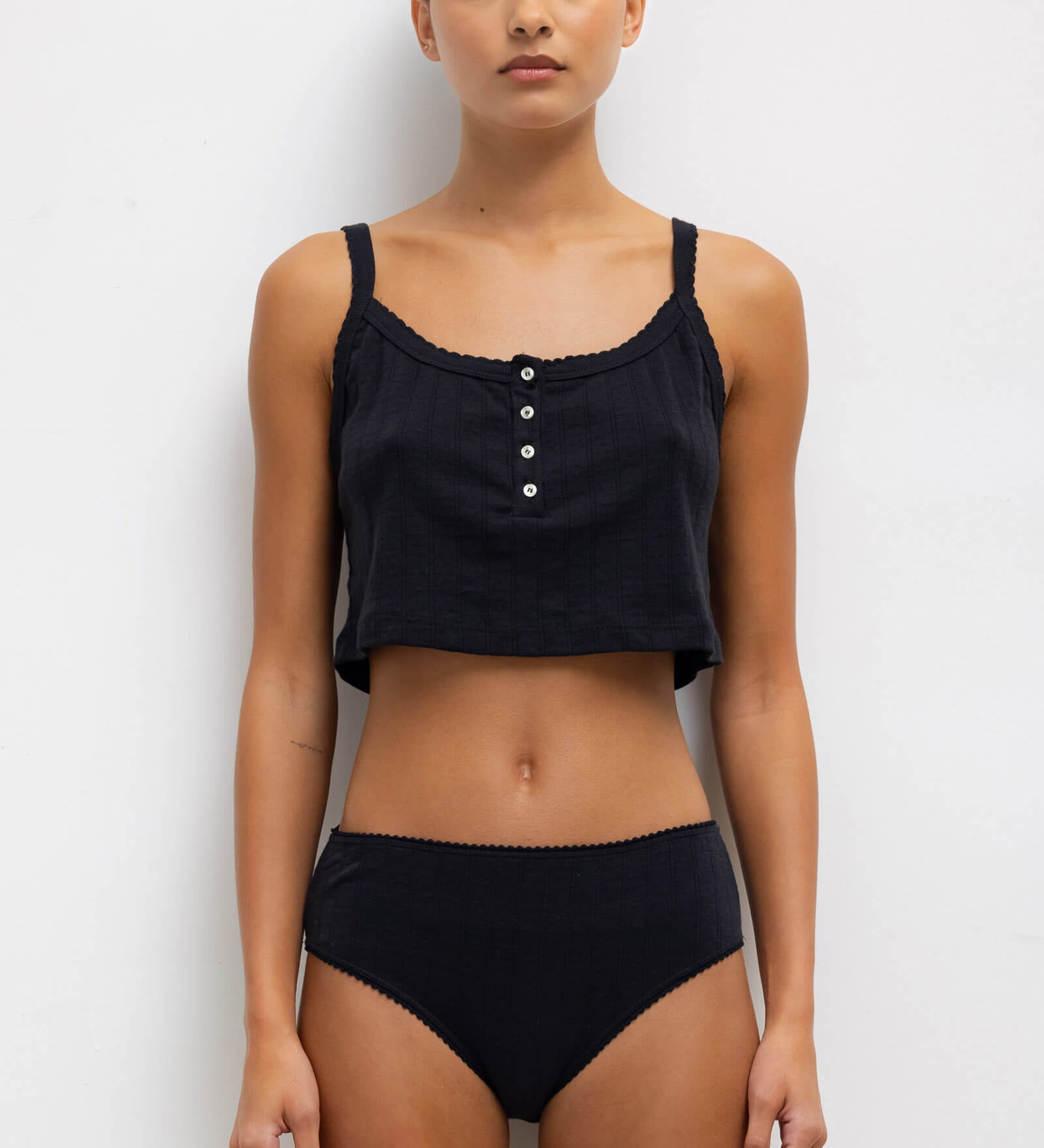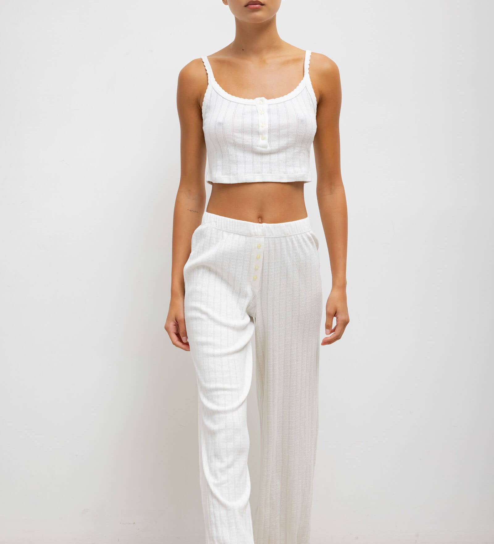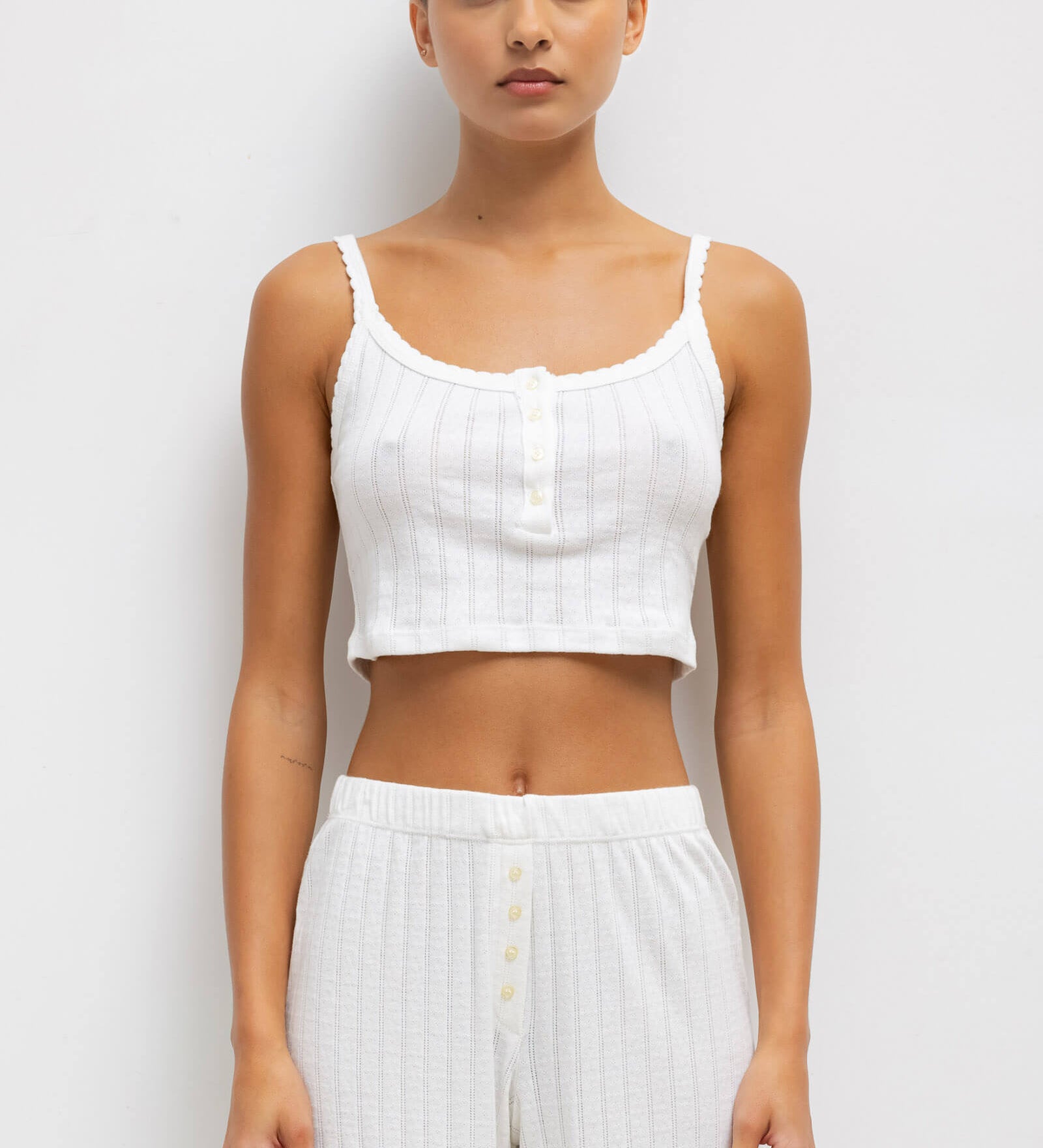 Leset - Pointelle Crop Button Scoop Neck Tank
