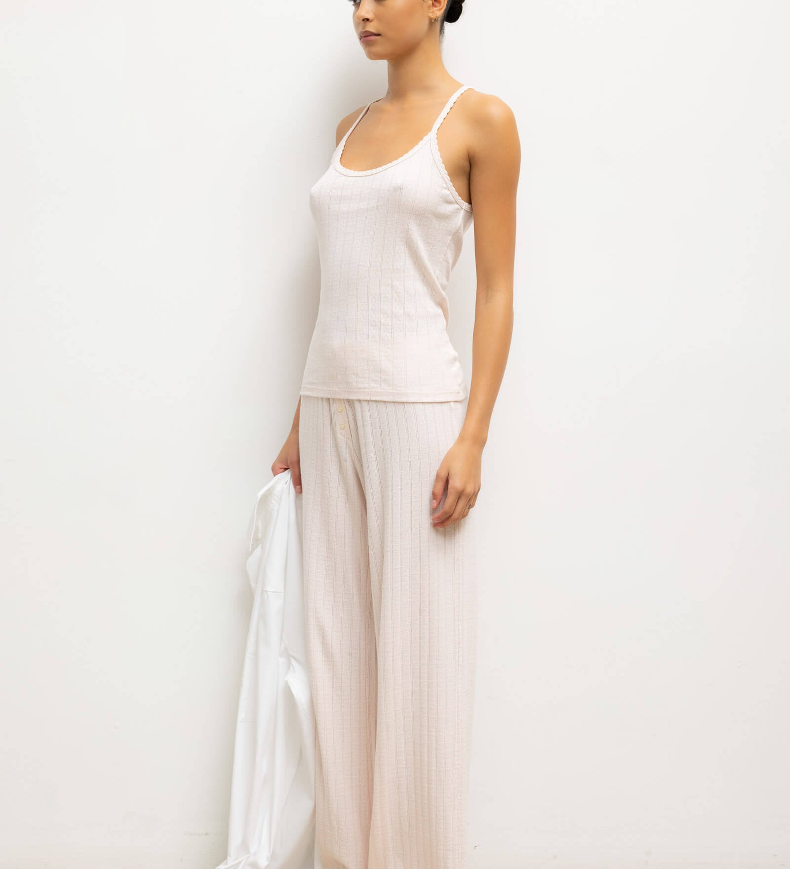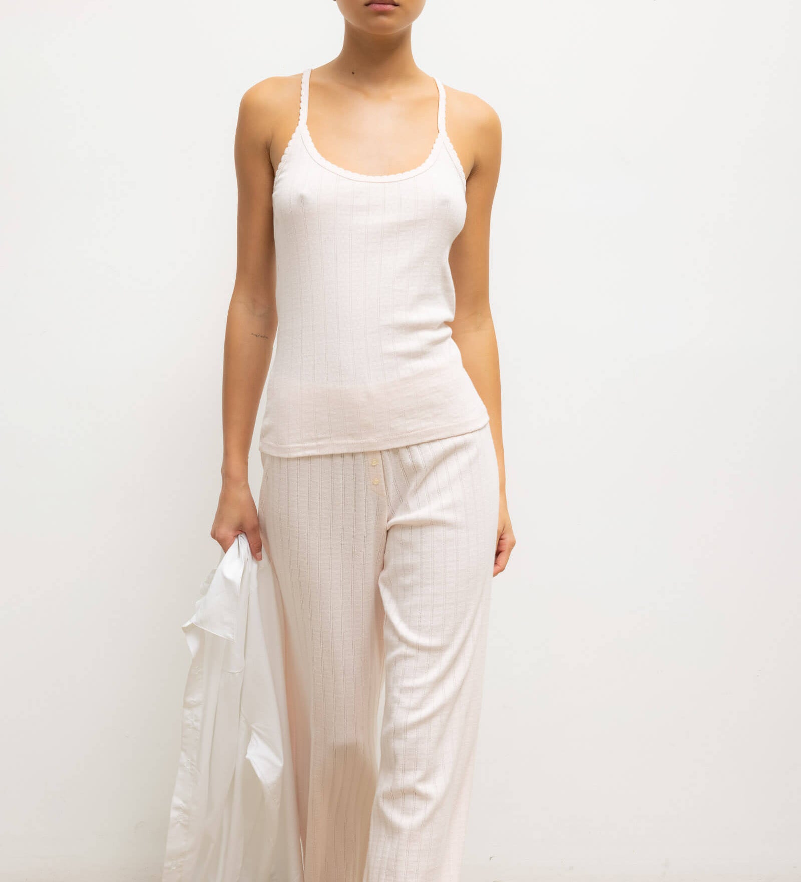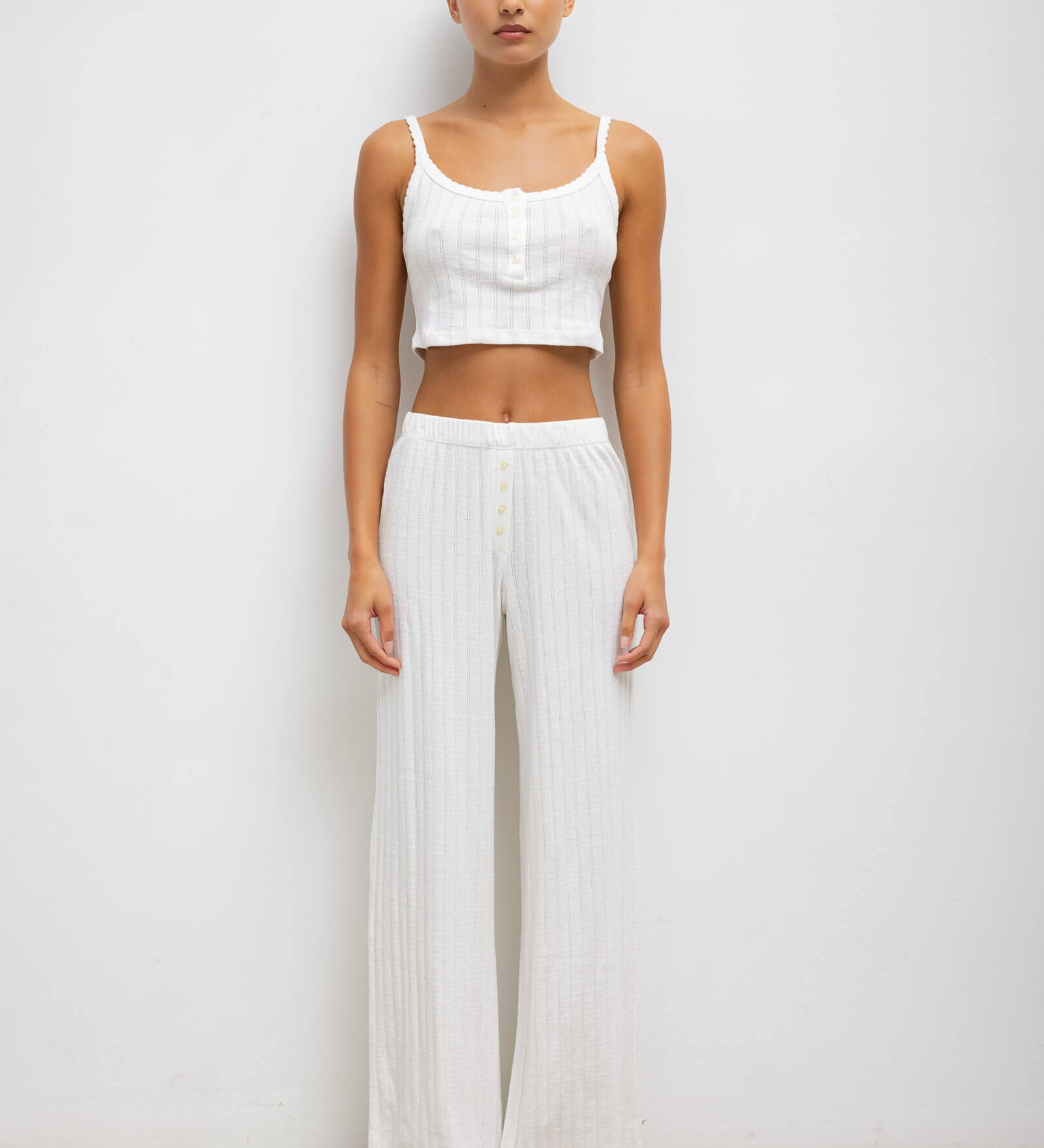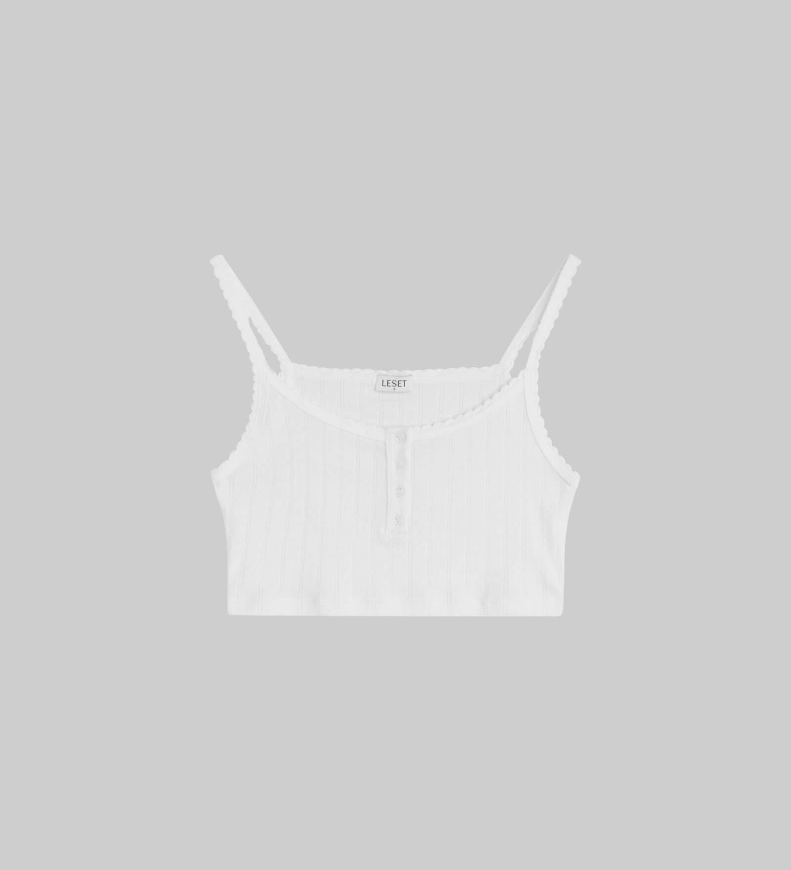 Leset - Pointelle Crop Button Scoop Neck Tank