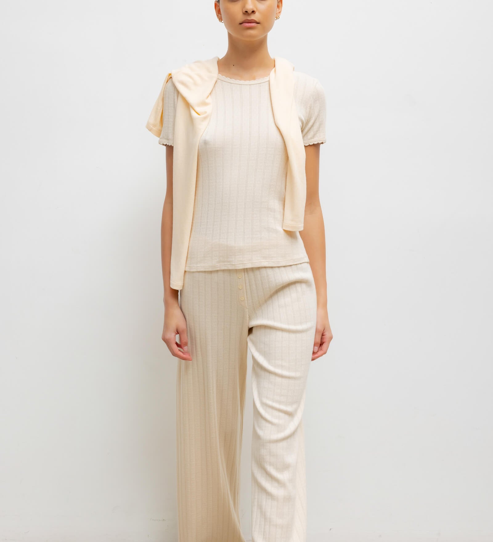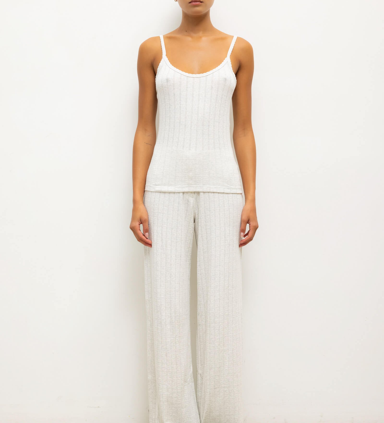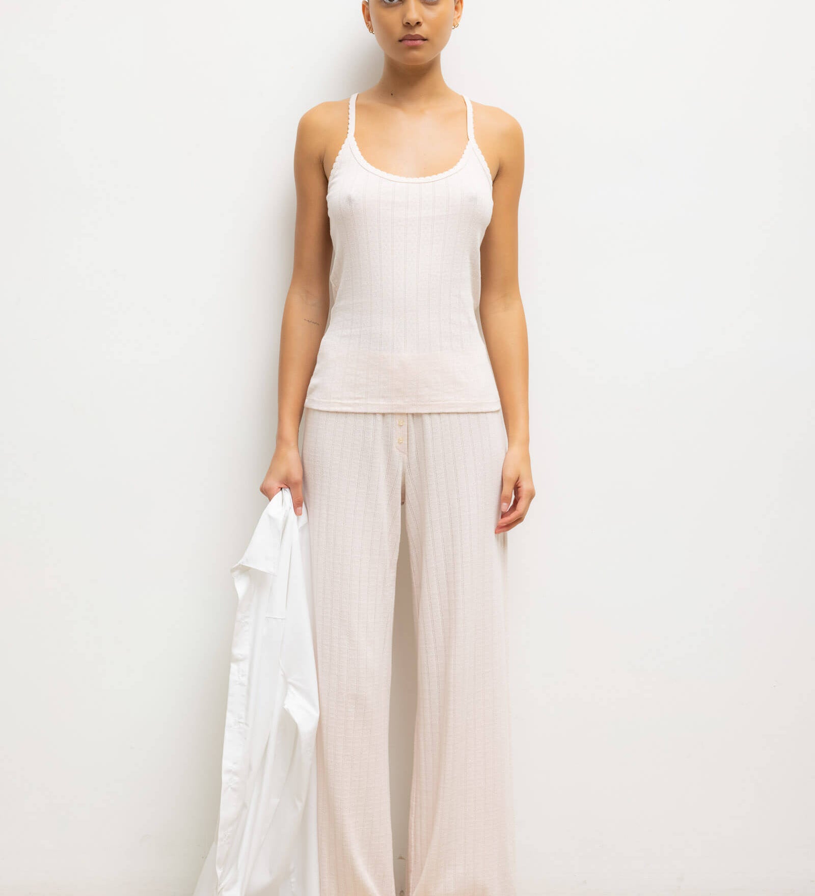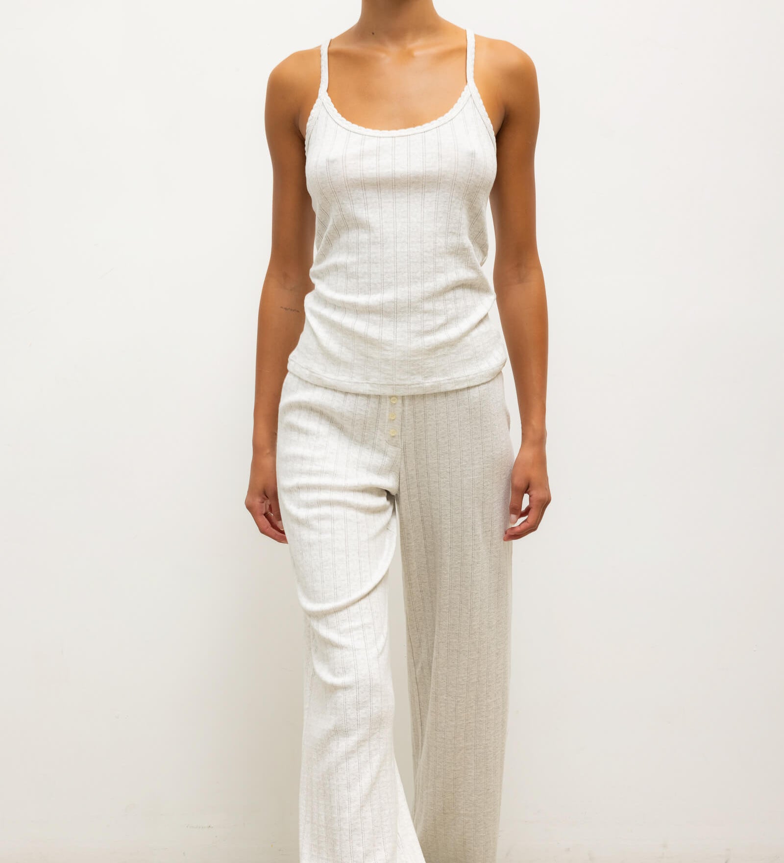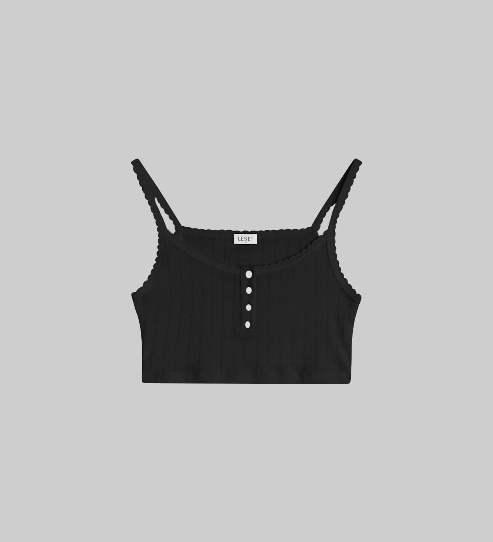 Leset - Pointelle Crop Button Scoop Neck Tank