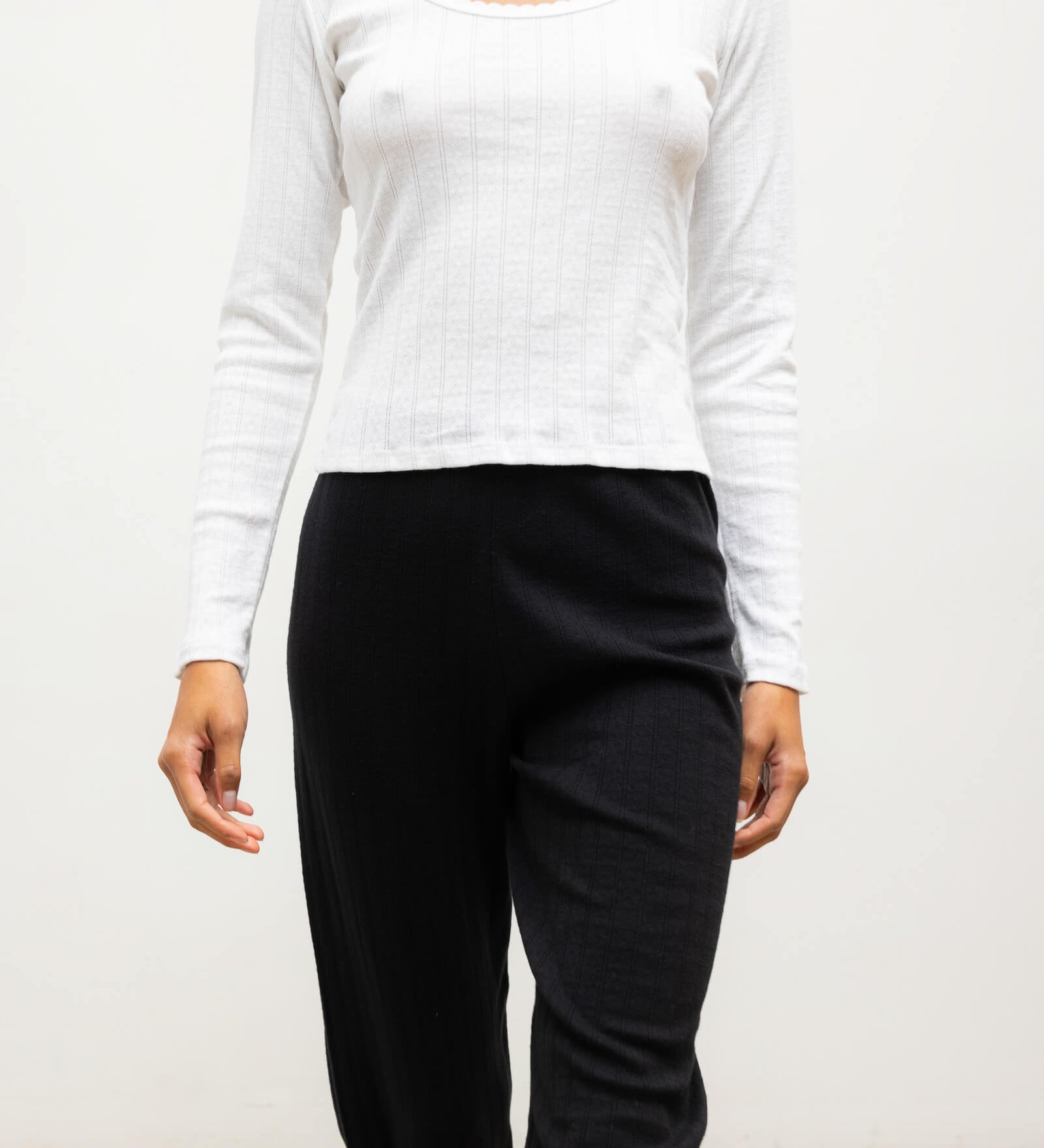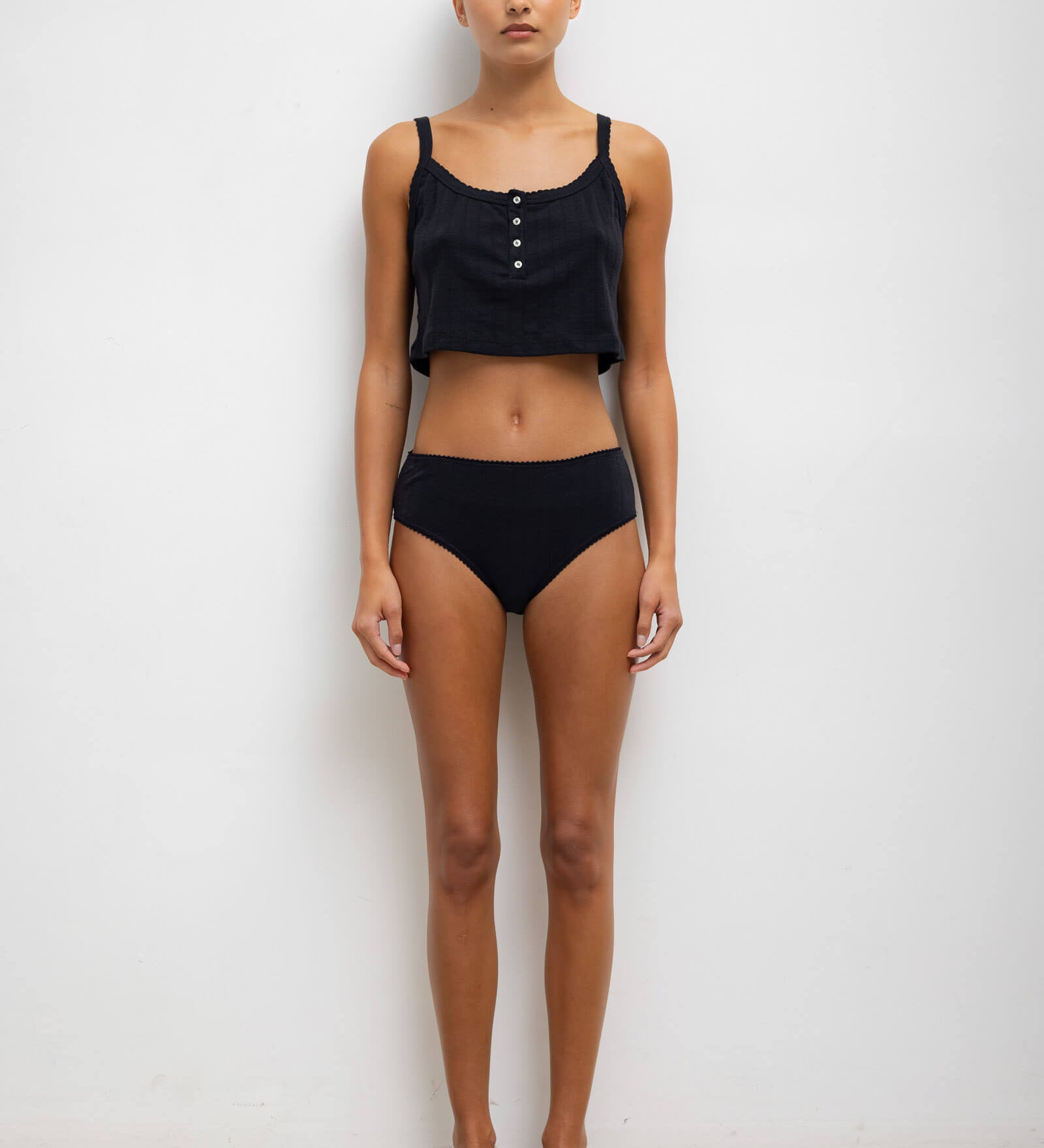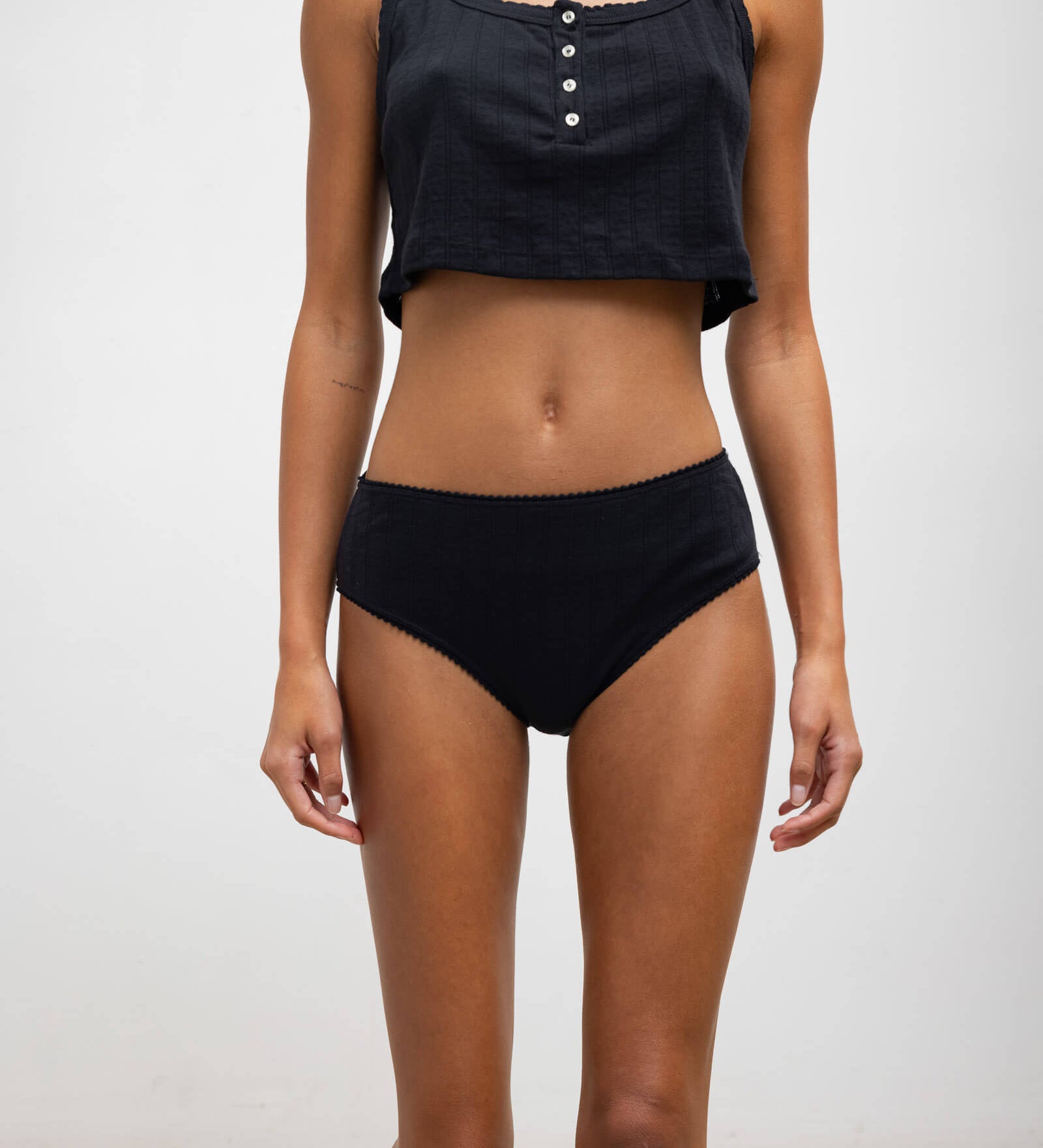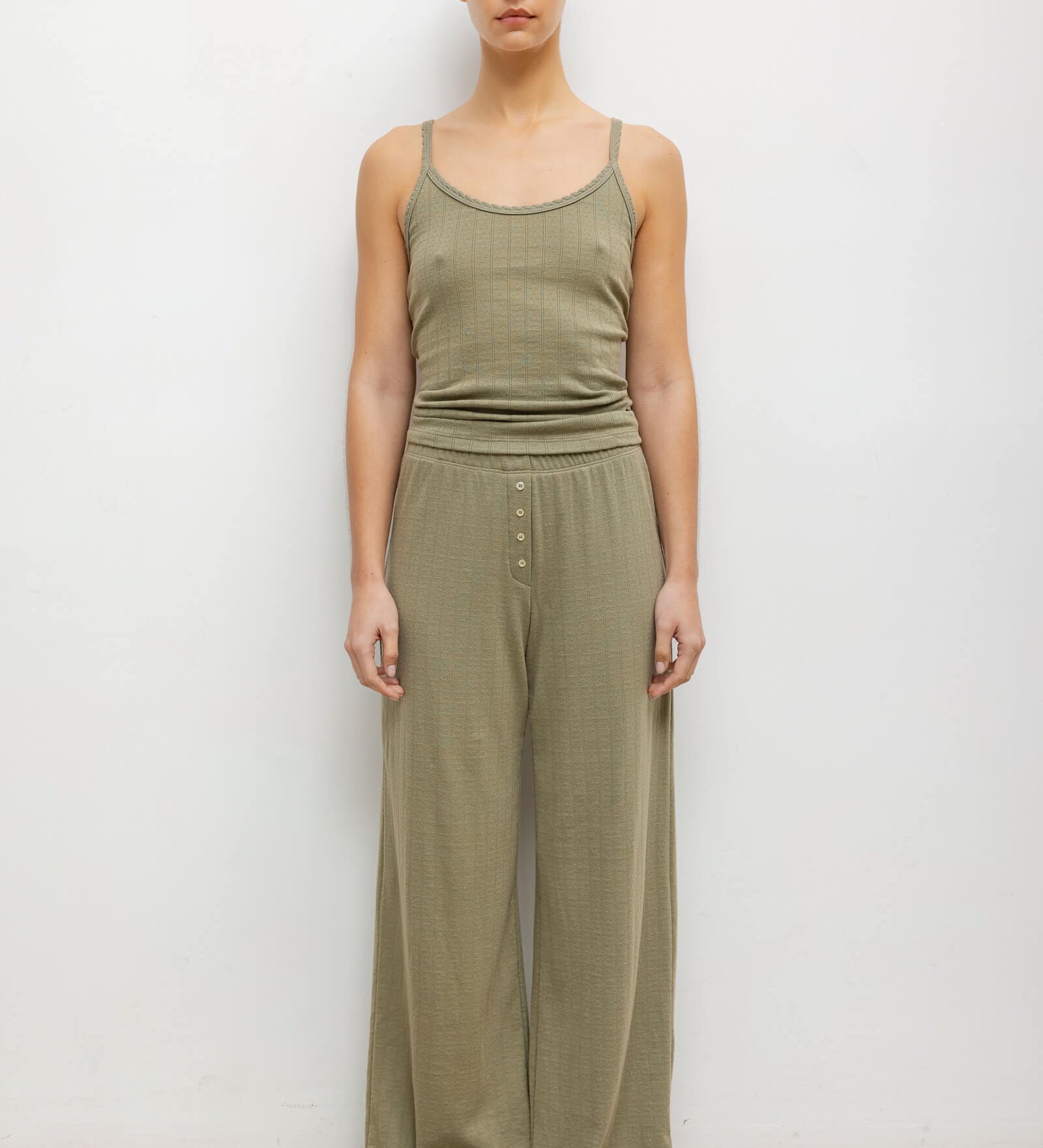 Leset - Pointelle Crop Button Scoop Neck Tank