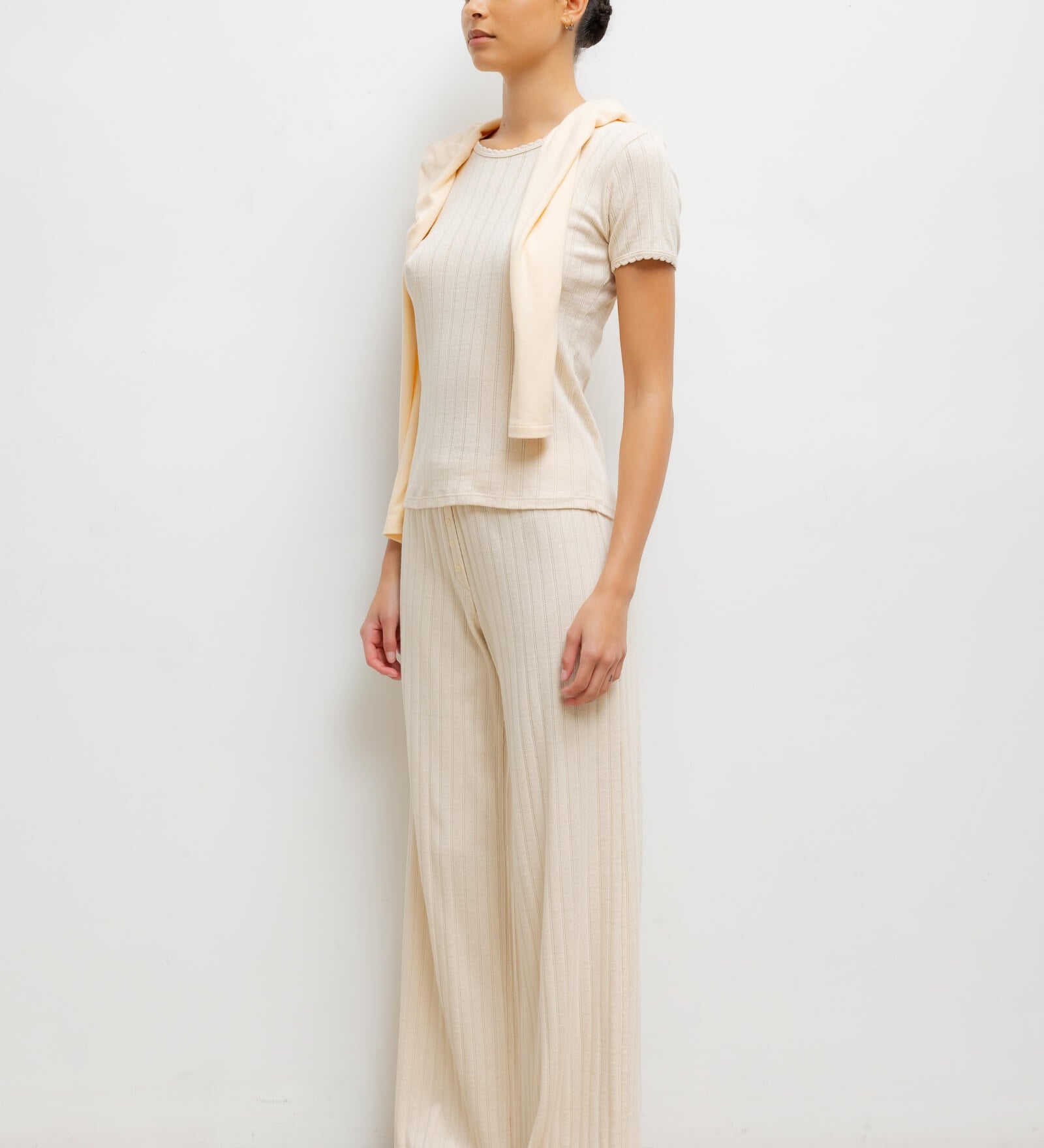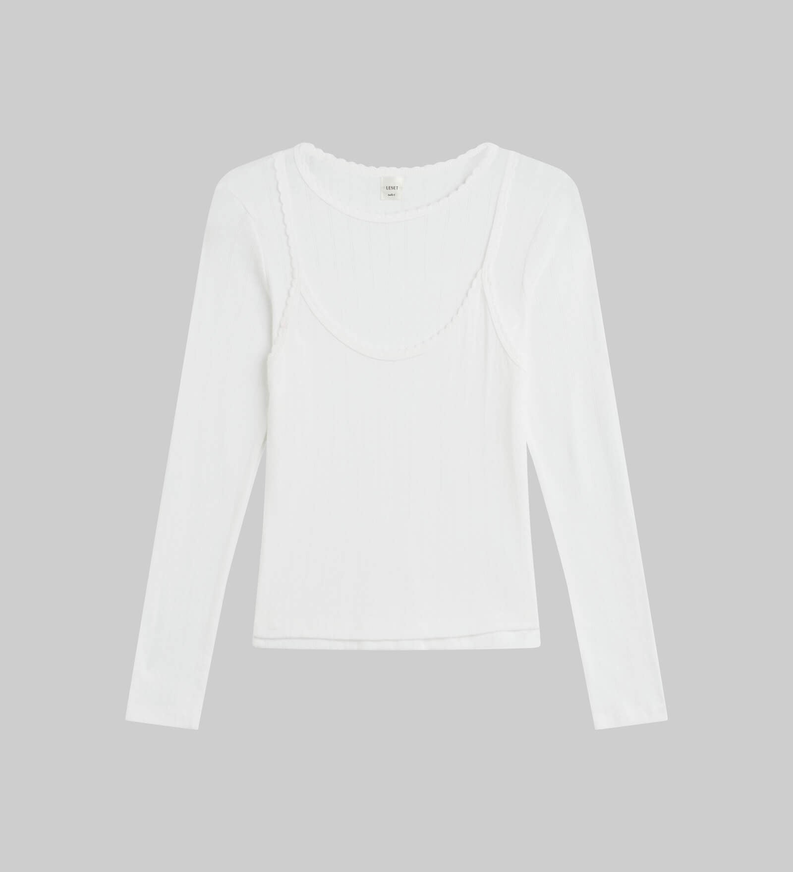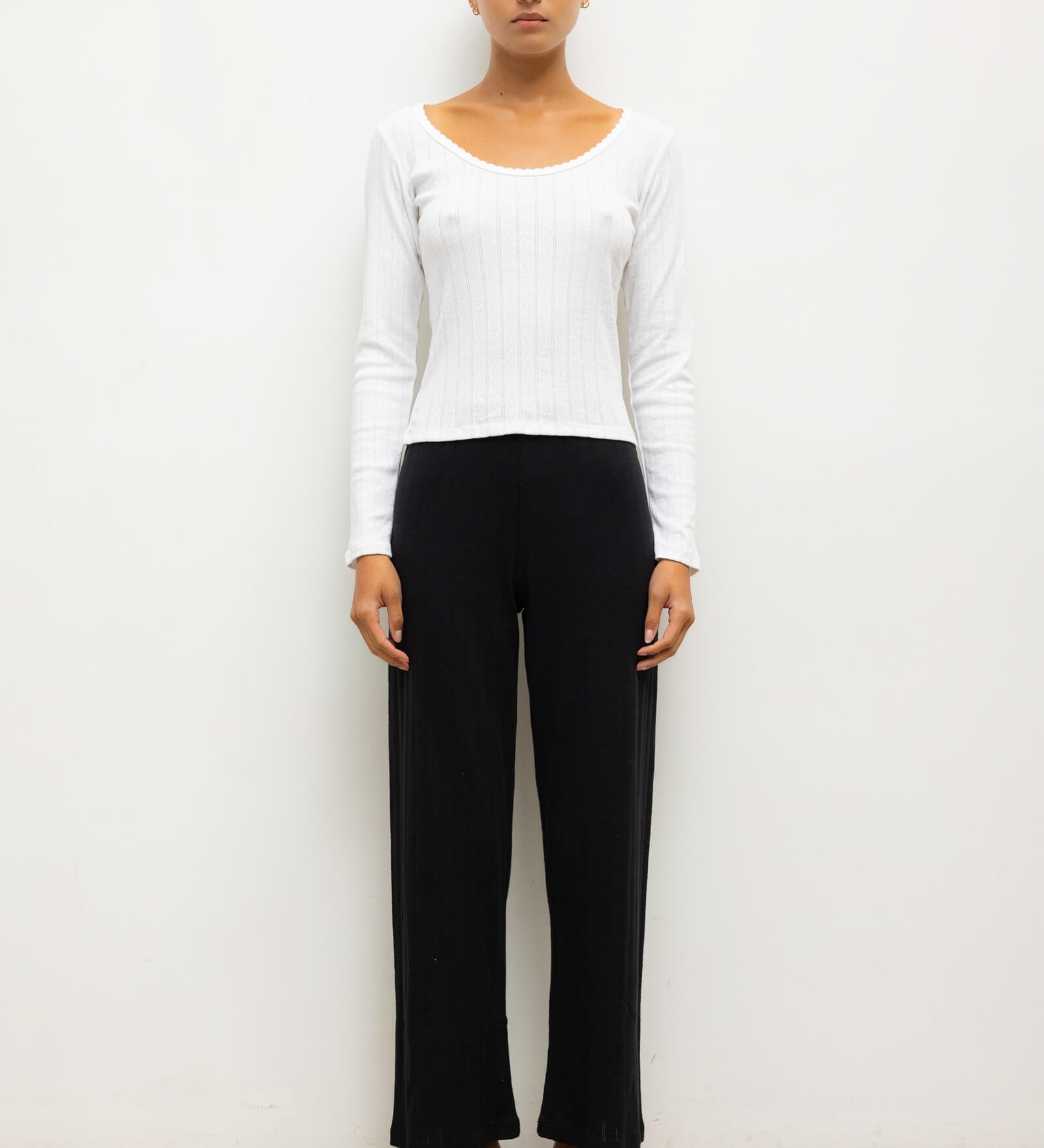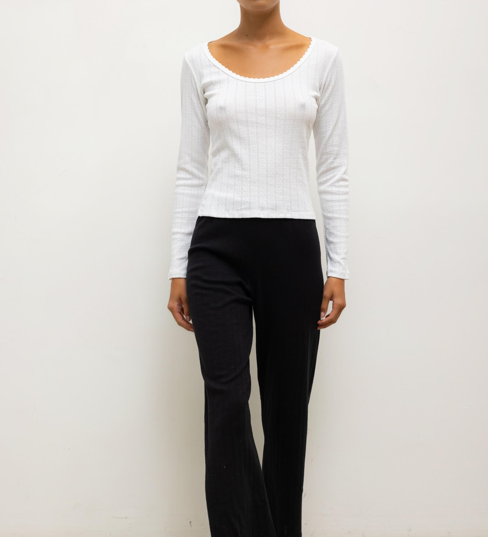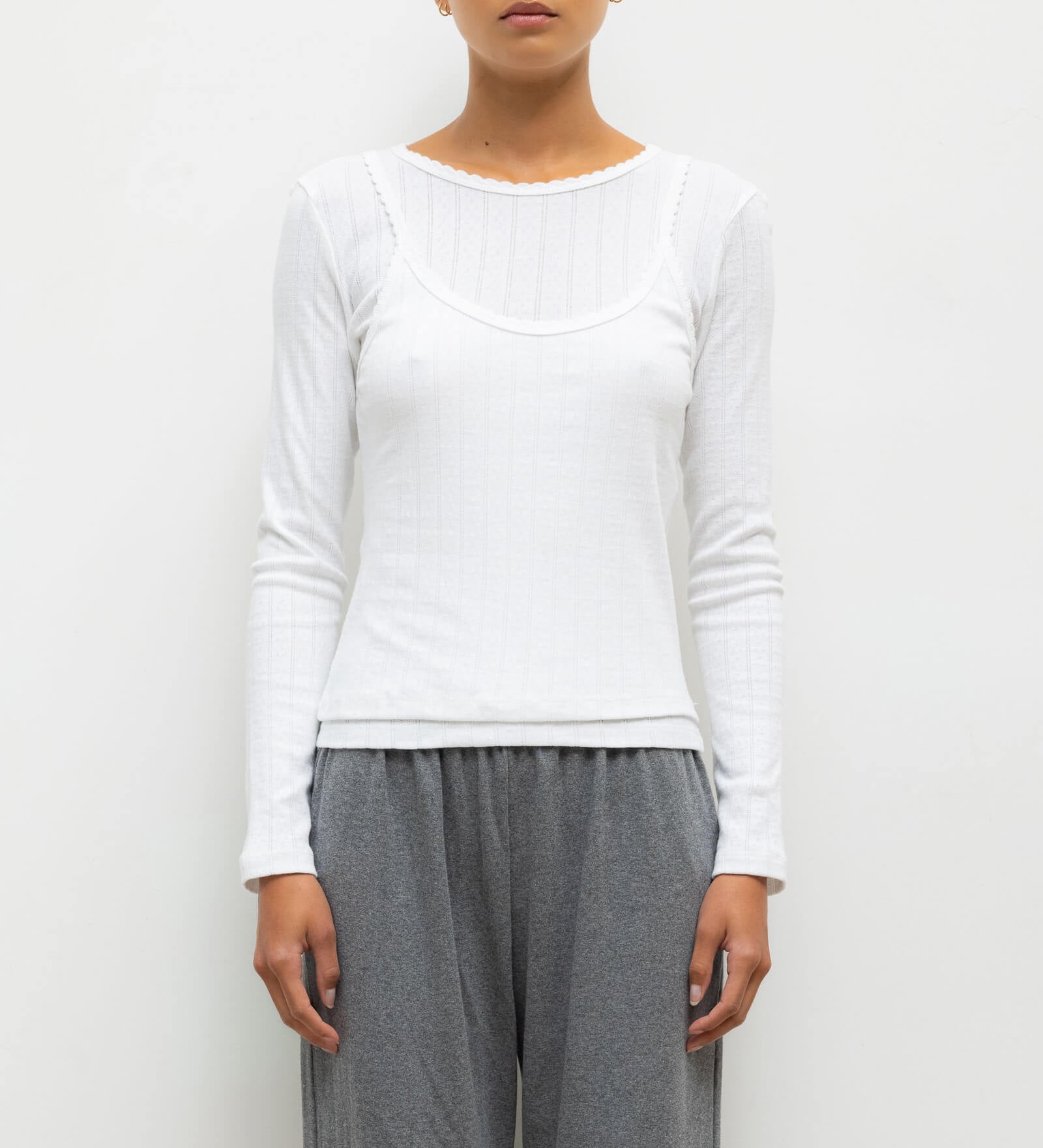 Leset - Pointelle Crop Button Scoop Neck Tank