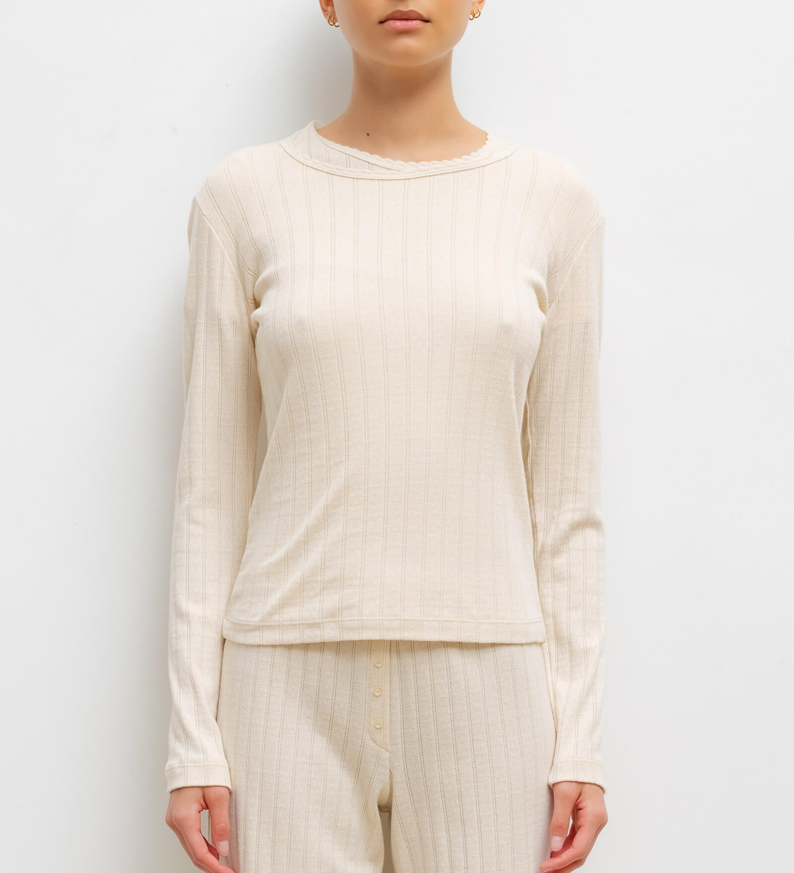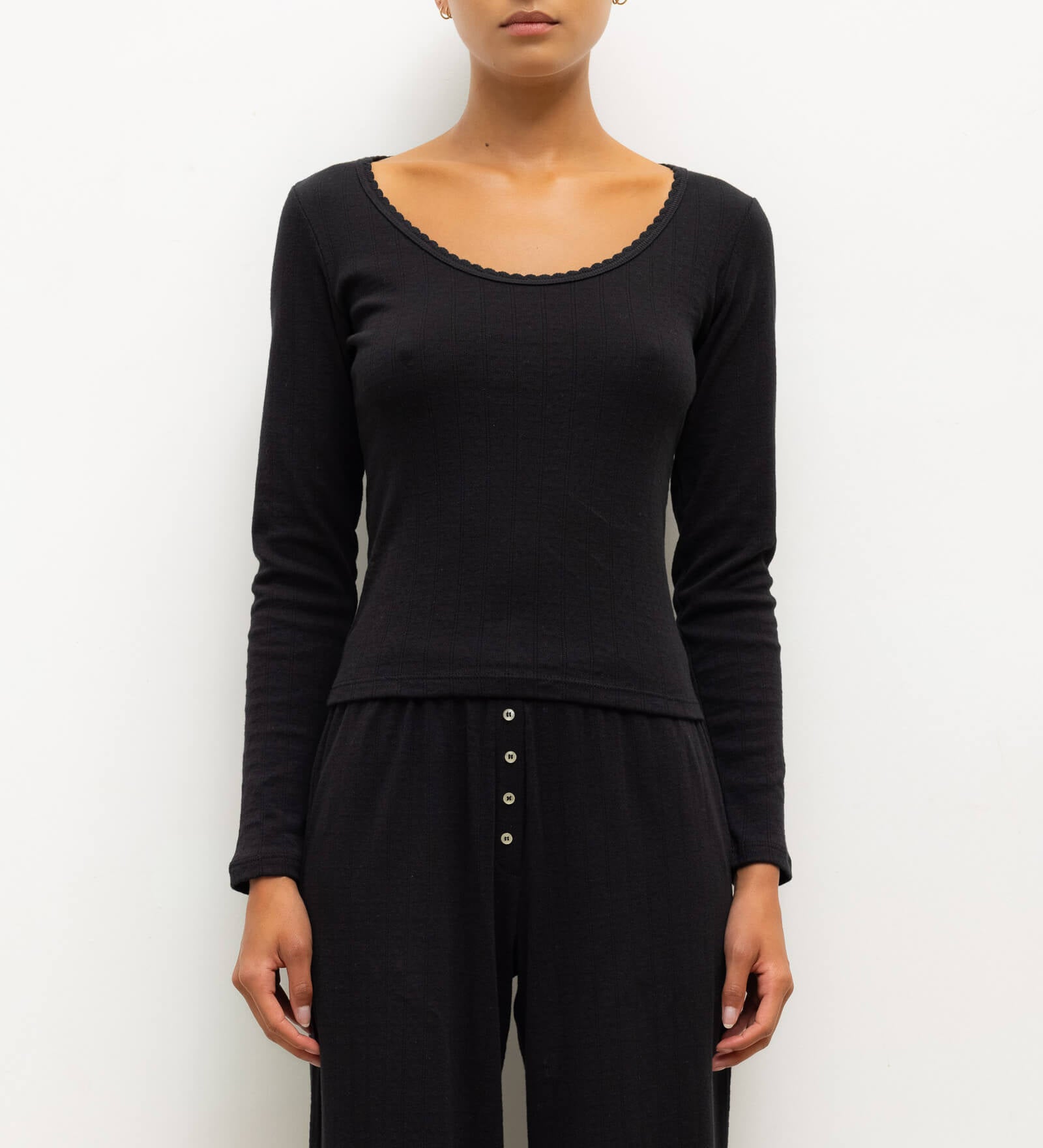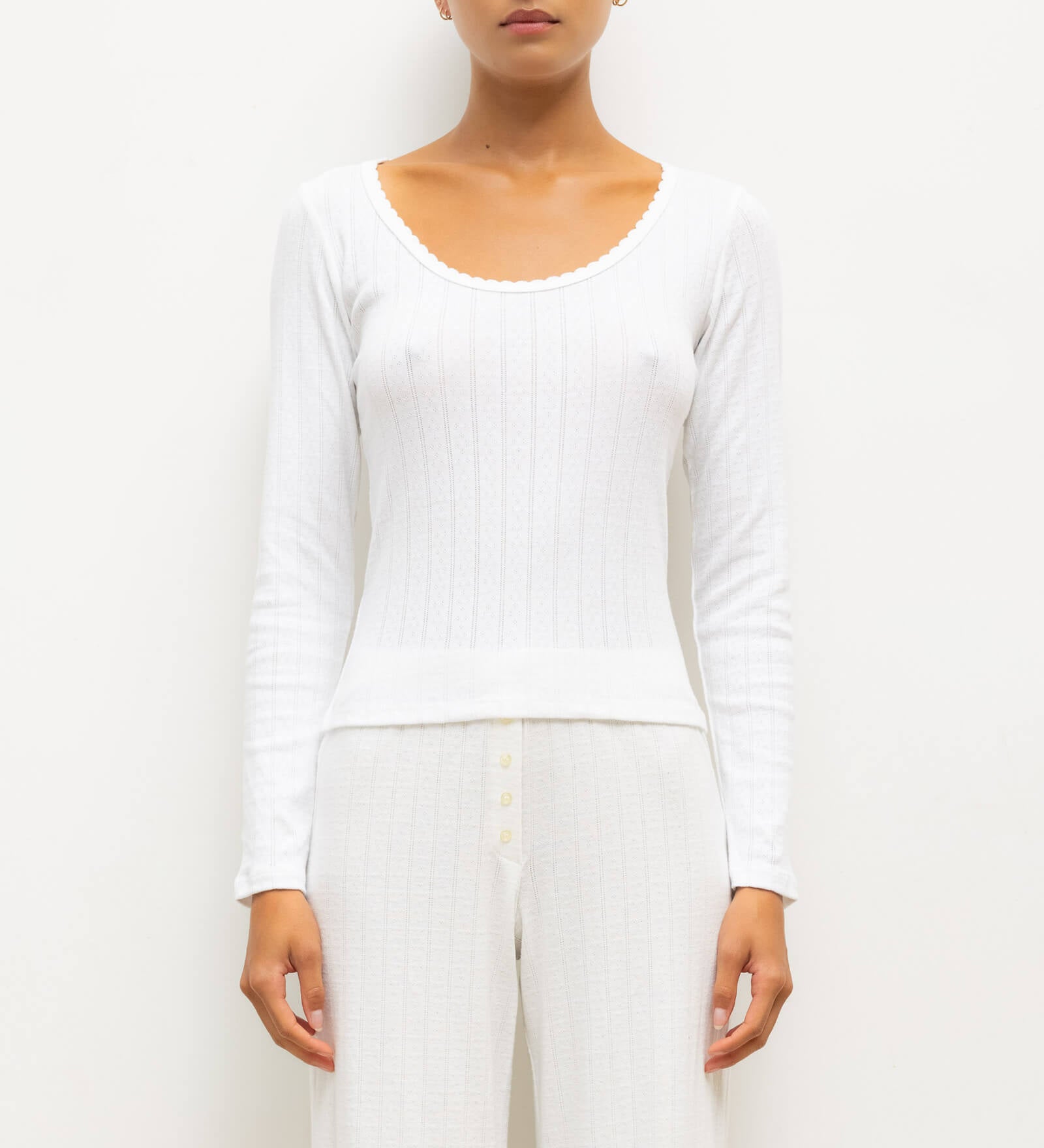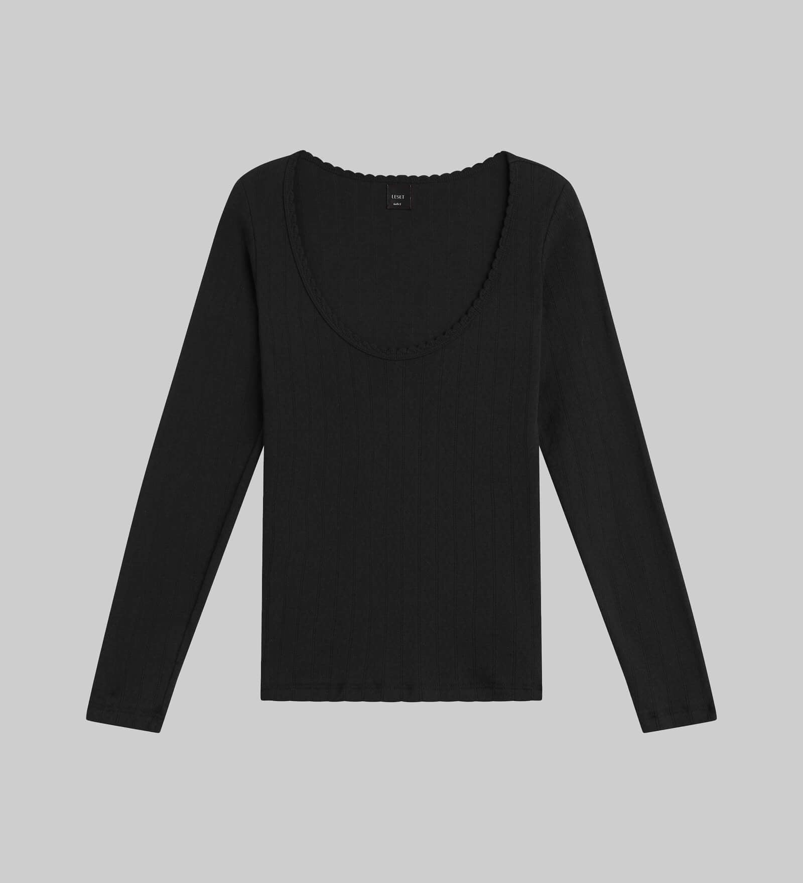 Leset - Pointelle Long Sleeve Scoop Neck