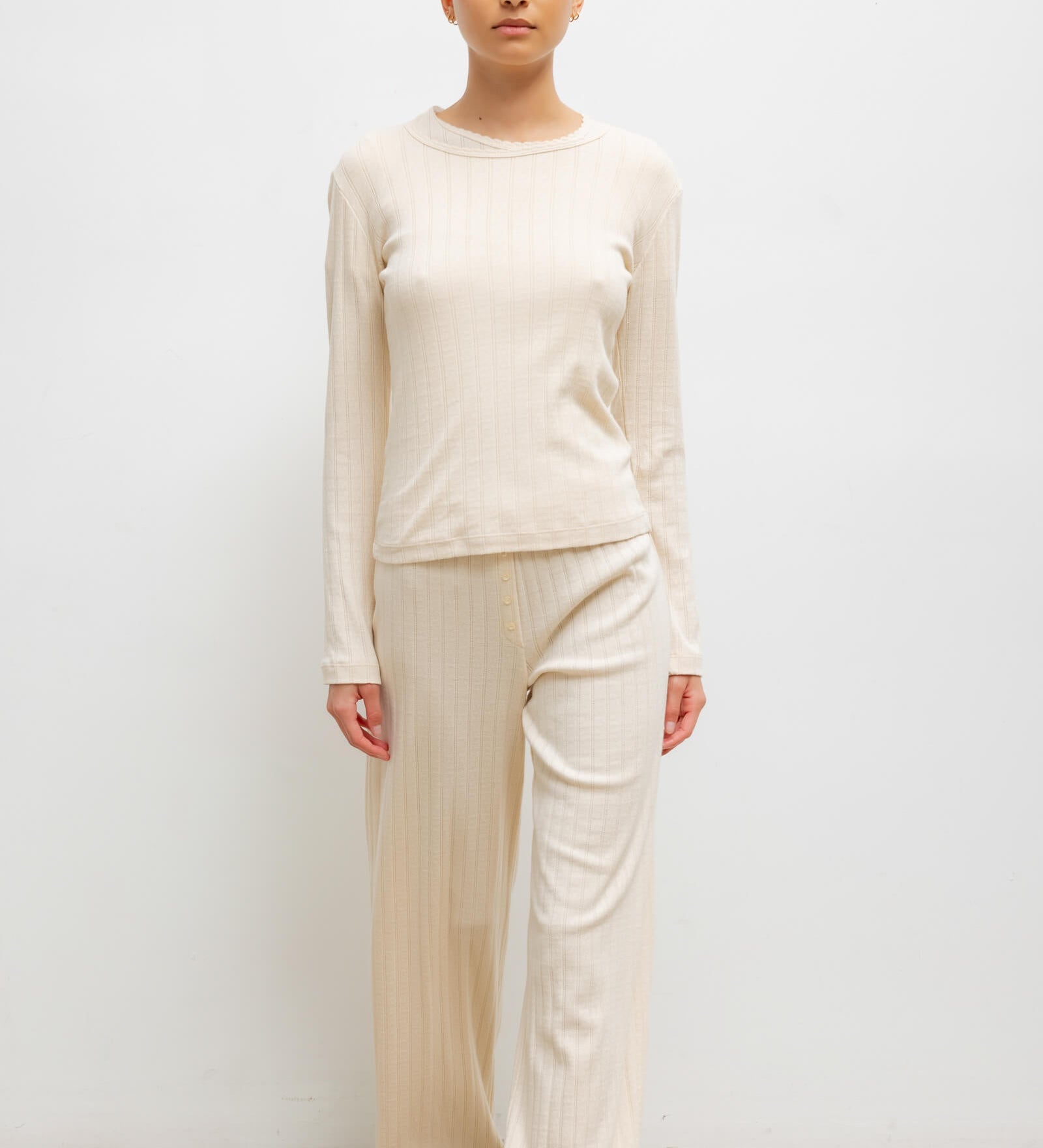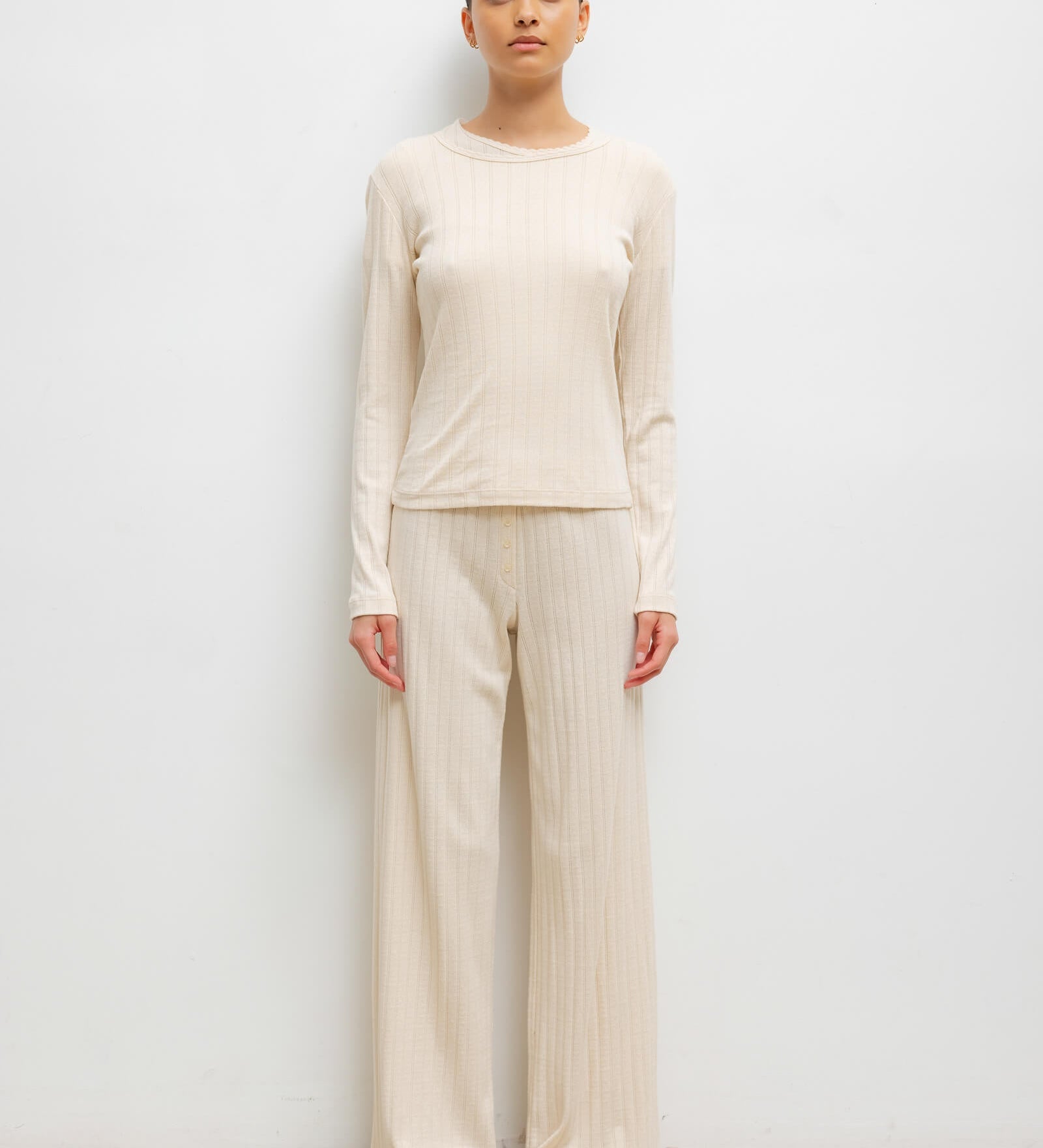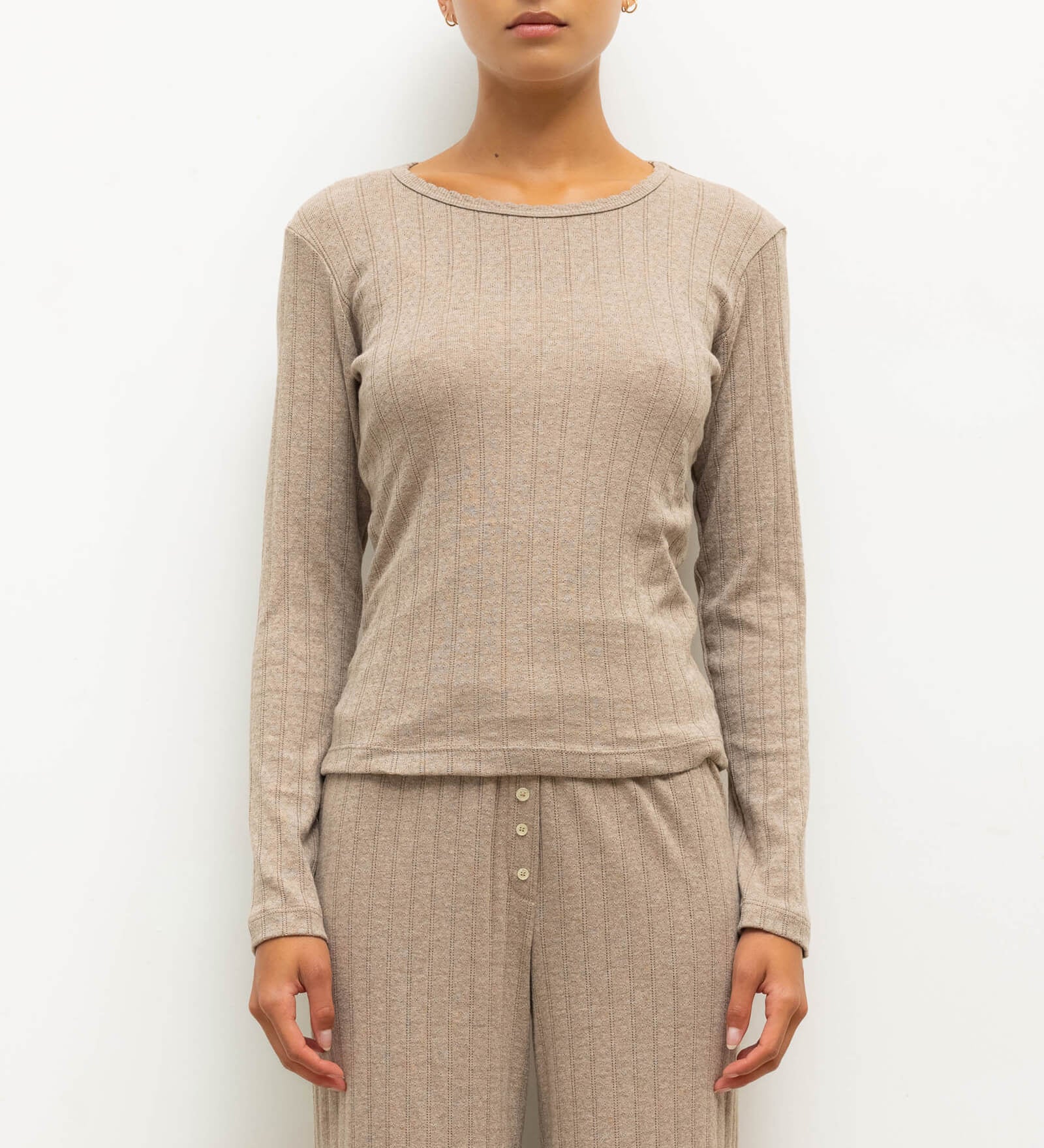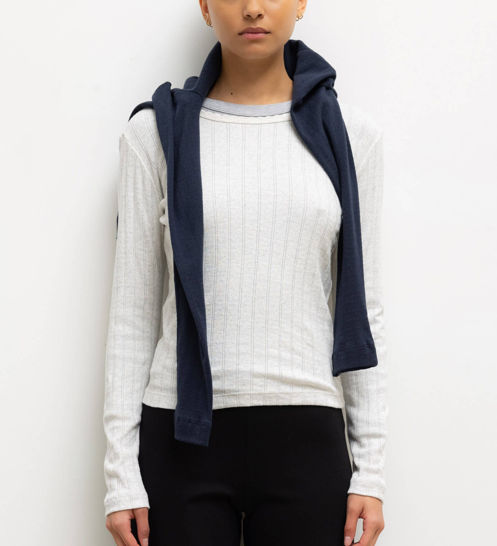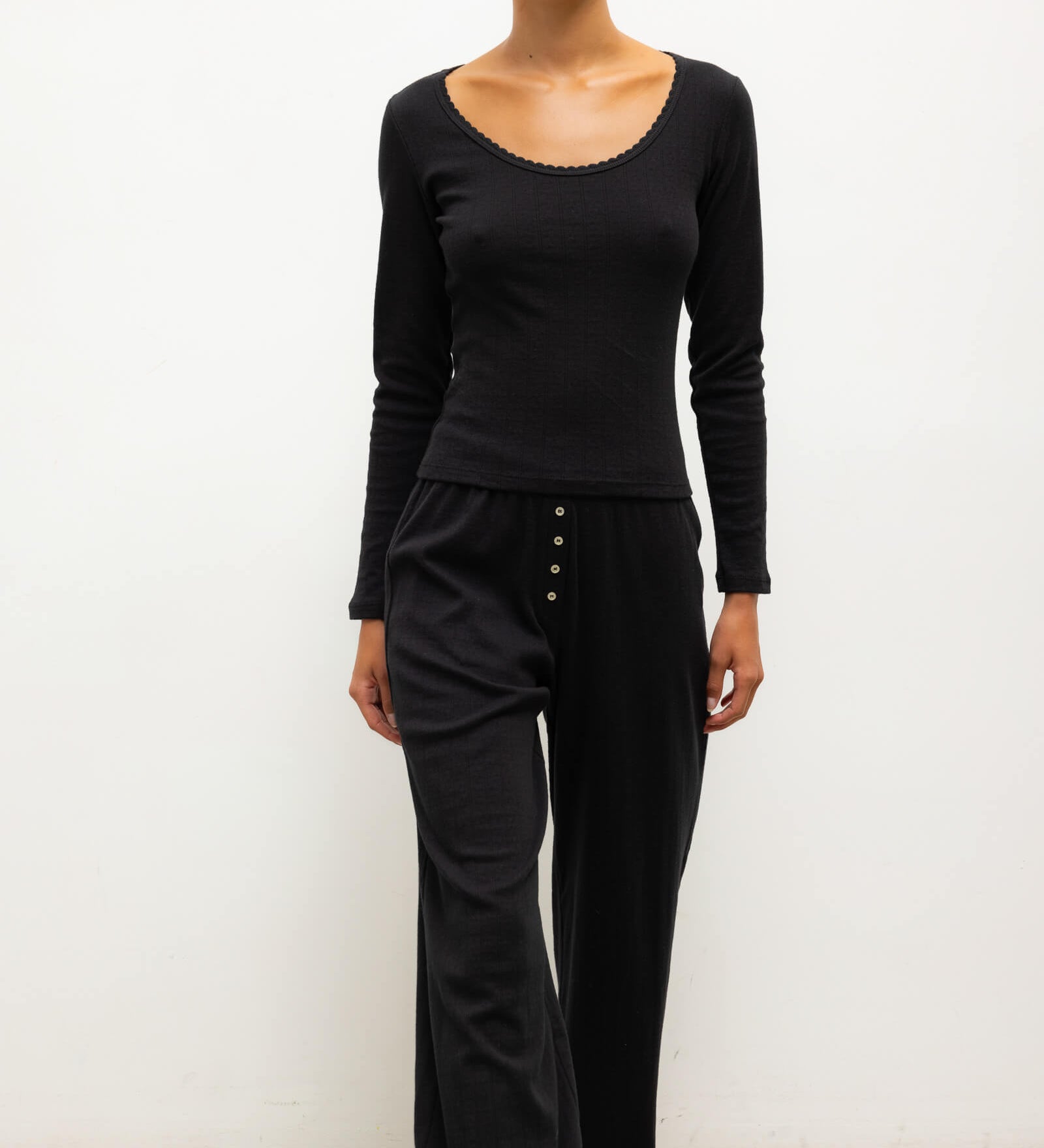 Leset - Pointelle Long Sleeve Scoop Neck