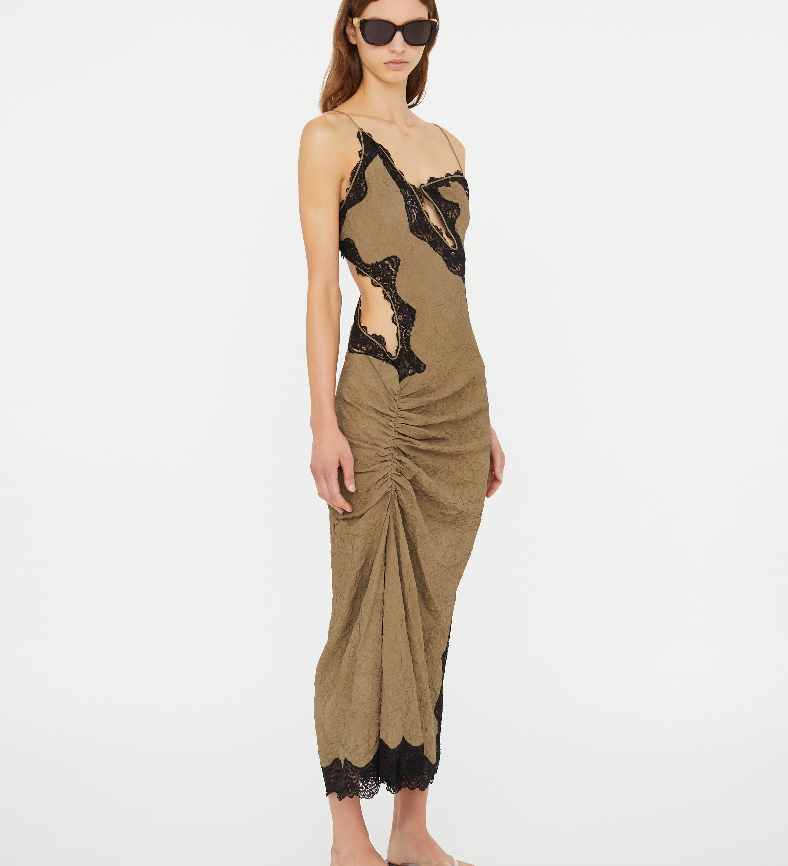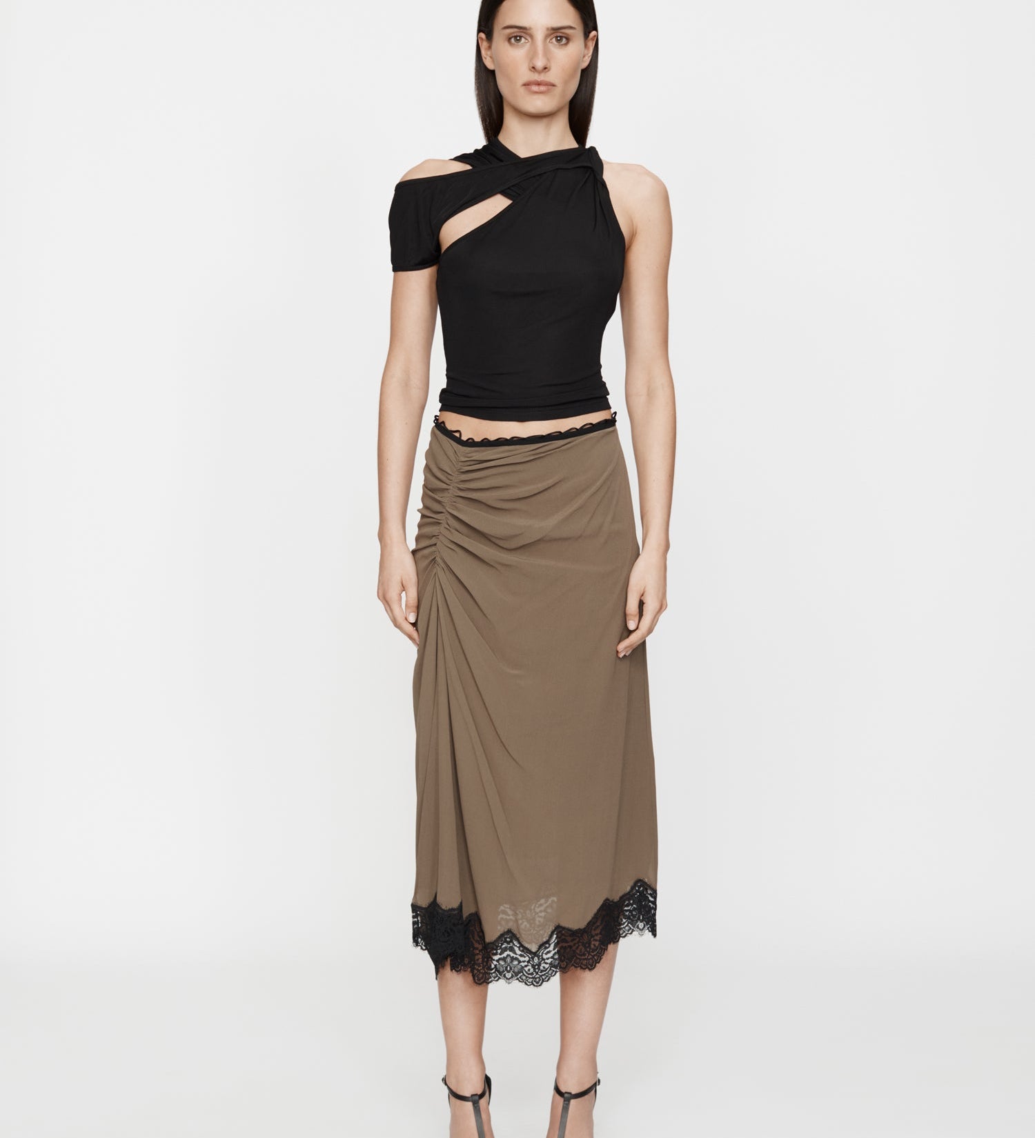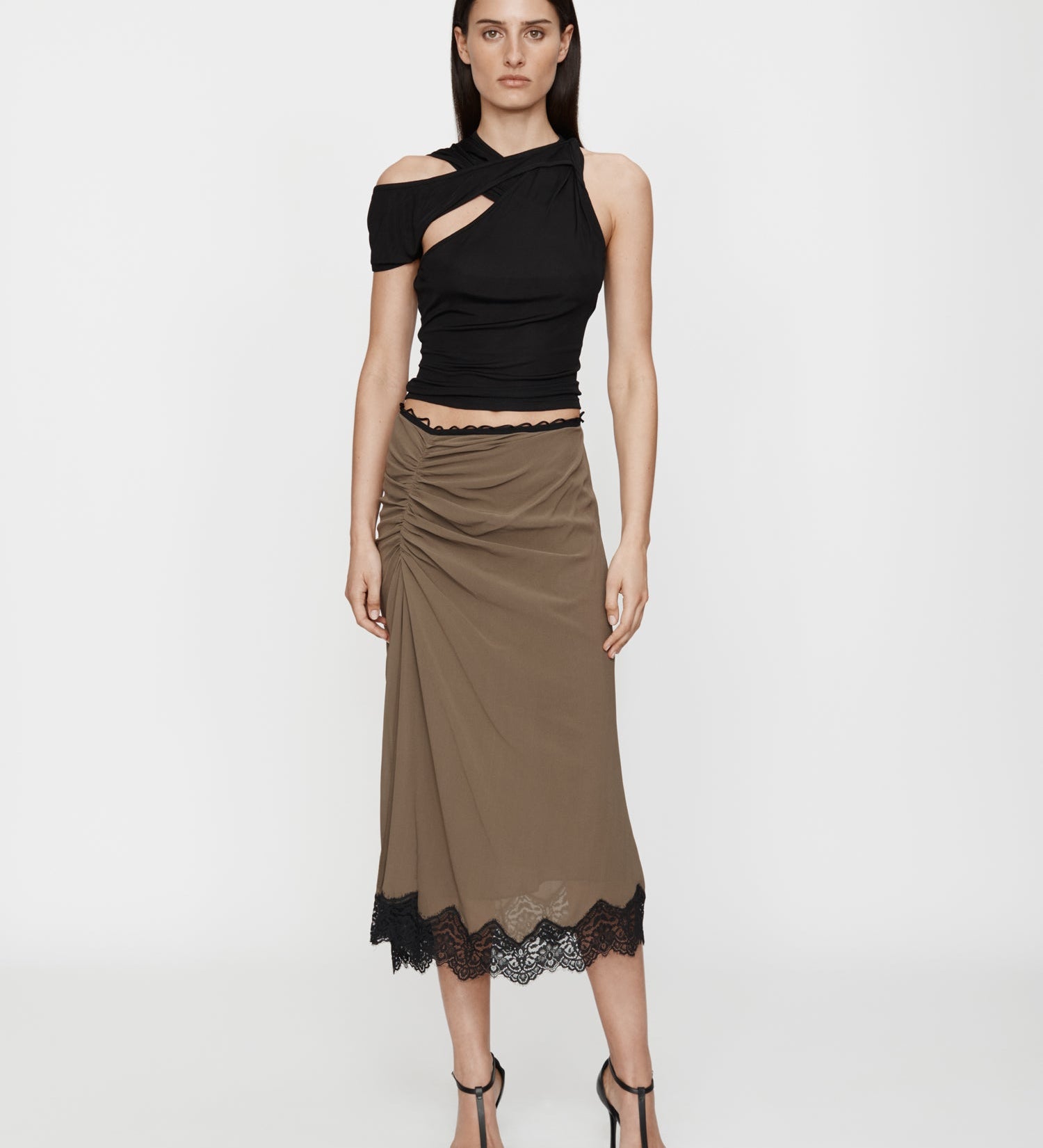 Christopher Esber - Crimped Lace Gathered Silk Skirt