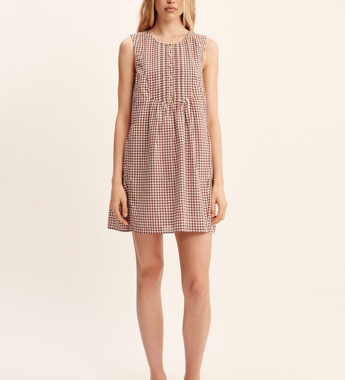 Posse - CALLIE MINI DRESS - MOCHA GINGHAM