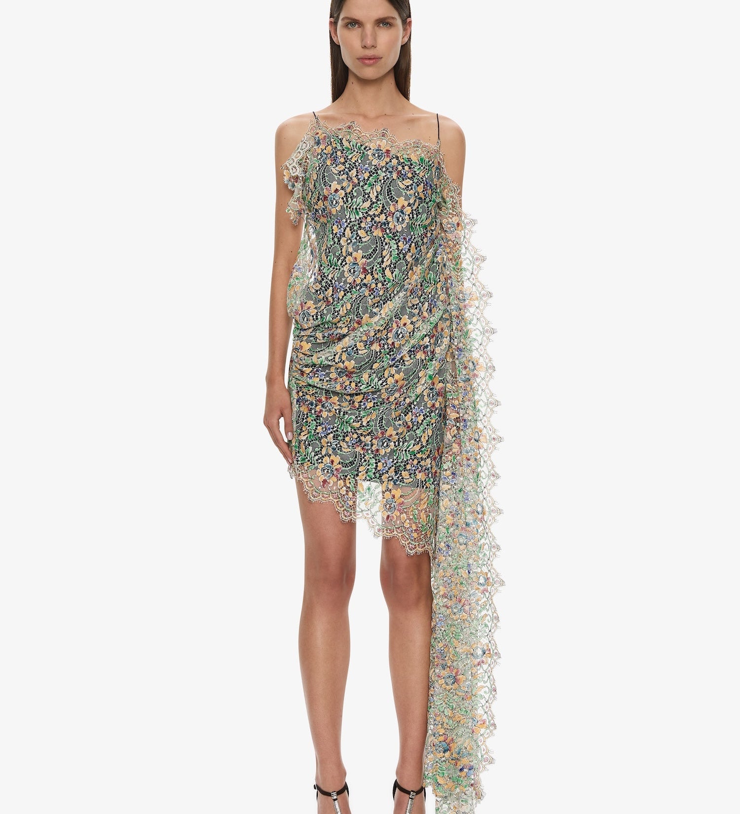 Christopher Esber - Hand Painted Draped Lace Mini Dress