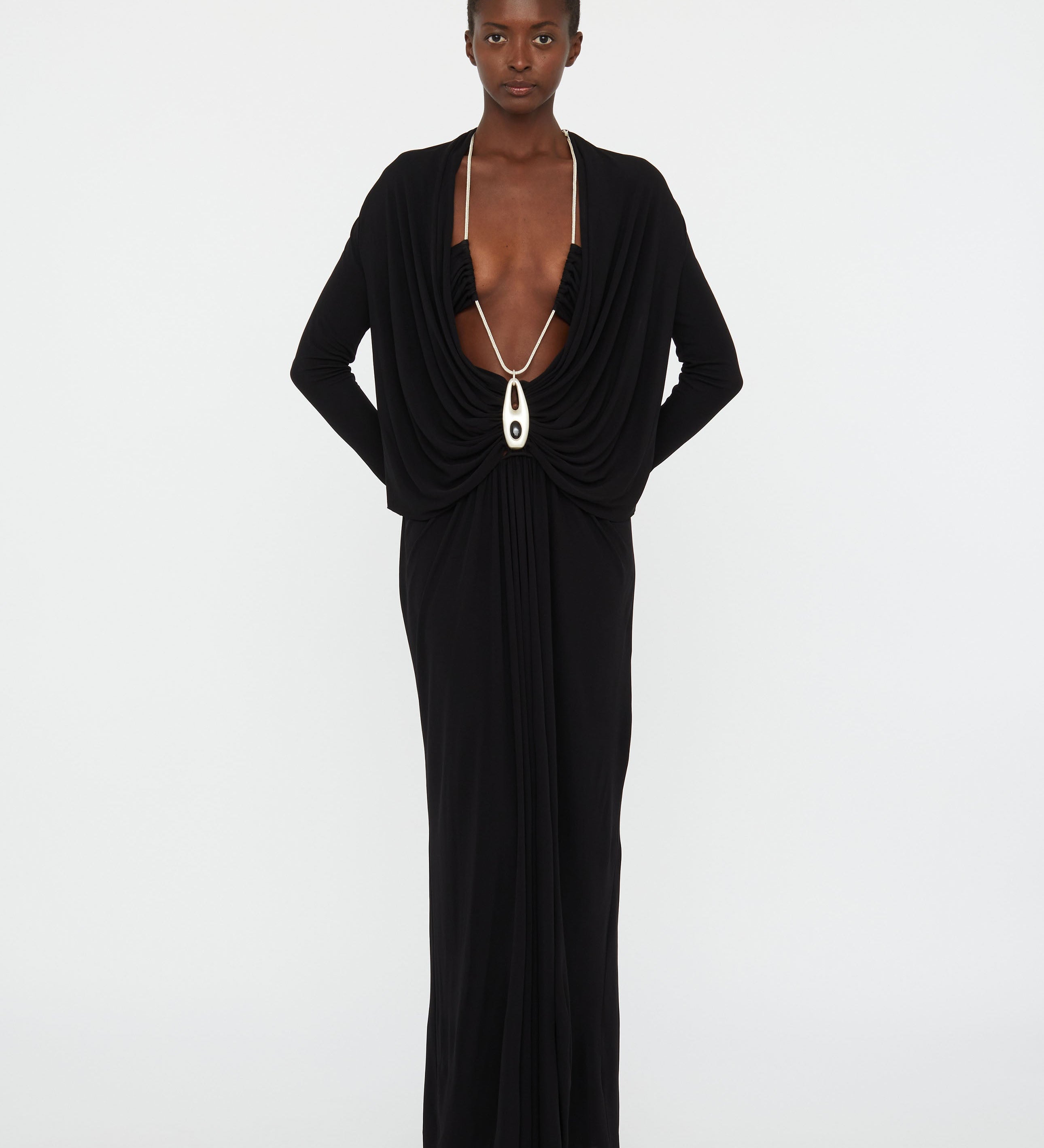 Christopher Esber - Lavalliere Draped Jersey Long Sleeve Dress