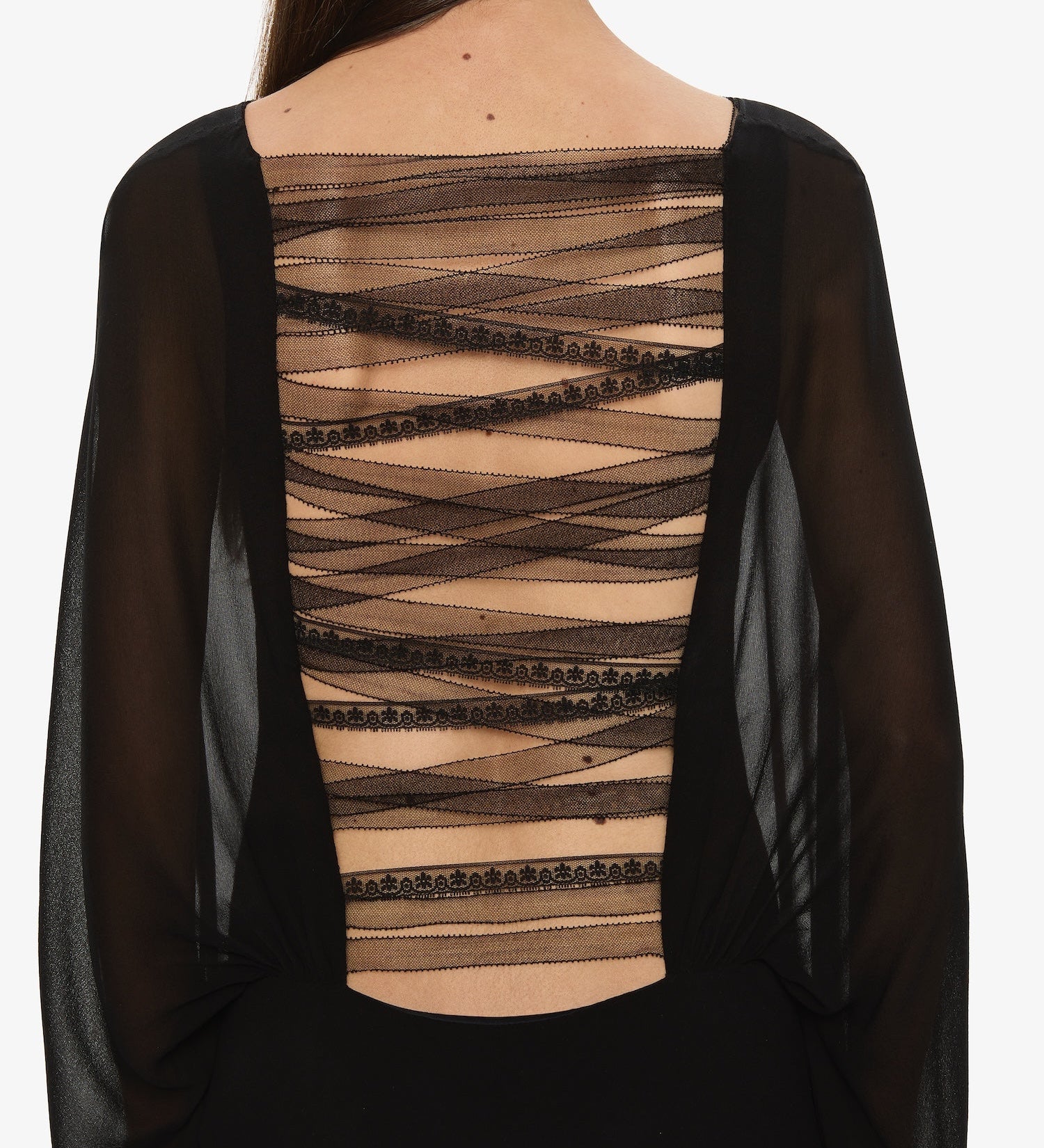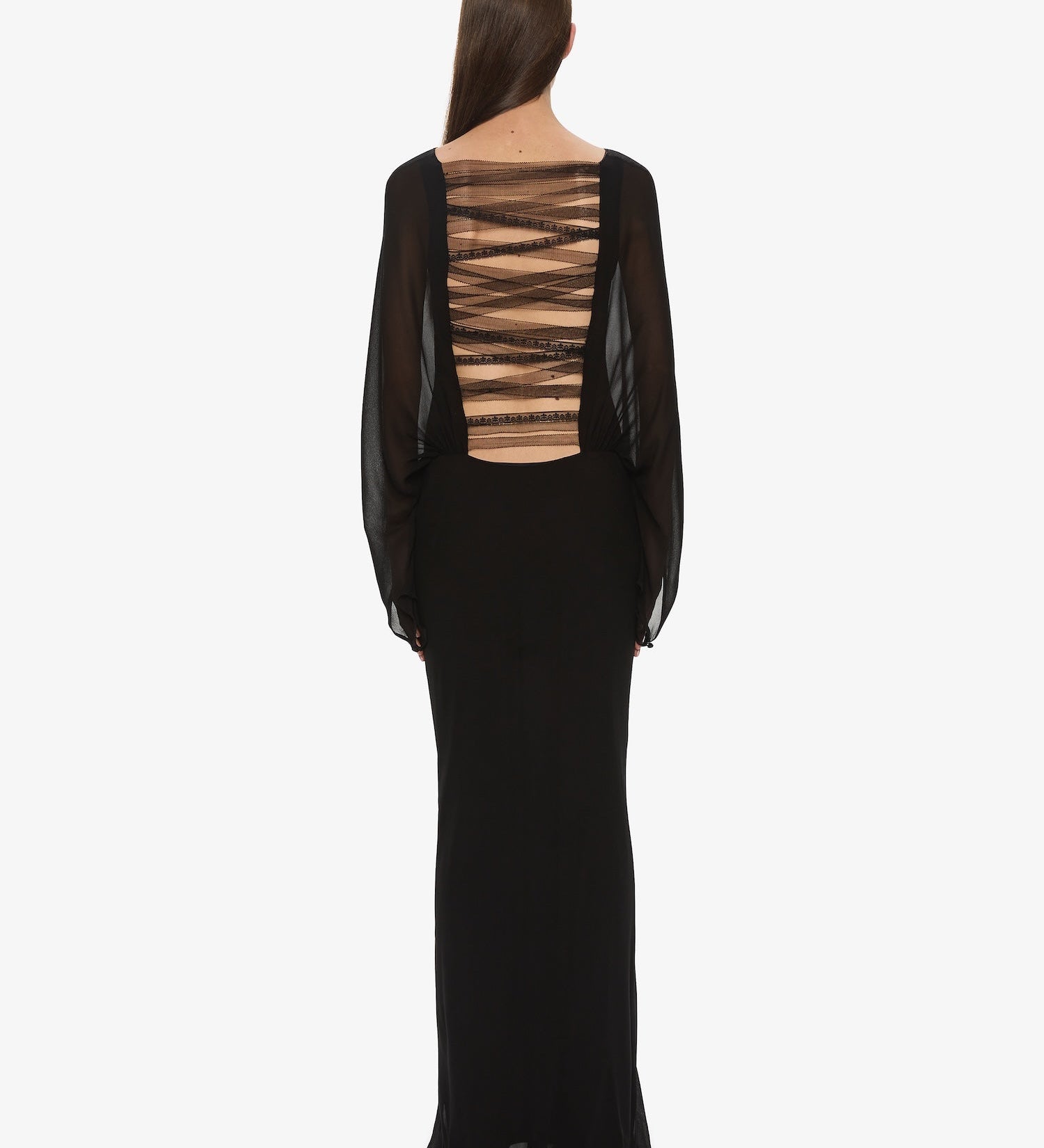 Christopher Esber - Lattice Lace Silk Blouson Long Dress