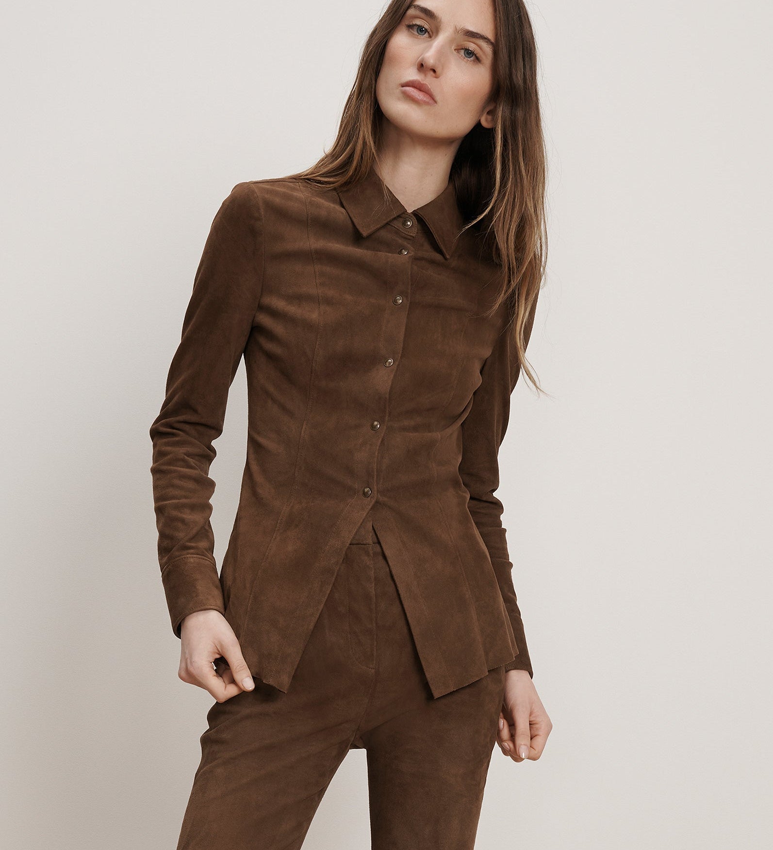 Veronica Beard - Wittaker Suede Button-Down Shirt
