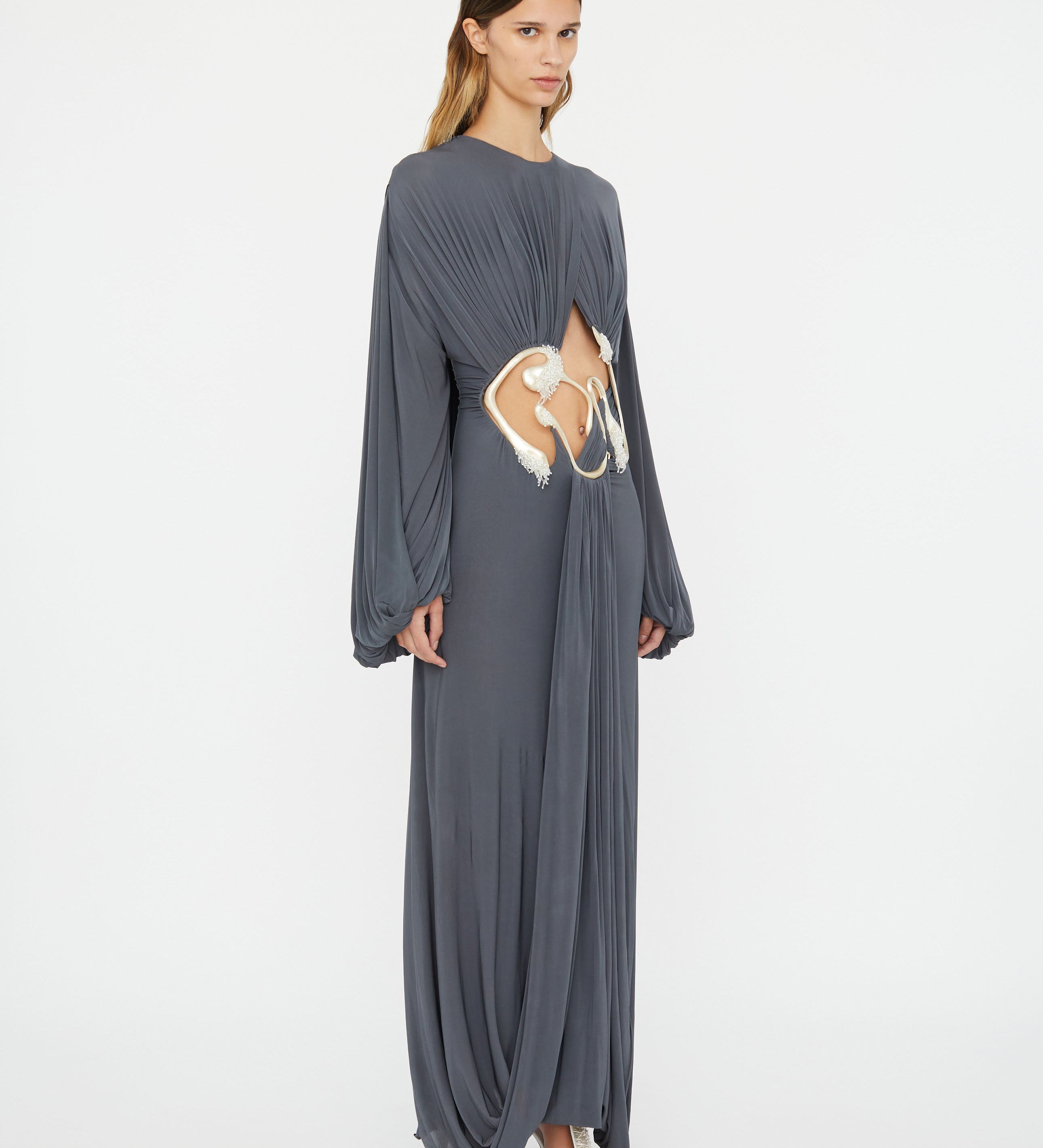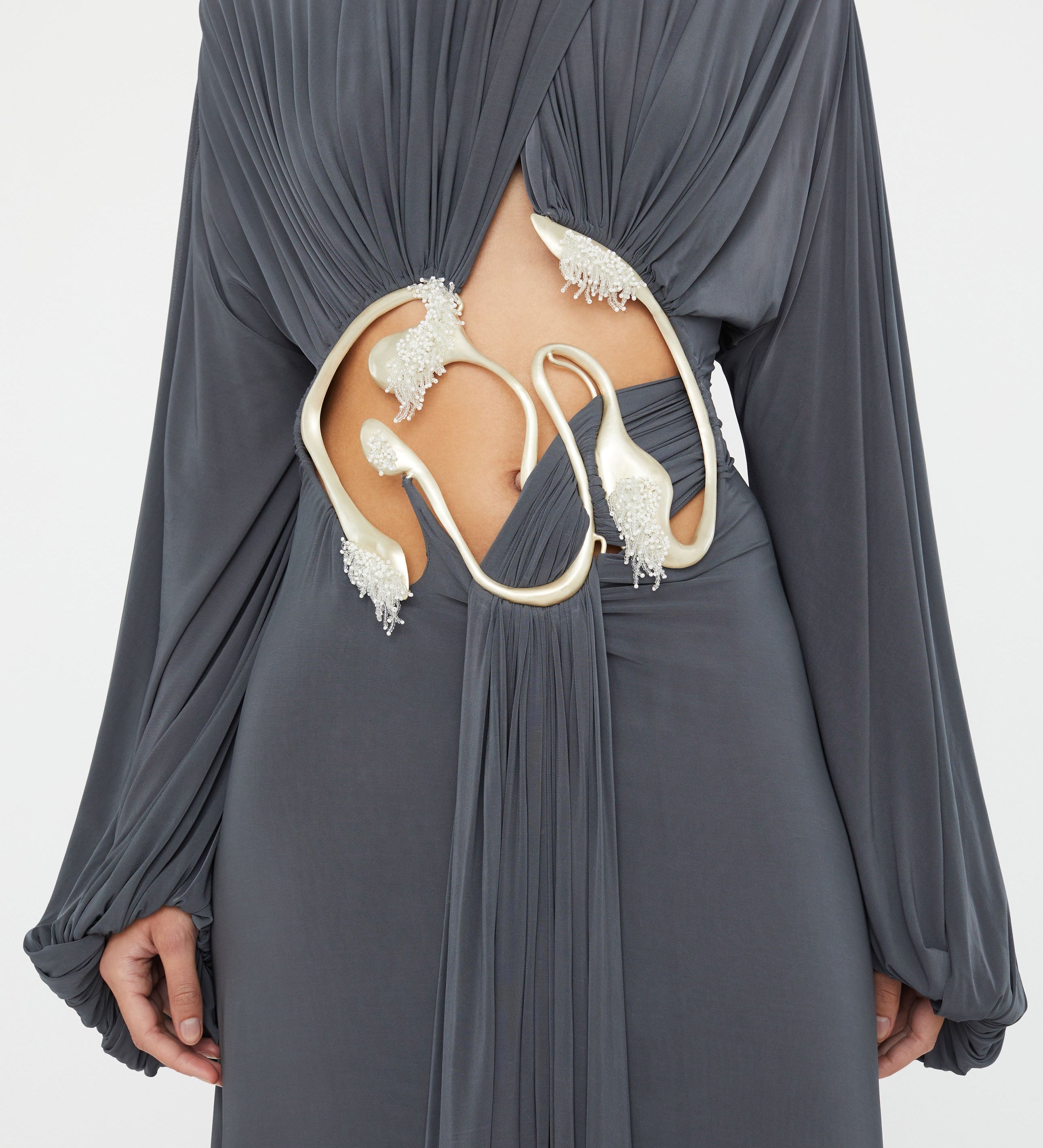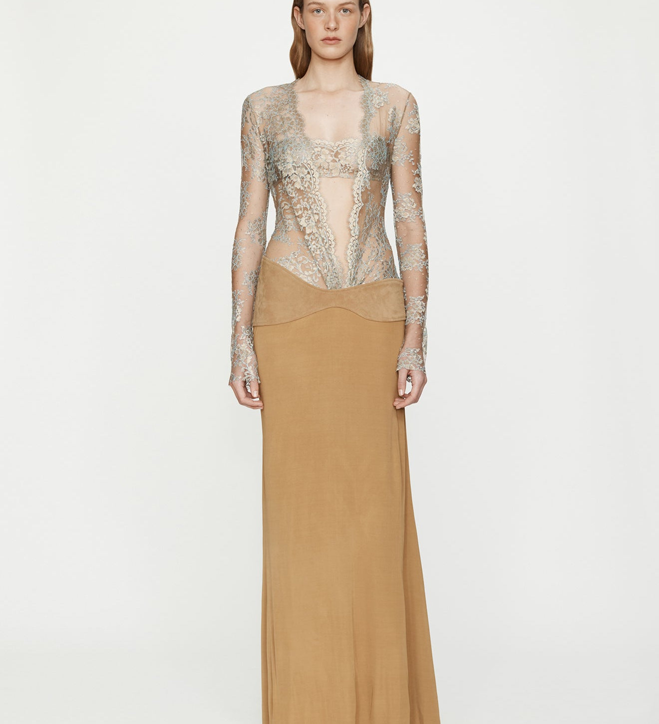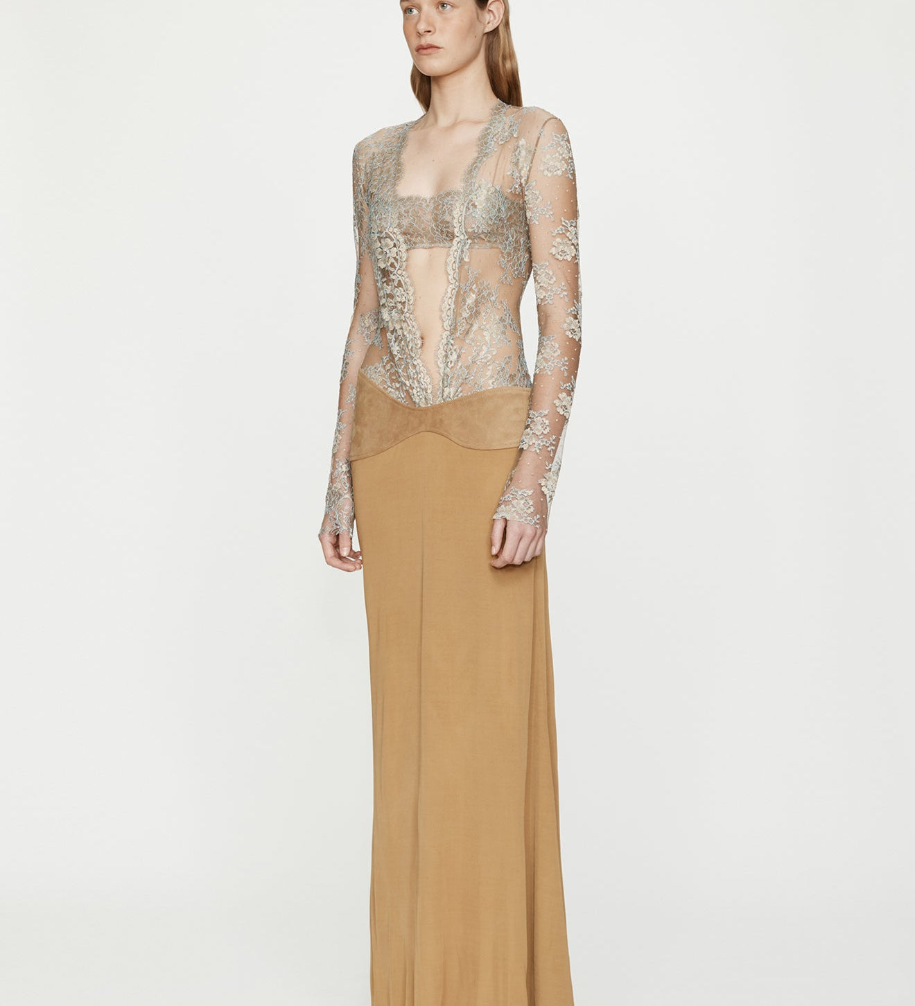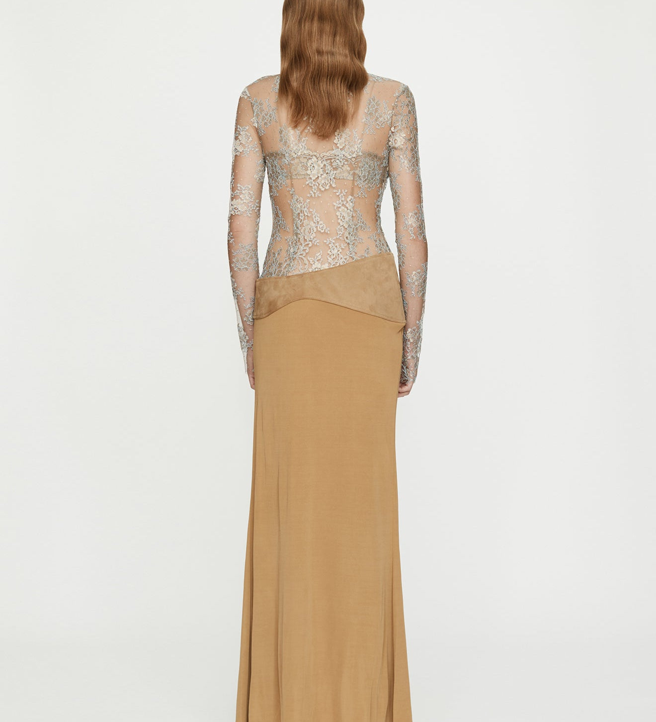 Christopher Esber - Sèpienne Lace Suede Belted Jersey Gown