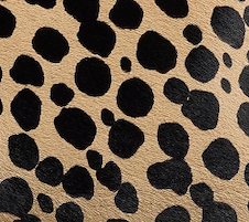 An elongated silhouette that unites lines with curves in spotted haircalf accented by velvety black suede. Topped by sleek, doubled straps and a custom zipper. Calfskin card pocket at interior.