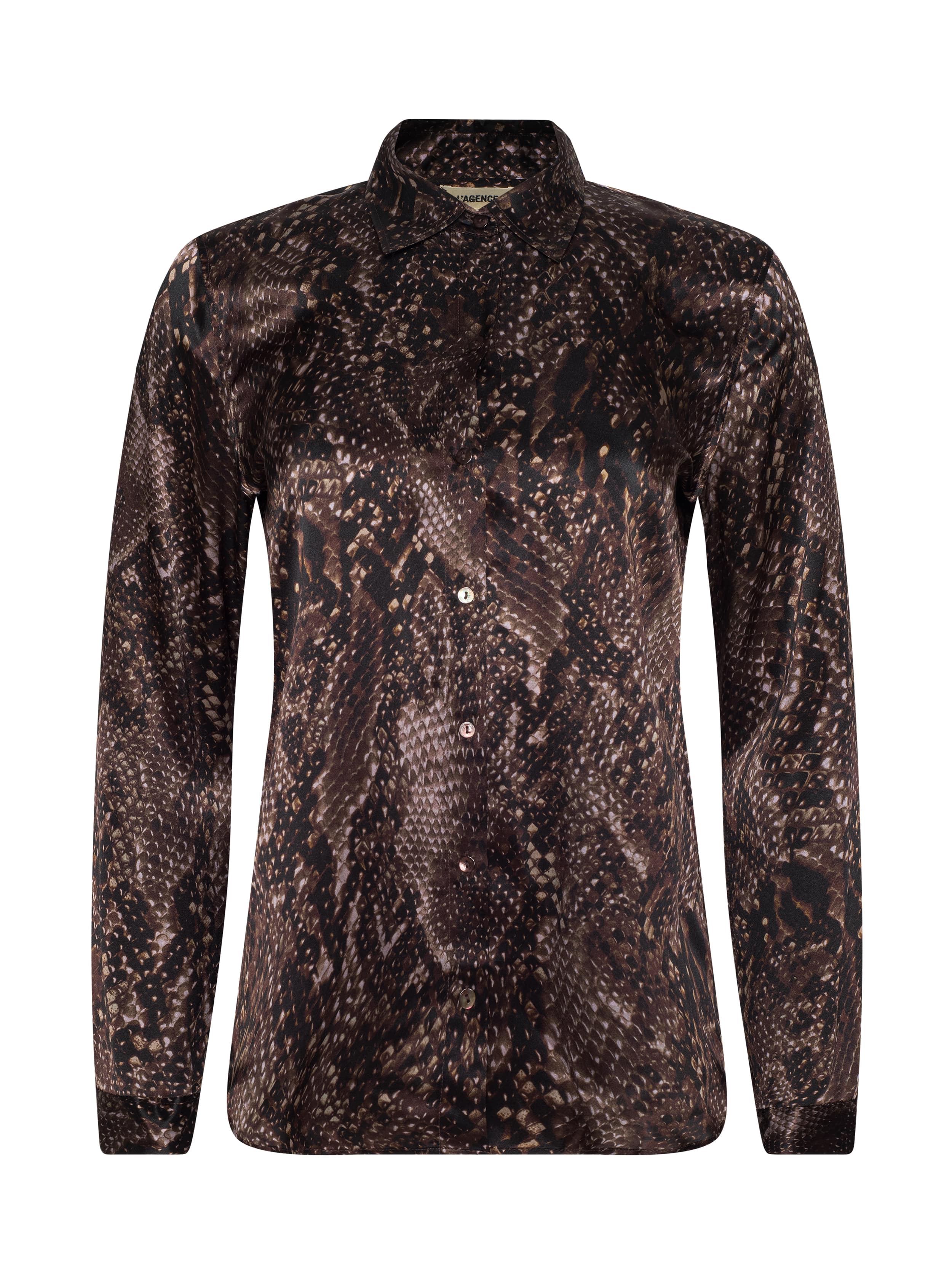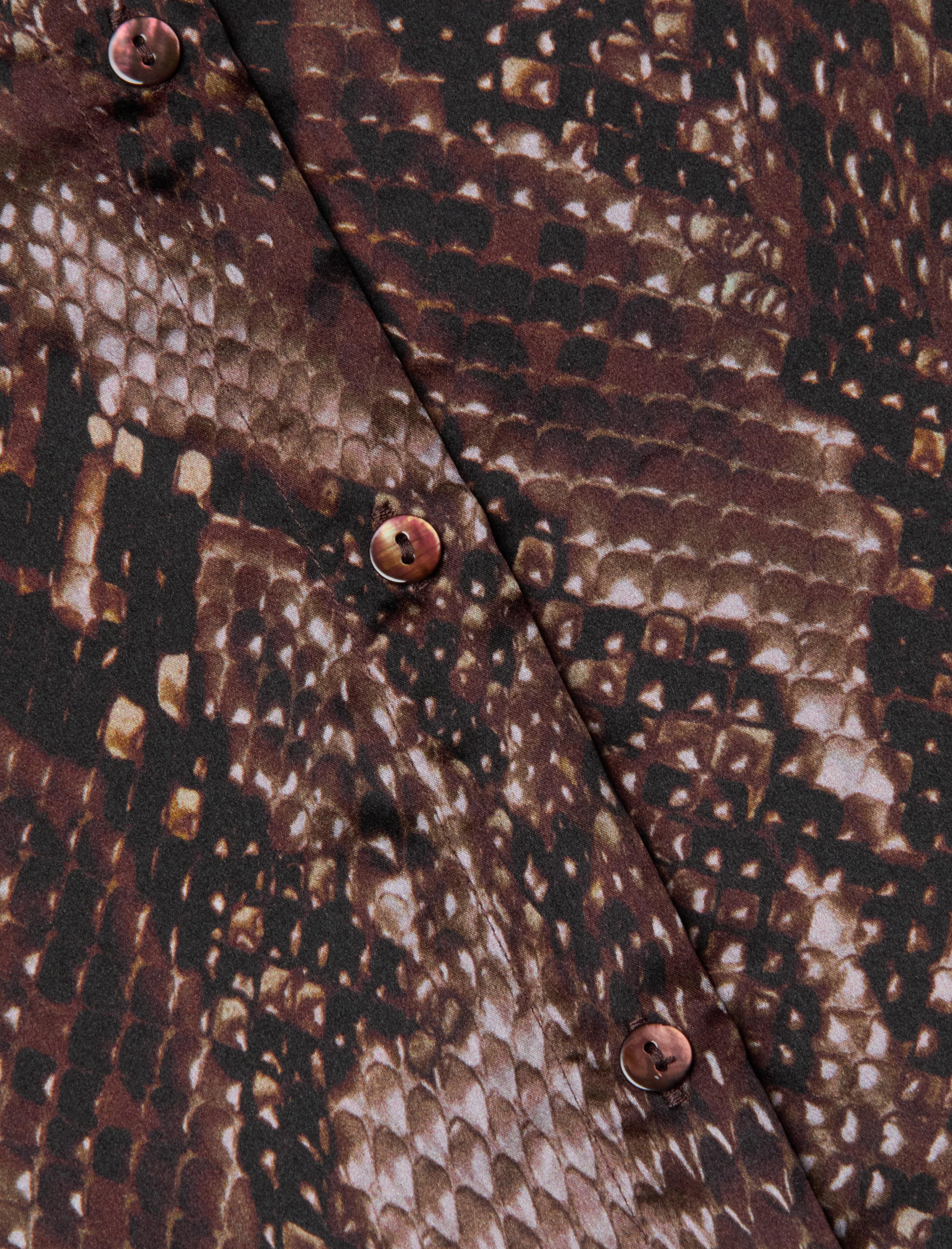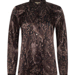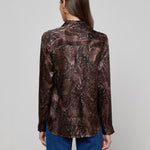 Meet the iconic long-sleeve silk button-down that belongs in every wardrobe. Reimagined each season in fresh colorways and prints, there’s a Tyler for every occasion. Now in a dark brown snake print.