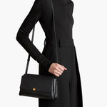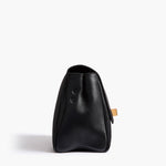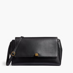 A flap-front bag to carry across the body, on the shoulder, or as a clutch. With removable, adjustable strap and magnetic clasp closure.