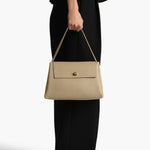 A flap-top bag that combines sculptural volume with refined structure. Accented by Art Deco-inspired hardware at the magnetic closure. Internal slip pocket.