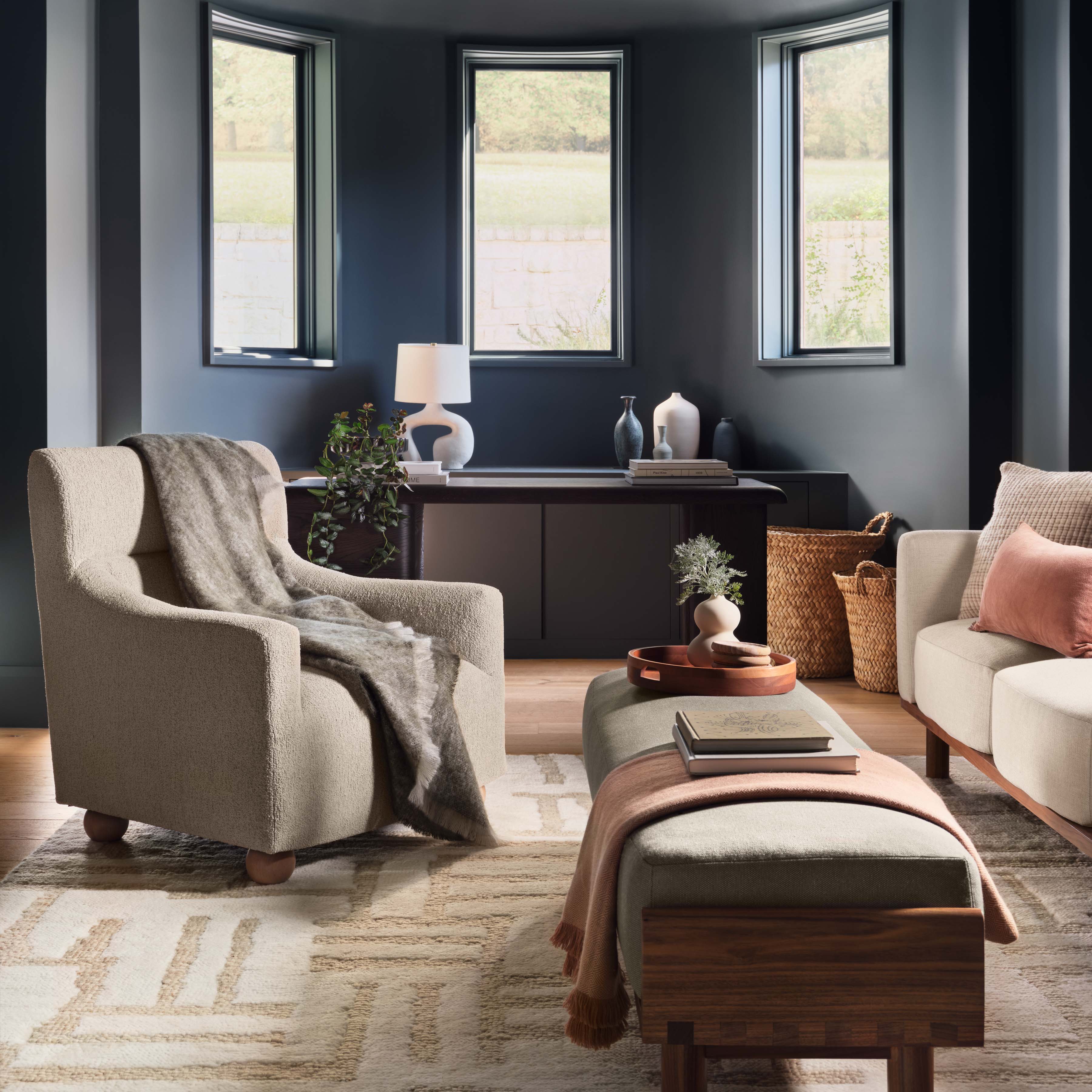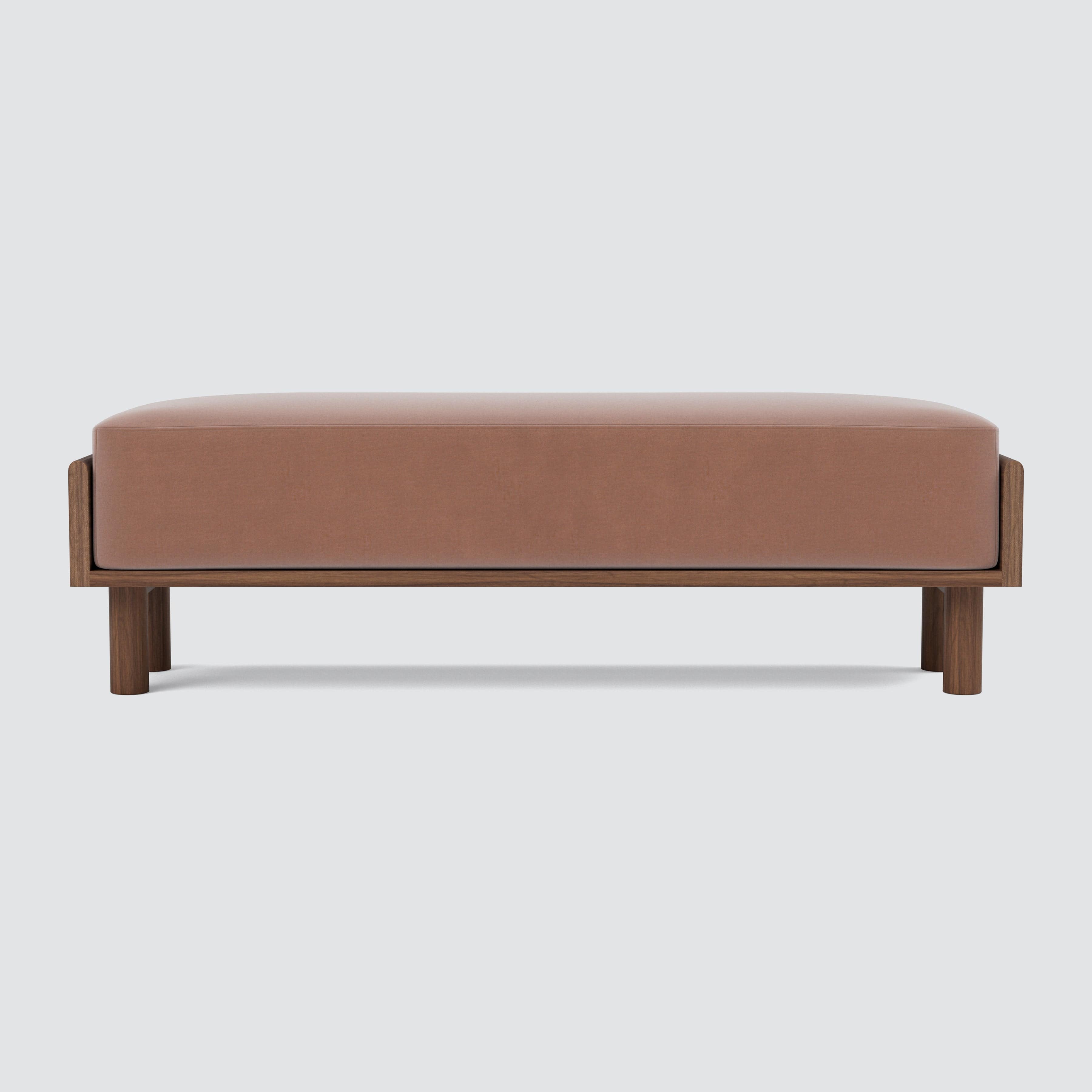 An accent that’s at home in every room, this beautiful upholstered bench mixes modern, architectural design with vintage-inspired details. Crafted with a rich walnut frame with meticulous joint detailing, every piece is upholstered with your choice of velvet or performance fabrics. Crafted for comfort, each bench is made with high-resiliency foam that's firm, yet still incredibly plush, with the perfect sink-in feel.