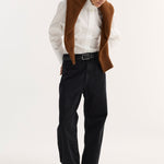 Our classic denim cut from pure cotton, designed with a low-rise fit that sits effortlessly at the hip. Finished with an elongating wide leg and a branded metal button.