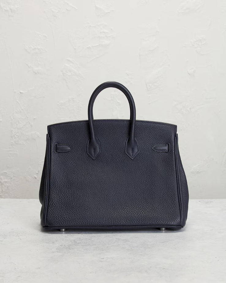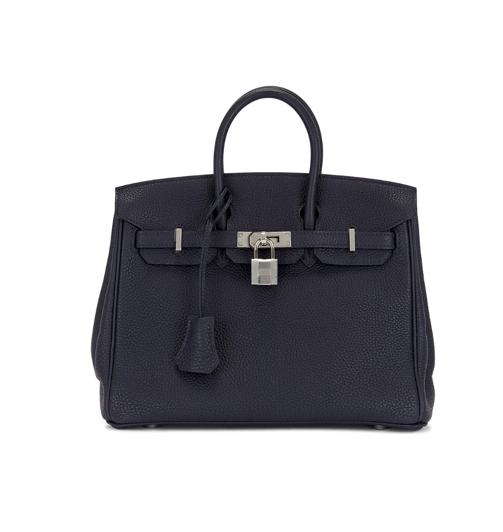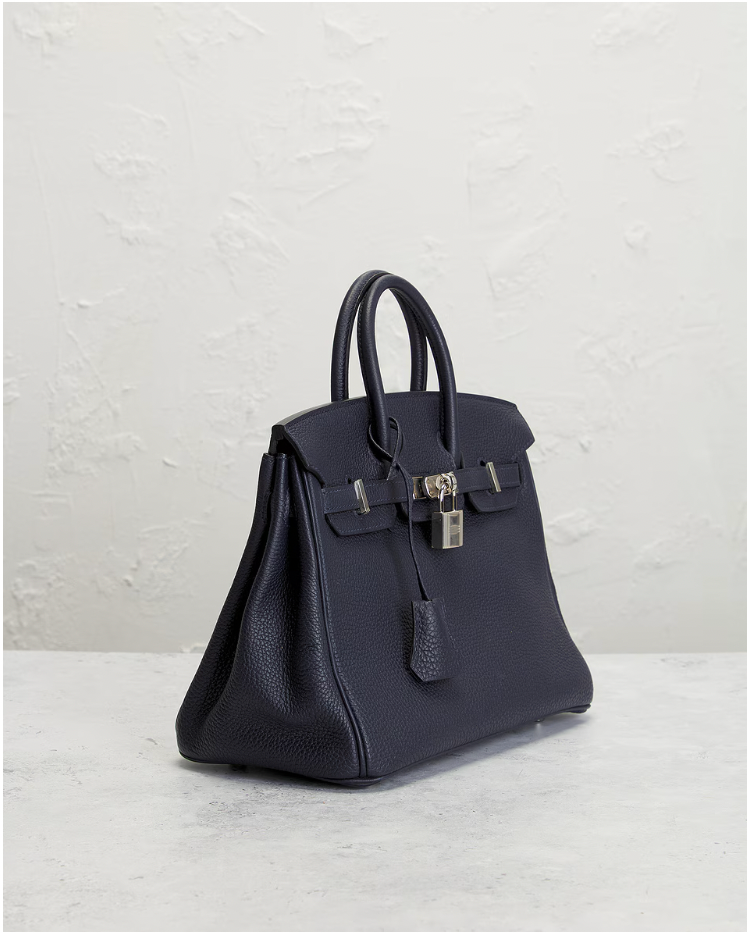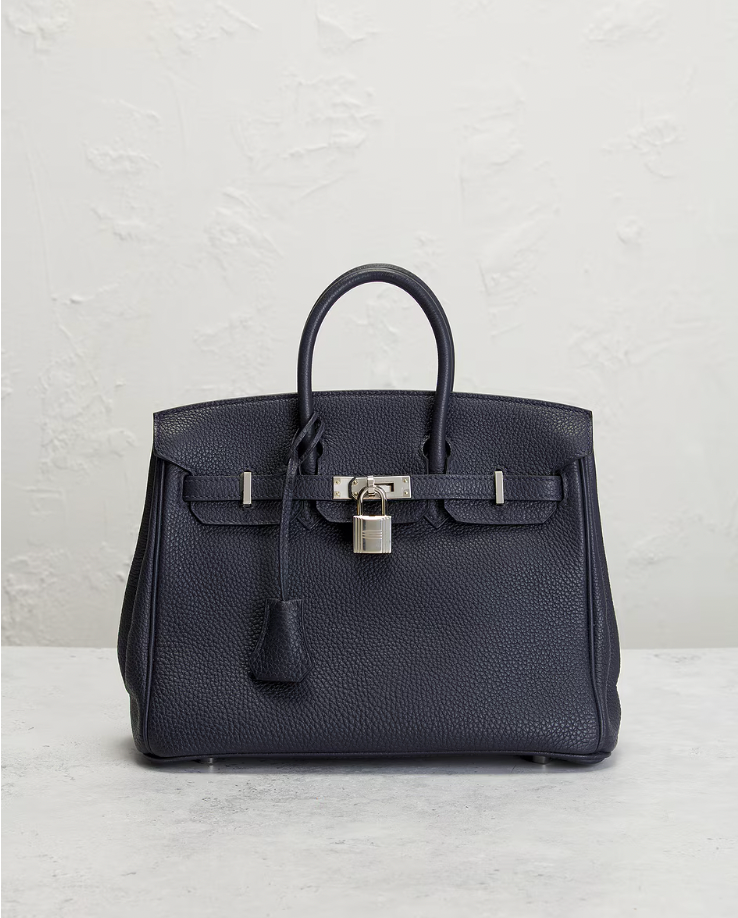 This Hermes Togo Birkin 25 Handbag in Blue Encre is a navy investment piece dream. Hand-selected by our style community it's giving all the vintage vibes with classy tones.