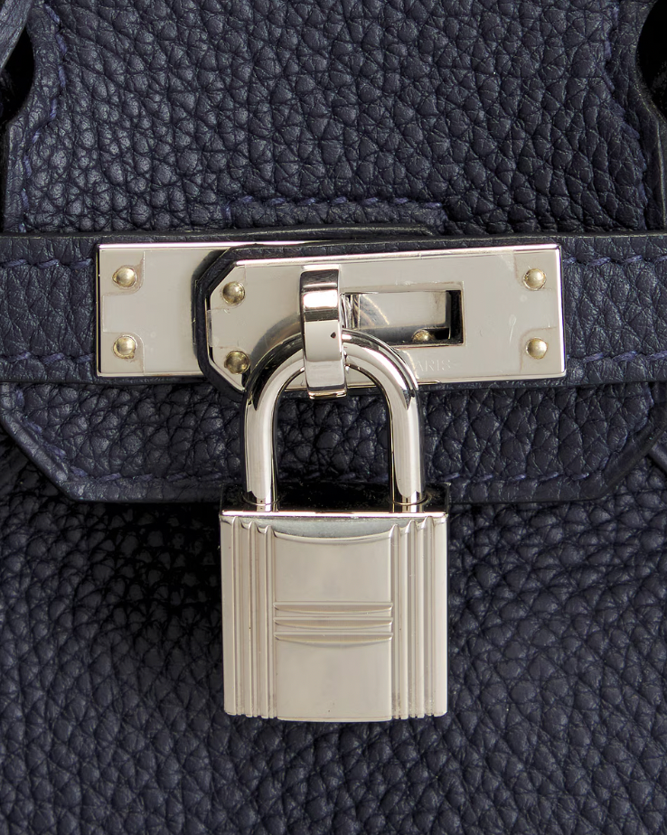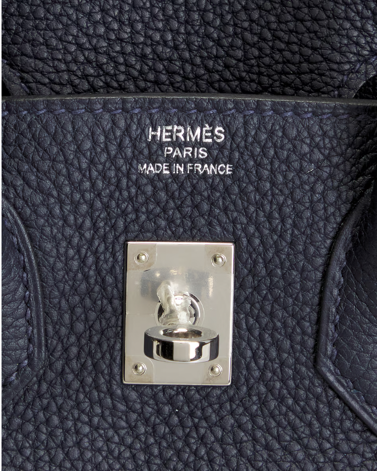 Hermes Togo Birkin 25 Handbag in Bleu Encre
