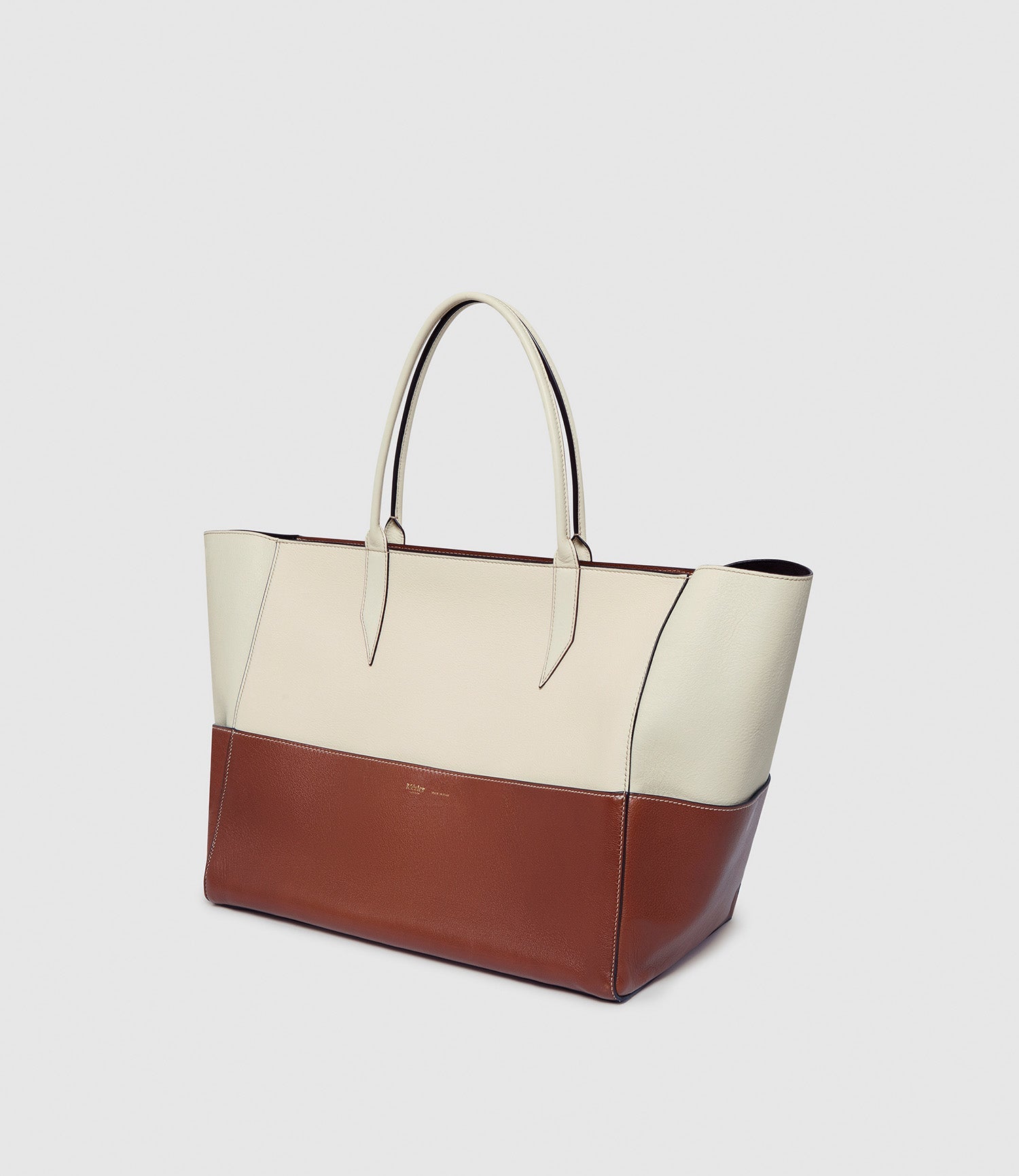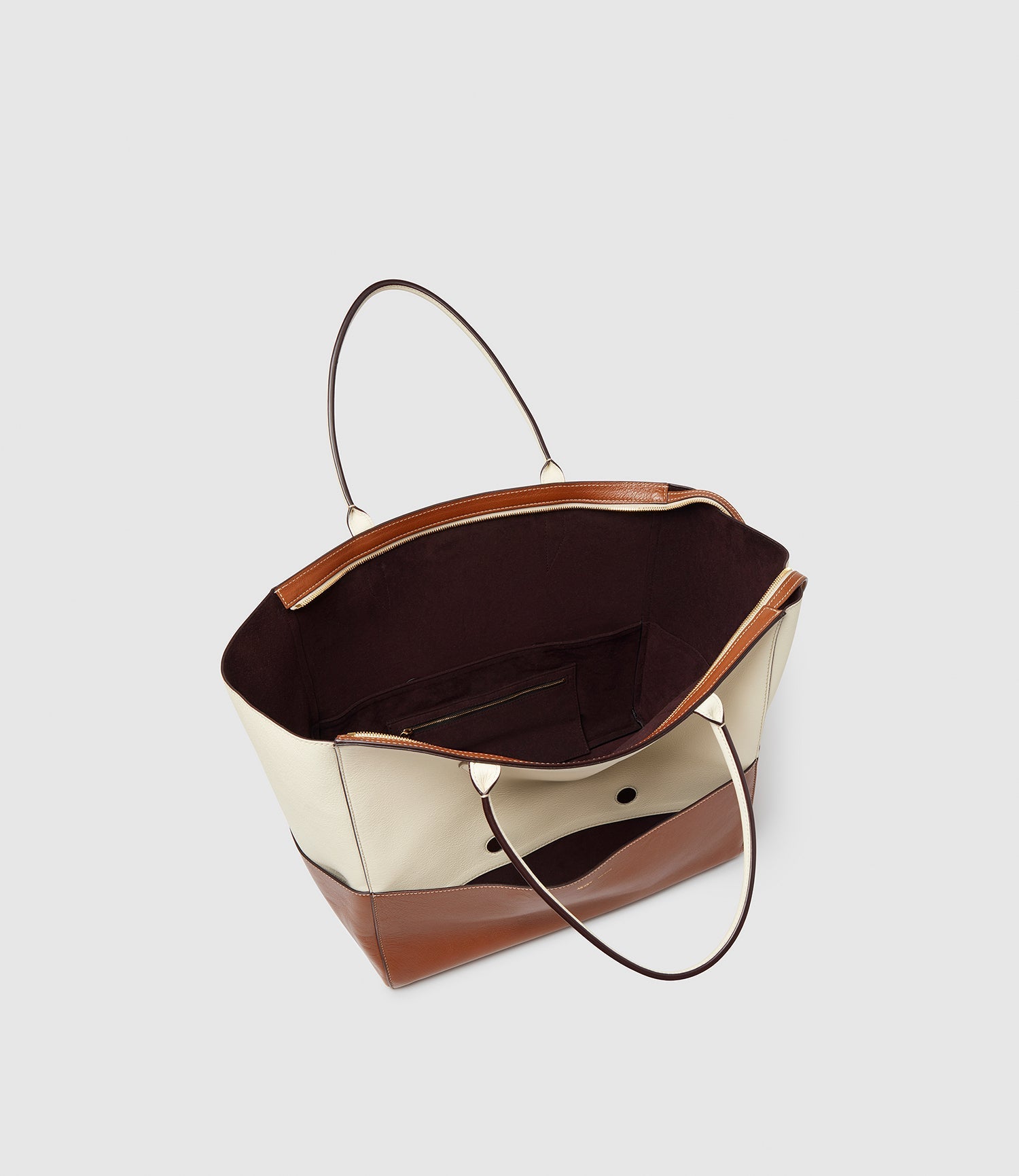 Métier - Incognito Large Cabas Bag Smooth Calfskin White Sand and Cognac