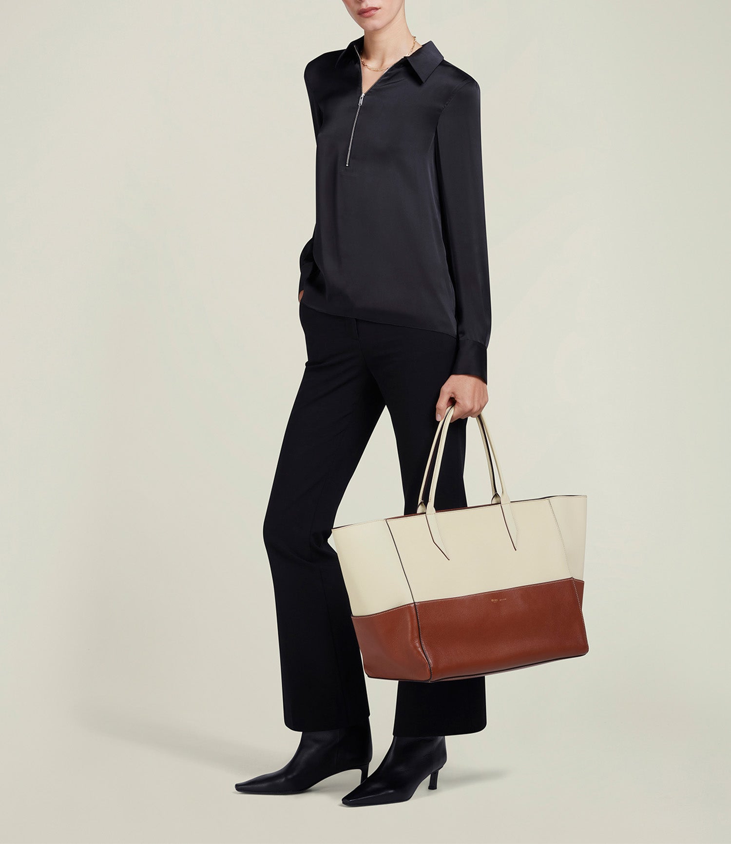A striking yet simple design, the Incognito Large Cabas Bag is designed to be generously sized and yet incredibly lightweight, with over the shoulder handles making it effortless to transport. The lower panel and handles add interest to the low key aesthetic and external magnetic pockets and internal compartments mean this shoulder bag is the perfect combination of form and functionality.