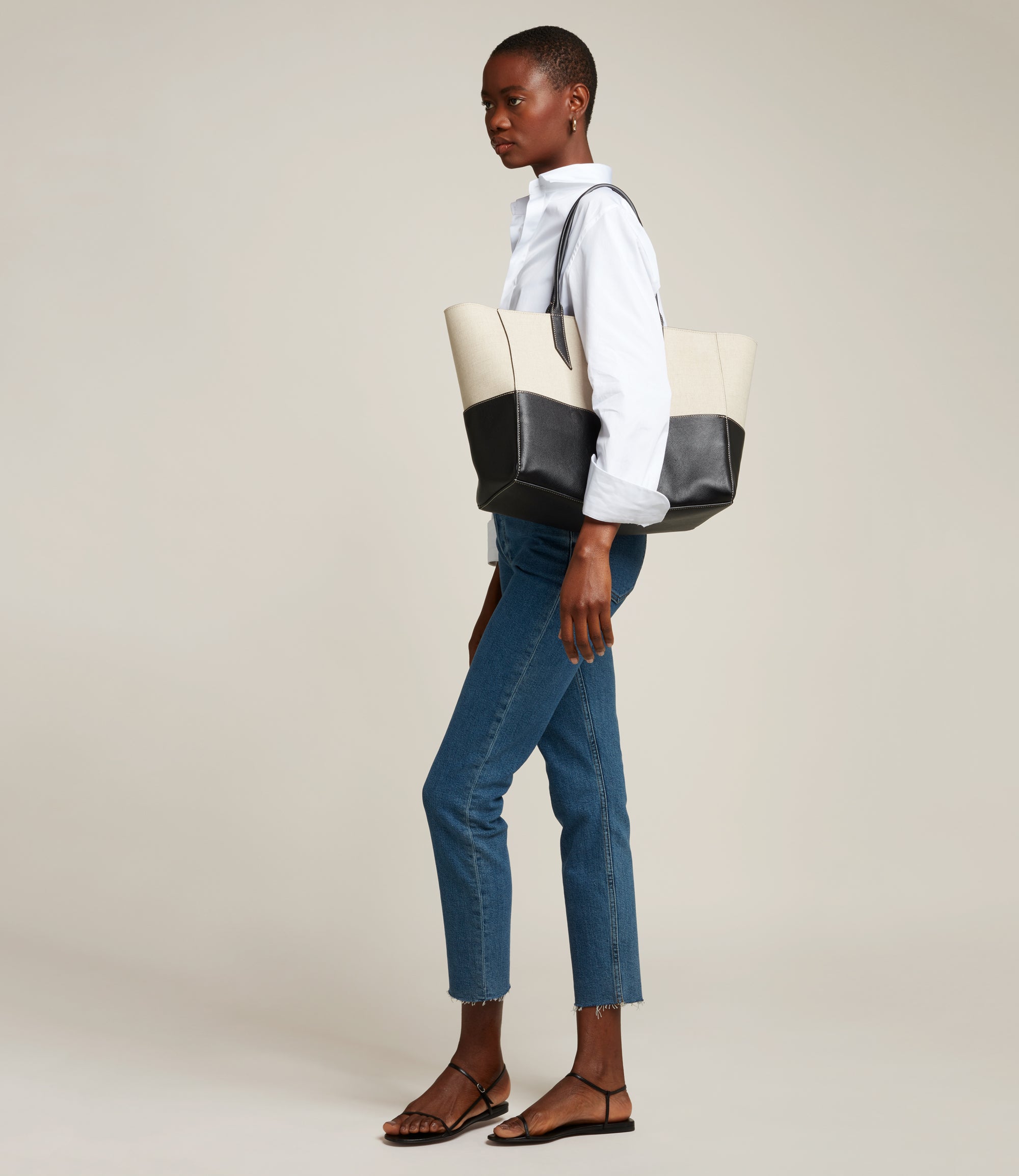 Métier - Incognito Small Cabas Linen and Smooth Calfskin Black