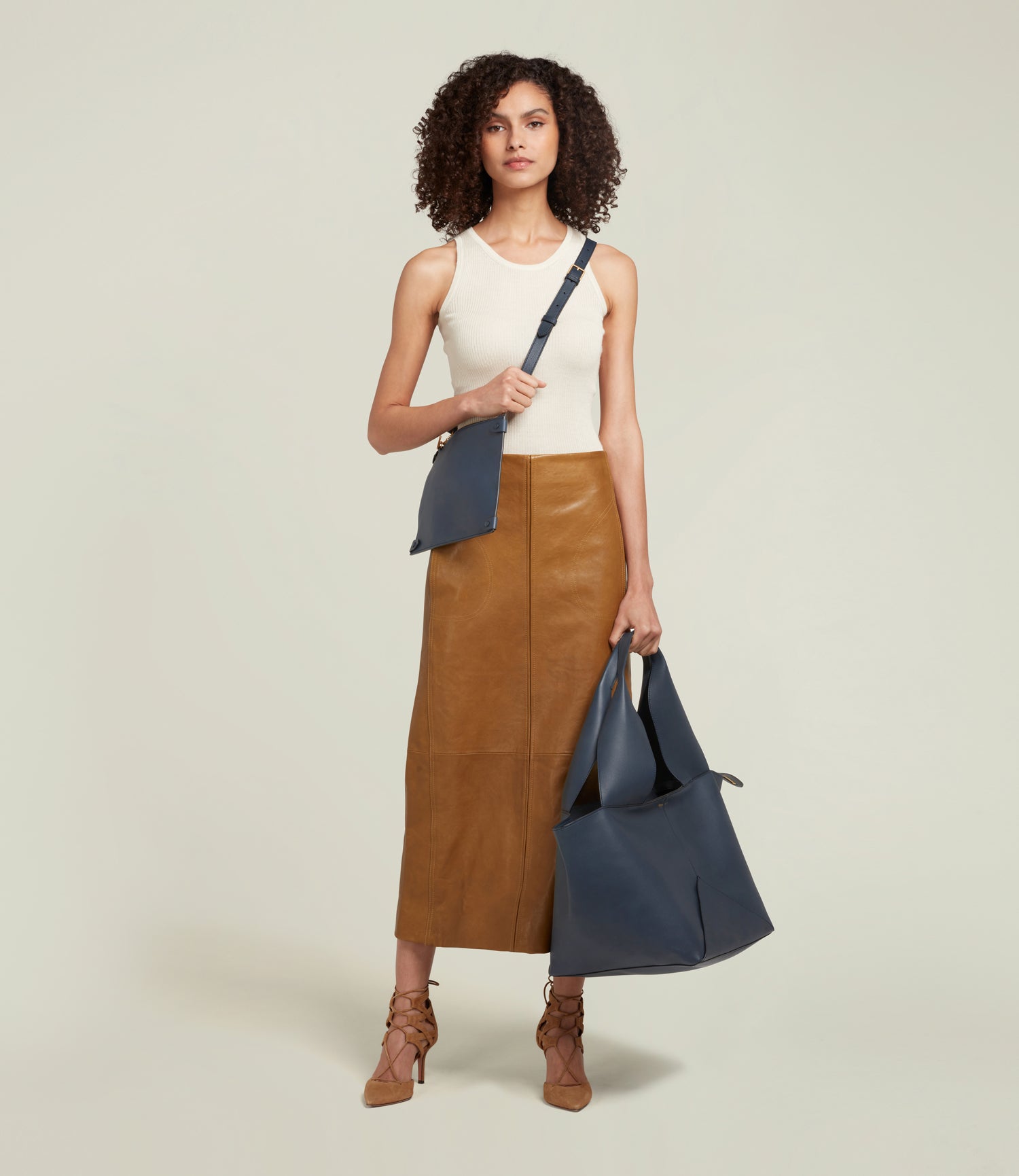 The Market Bag blends the effortlessness of a leather tote with architectural design.