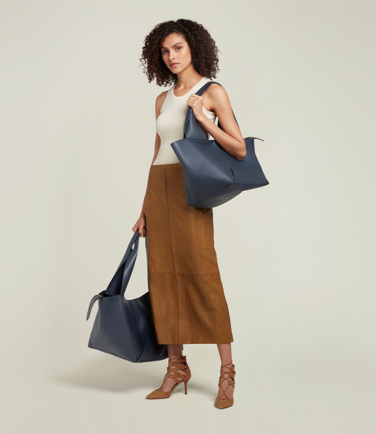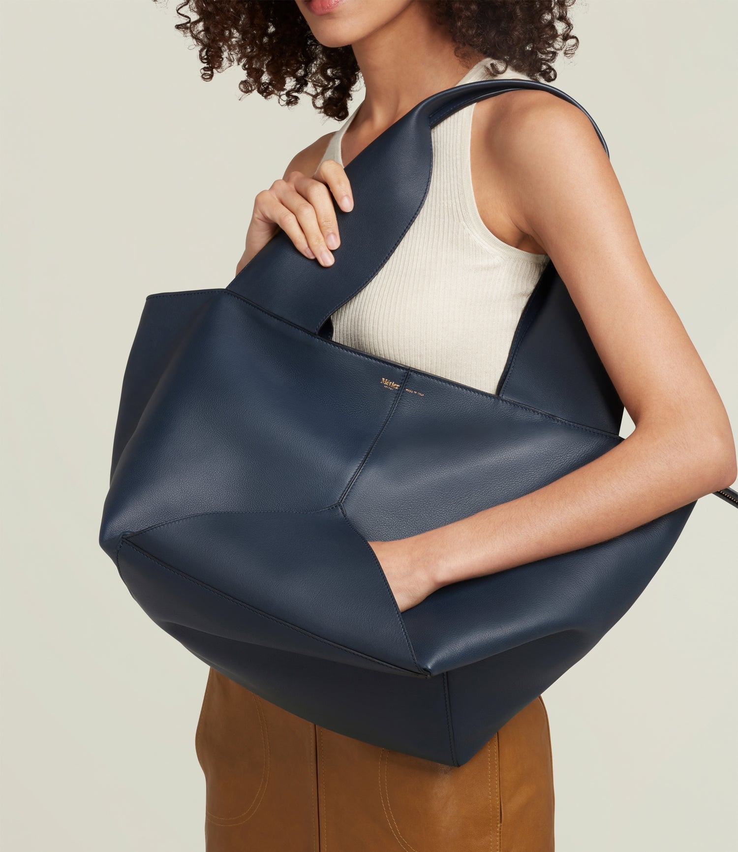 This M̩étier tote bag is quite literally a twist on a classic. Its base has been twisted and tailored to rest lightly against your body, while the wide and supple handles, attached from the corner points, engineer the perfect slouch and allow you to carry it with ease.