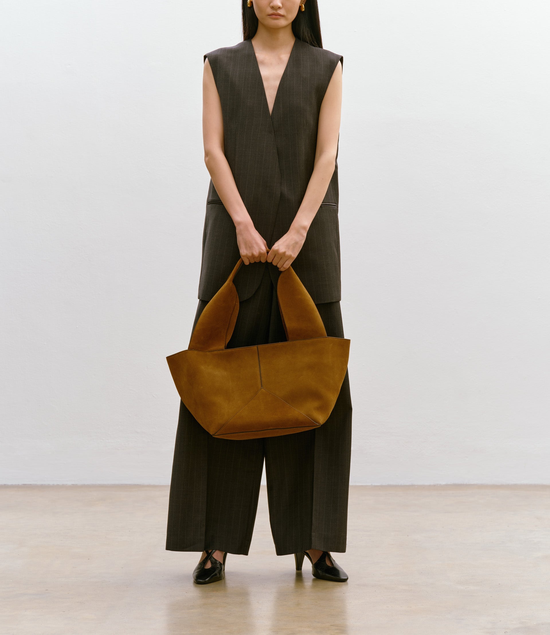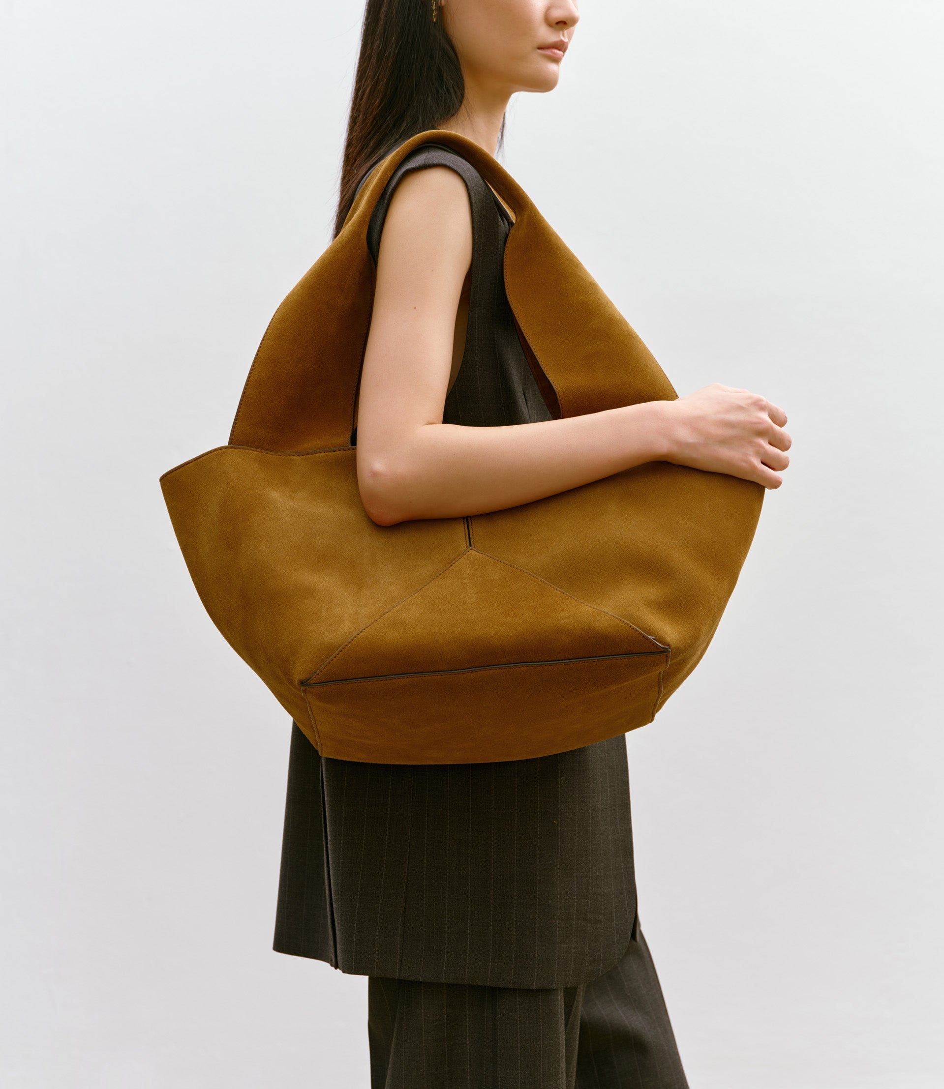 This Métier tote bag is quite literally a twist on a classic. Its base has been twisted and tailored to rest lightly against your body, while the wide and supple handles, attached from the corner points, engineer the perfect slouch and allow you to carry it with ease.