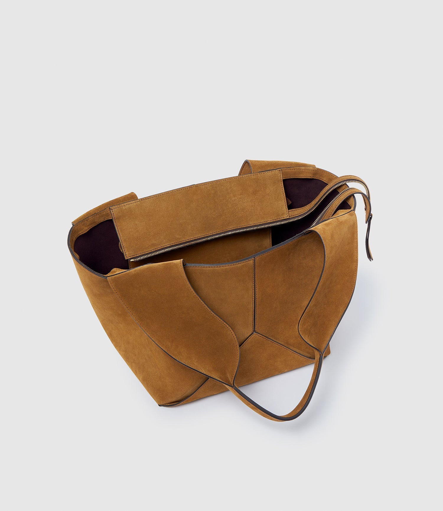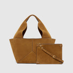 Fitted with a hidden exterior zippered compartment beneath the flap on either side to stow away your valuables as well as an interior snap pocket, there is more to the Market Bag than meets the eye. Its interior pouch comes with a detachable strap and clips out to double up as a crossbody bag. Lined with our signature Amarone-coloured Alcantara.