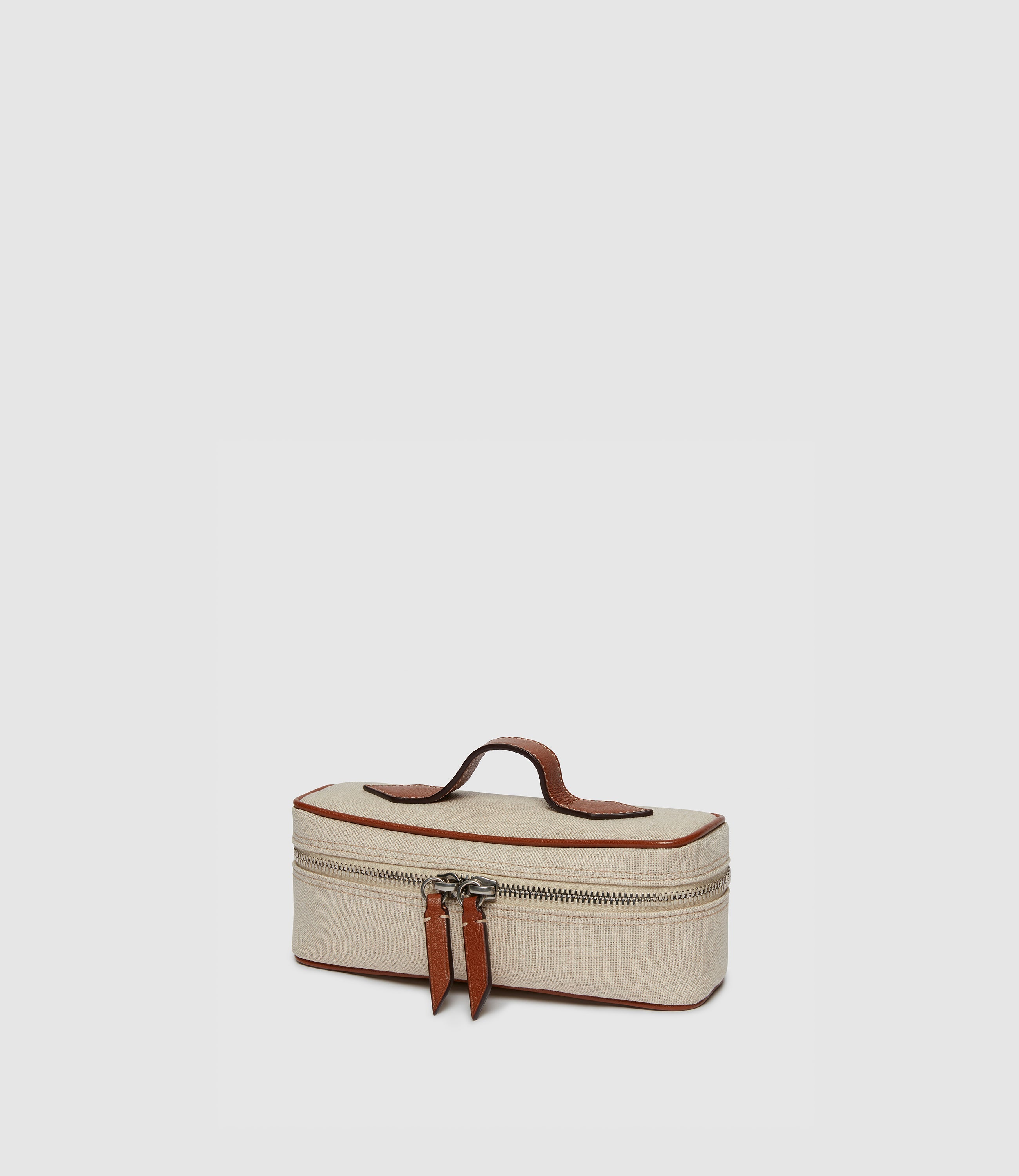 Métier - One Day Toiletry Bag Natural Linen with Cognac