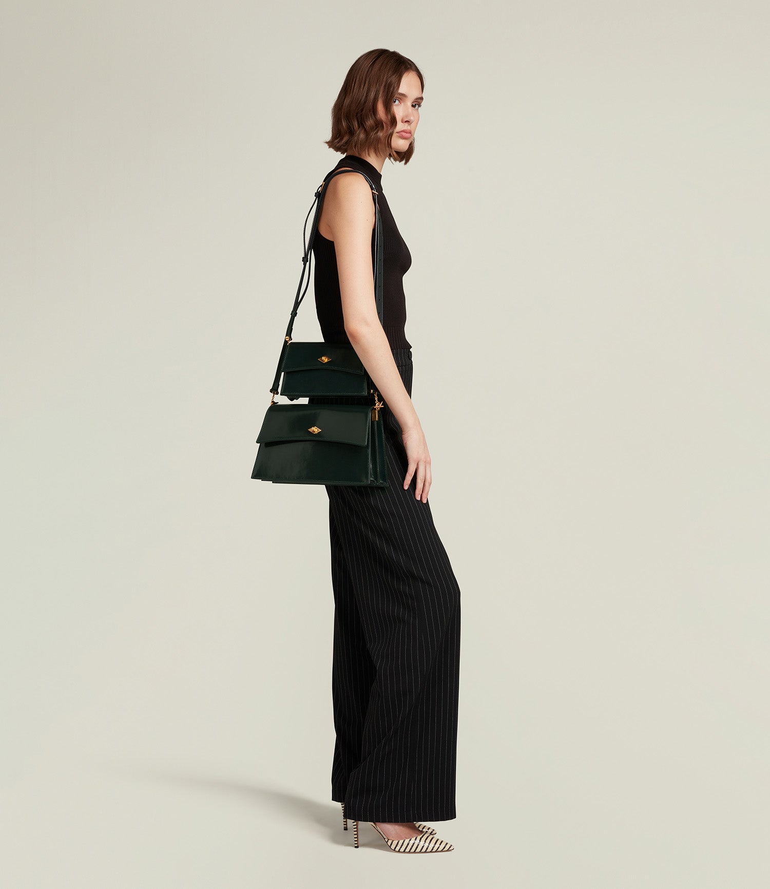 Métier - Roma Shoulder Bag Glossy Calfskin Forest Green