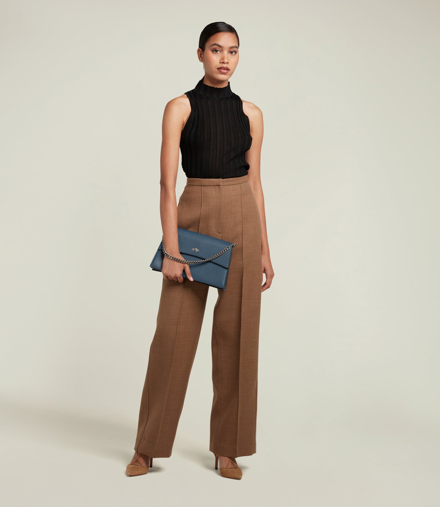 The classic shape, reworked for new-world lightness with a soft touch. Brilliantly endowed with a world of thoughtfully-apportioned interior pockets and detachable shoulder strap and chain.