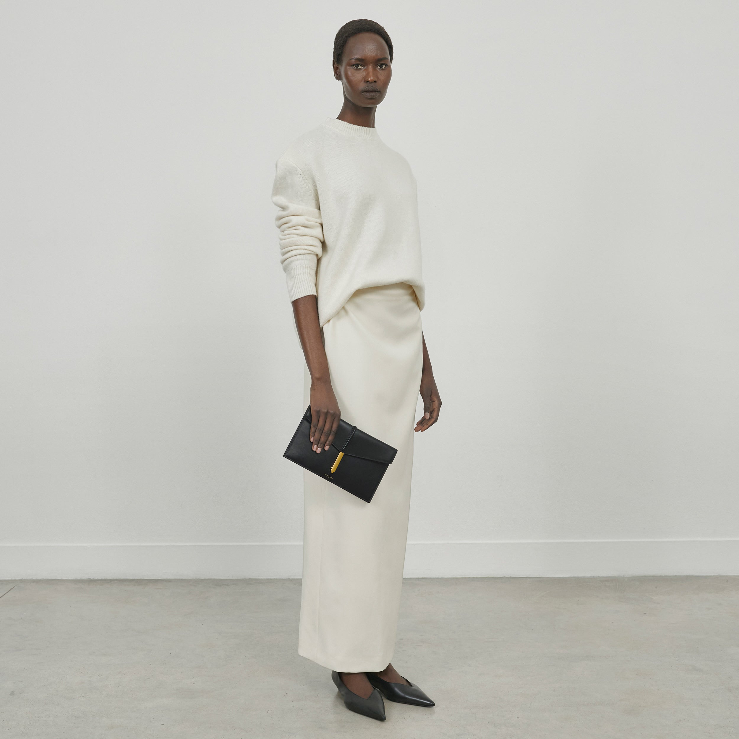 Handcrafted from sustainable materials, The Tokyo Clutch boasts a graceful envelope silhouette, adorned with the iconic magnetic gold arrow lock that has become synonymous with the Tokyo collection. The center of the flap is adorned with a stunning bombe detail, adding an extra touch of character.