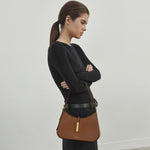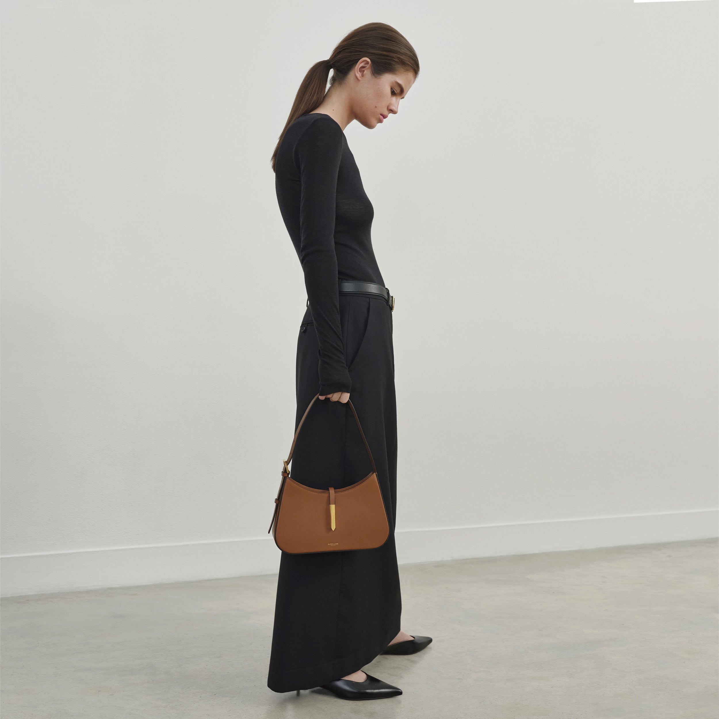 The Tokyo is a compact shoulder bag that has been ethically handcrafted in sustainable materials and features a unique triangular shape, with an arrow-shaped magnetic closure. The interior is lined in a soft cotton canvas and features a zipped pocket. It features an adjustable strap and can be worn over the shoulder, in the crook of your arm or held by hand. The Tokyo draws on the dynamism of city life.