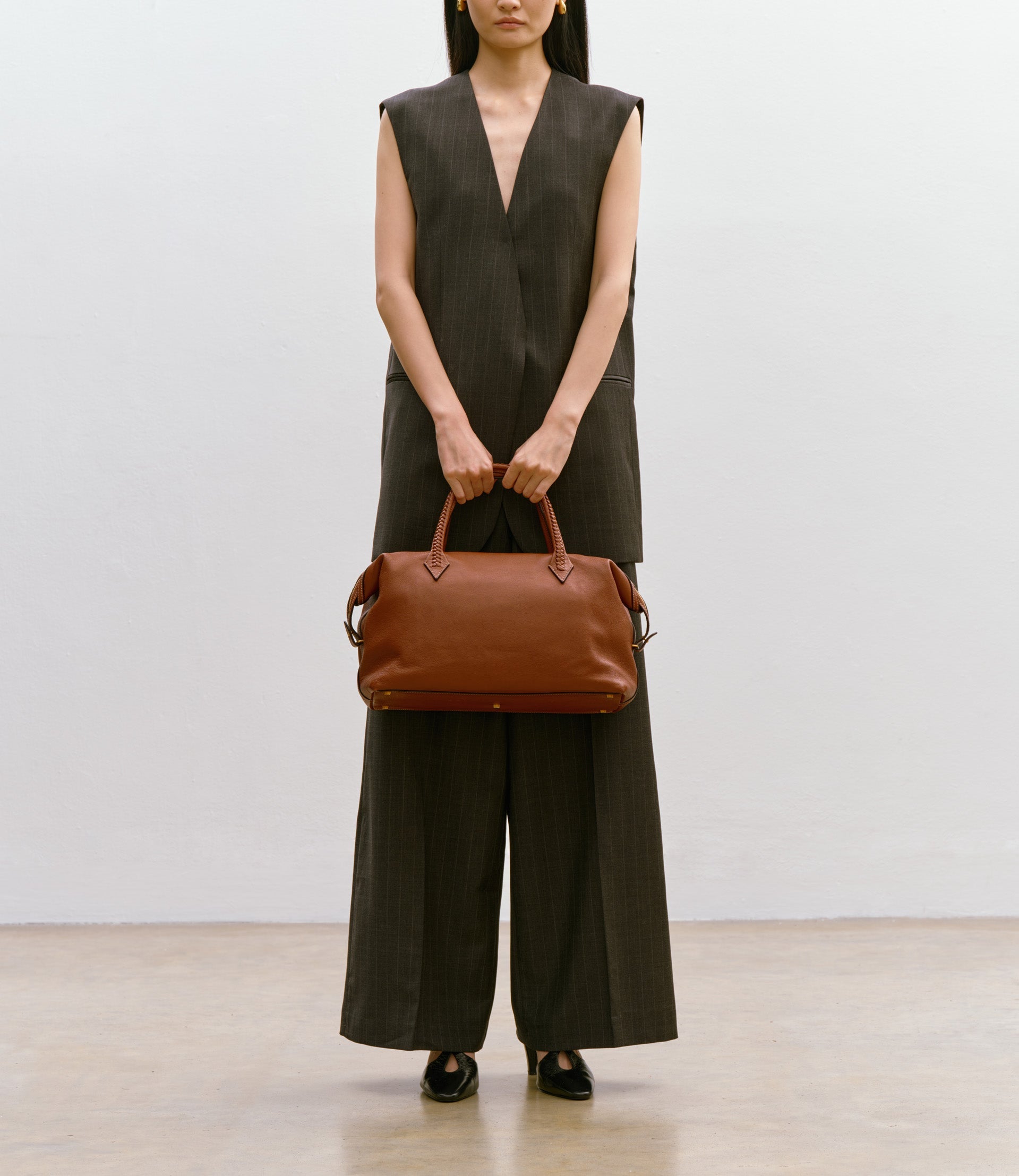Our essential day bag, the Vérité City is classic, refined and extraordinarily lightweight, with room for a 14” laptop and much more. It features a discreet exterior magnetic pocket for easy access to your essentials, as well as an interior pouch that snaps out to become a smaller shoulder bag. Handcrafted in Italy with signature braided handles, solid brass hardware and a detachable shoulder strap. Formerly the Perriand.