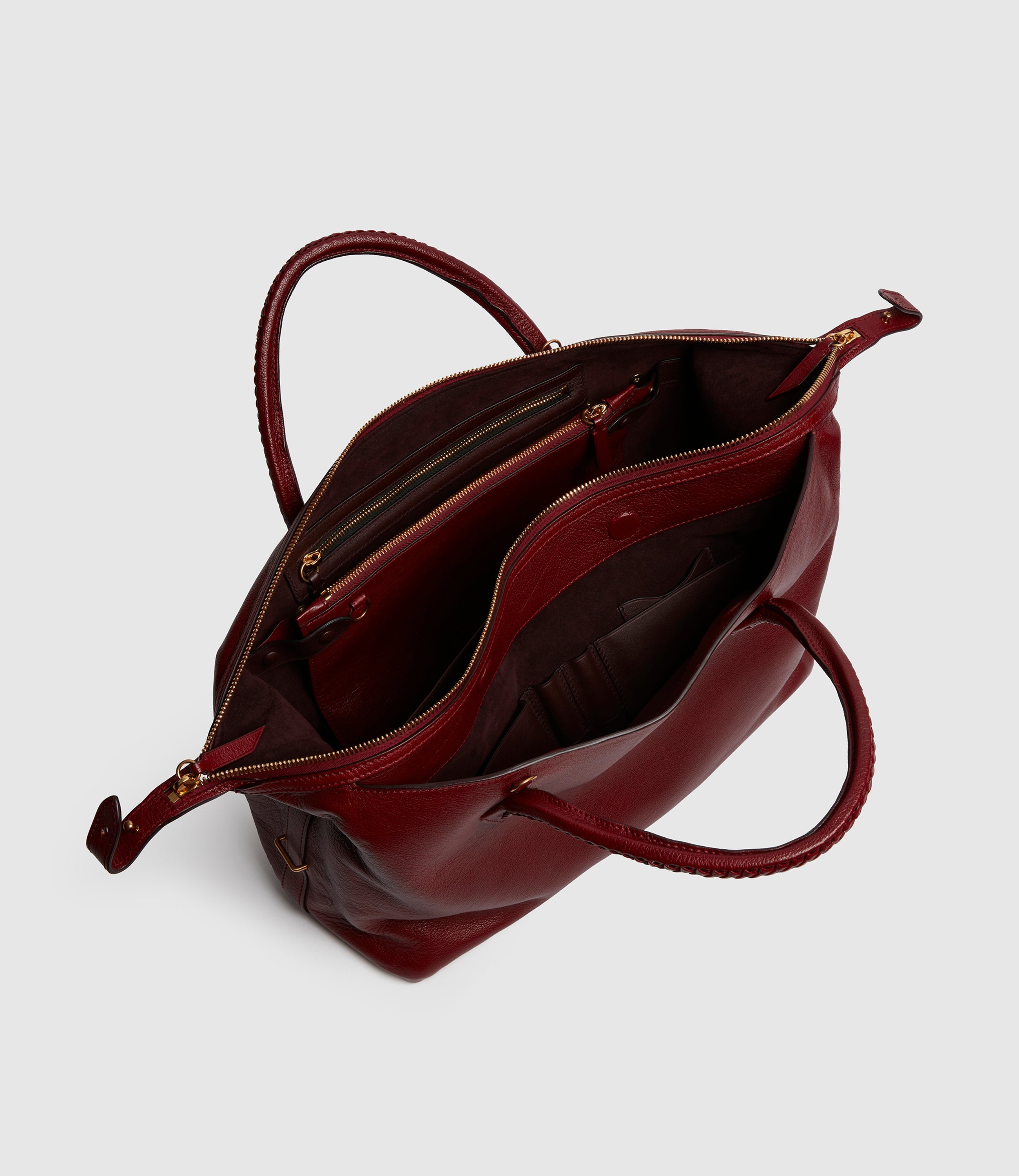 Our essential day bag, the Vérité City is classic, refined and extraordinarily lightweight, with room for a 14” laptop and much more. It features a discreet exterior magnetic pocket for easy access to your essentials, as well as an interior pouch that snaps out to become a smaller shoulder bag. Handcrafted in Italy with signature braided handles, solid brass hardware and a detachable shoulder strap. Formerly the Perriand.