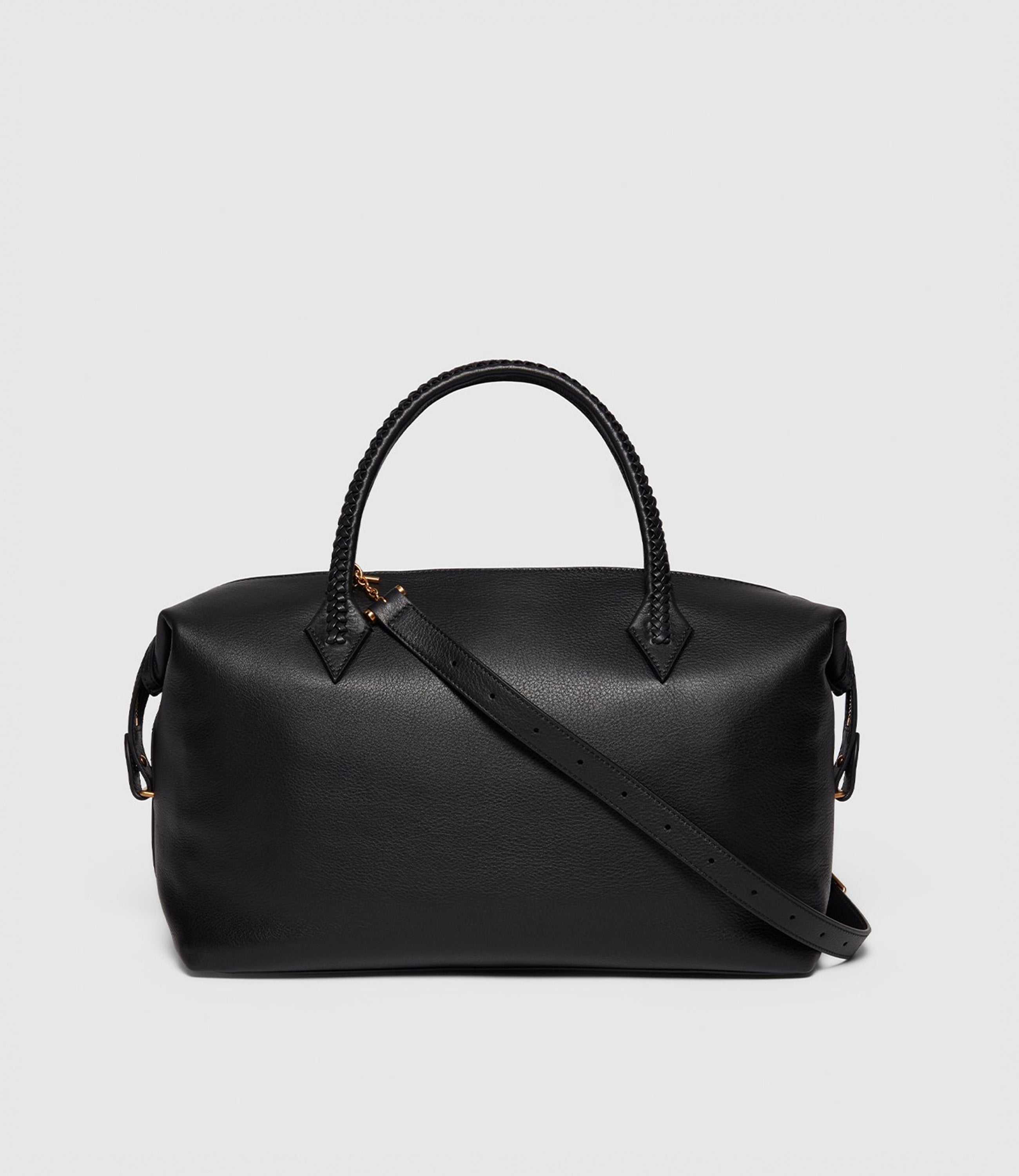 Our essential day bag, the Vérité City is classic, refined and extraordinarily lightweight, with room for a 14” laptop and much more. It features a discreet exterior magnetic pocket for easy access to your essentials, as well as an interior pouch that snaps out to become a smaller shoulder bag. Handcrafted in Italy with signature braided handles, solid brass hardware and a detachable shoulder strap. Formerly the Perriand.