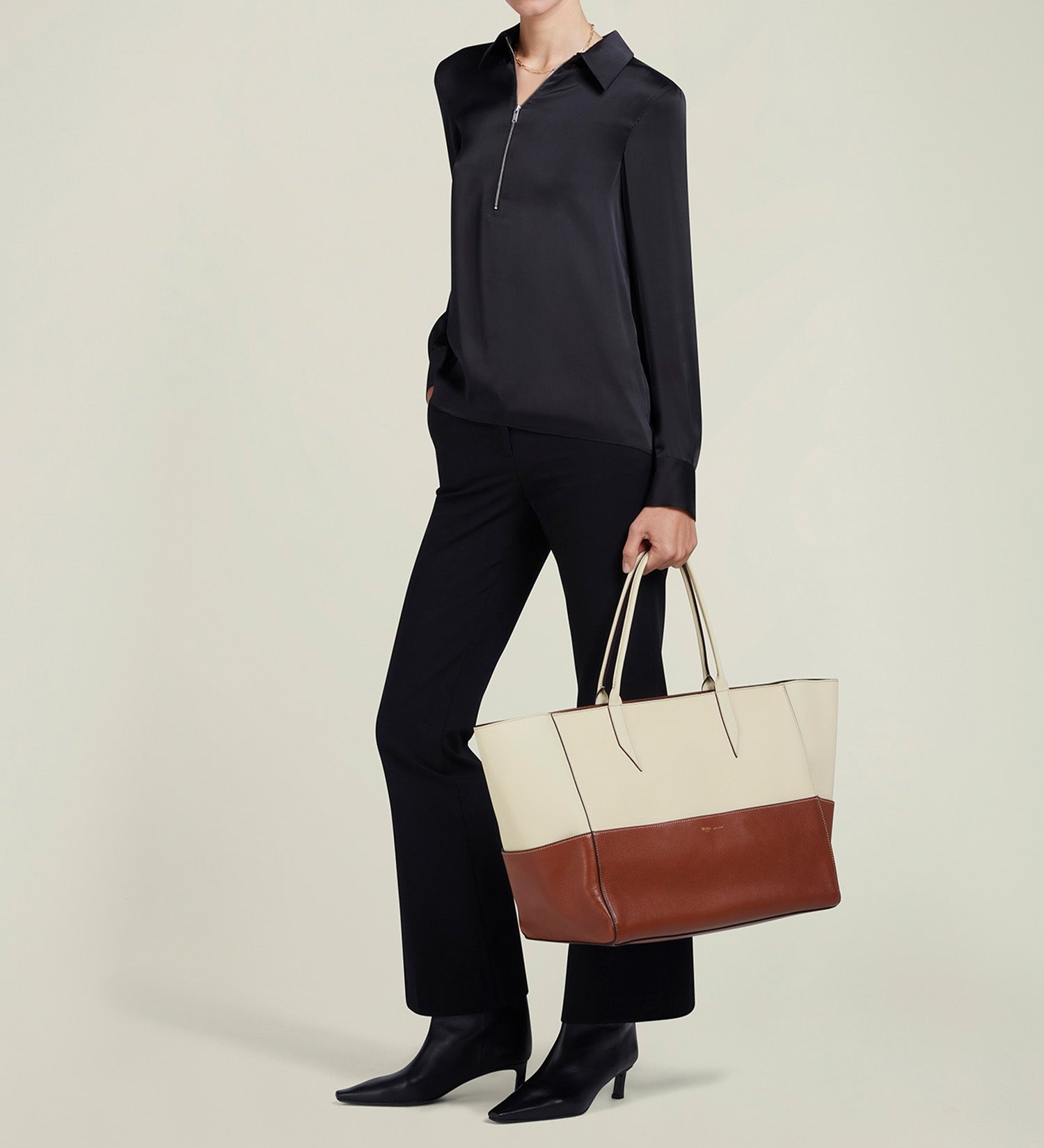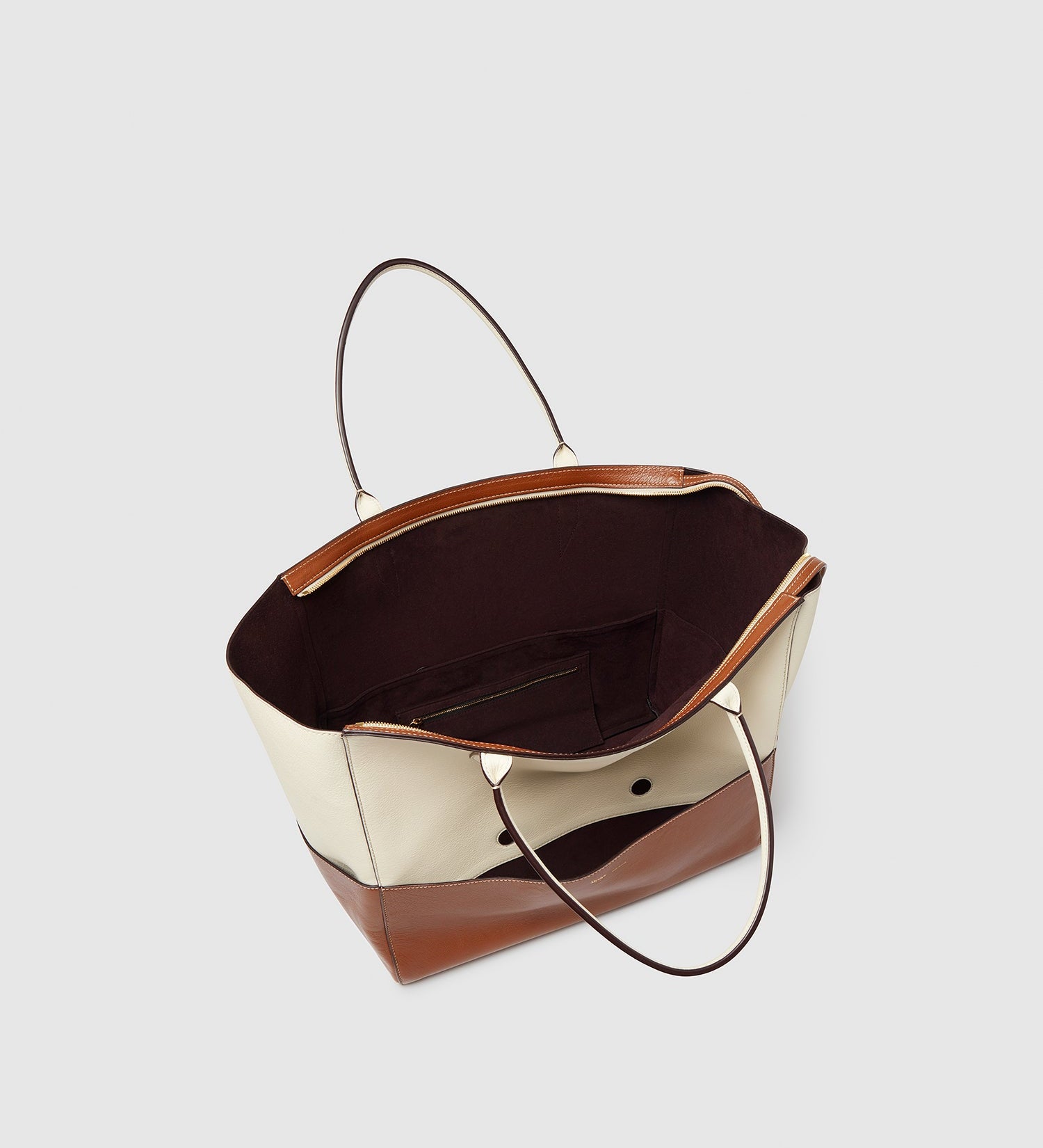 Métier - Incognito Large Cabas Bag Smooth Calfskin White Sand and Cognac