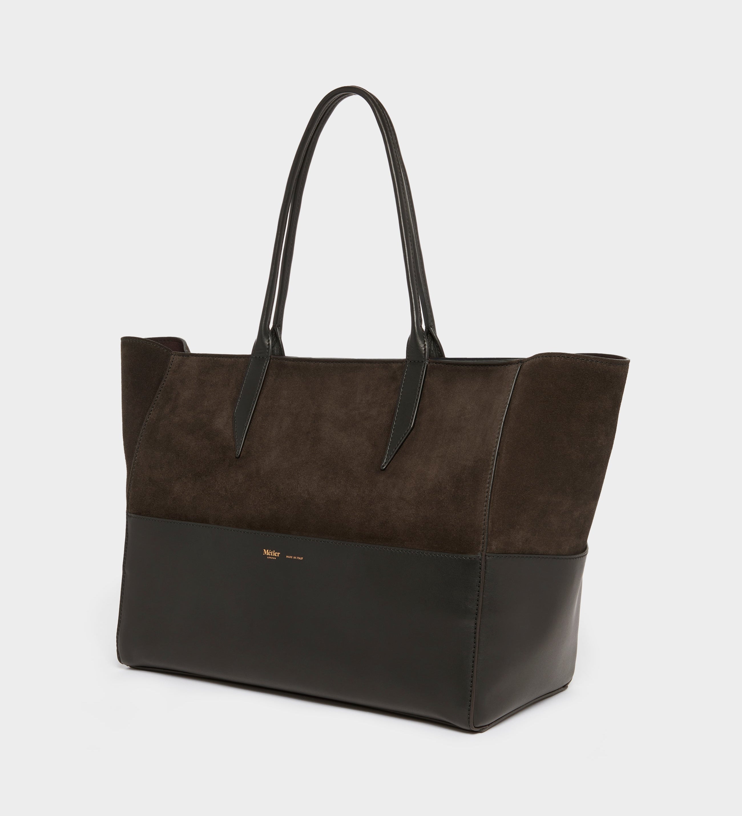 Métier - Incognito Small Cabas Suede Chocolate and Atelier Calfskin Black