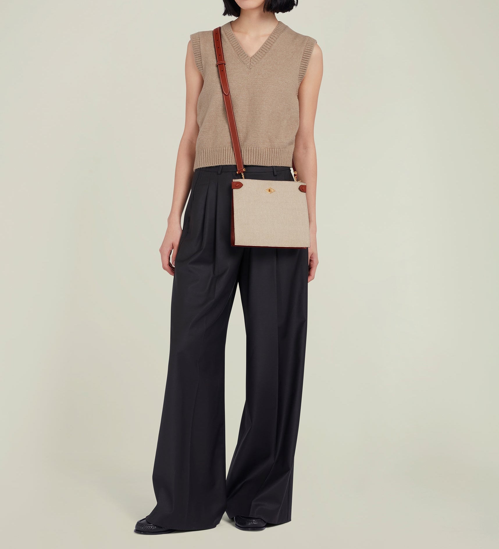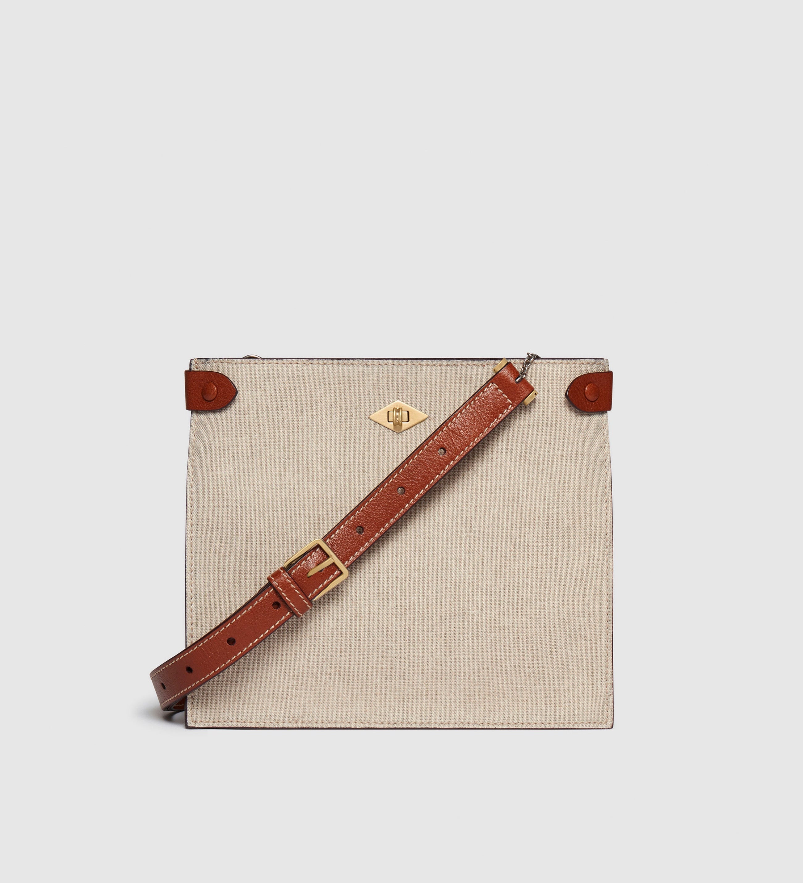 Métier - Stowaway Crossbody Natural Linen with Cognac